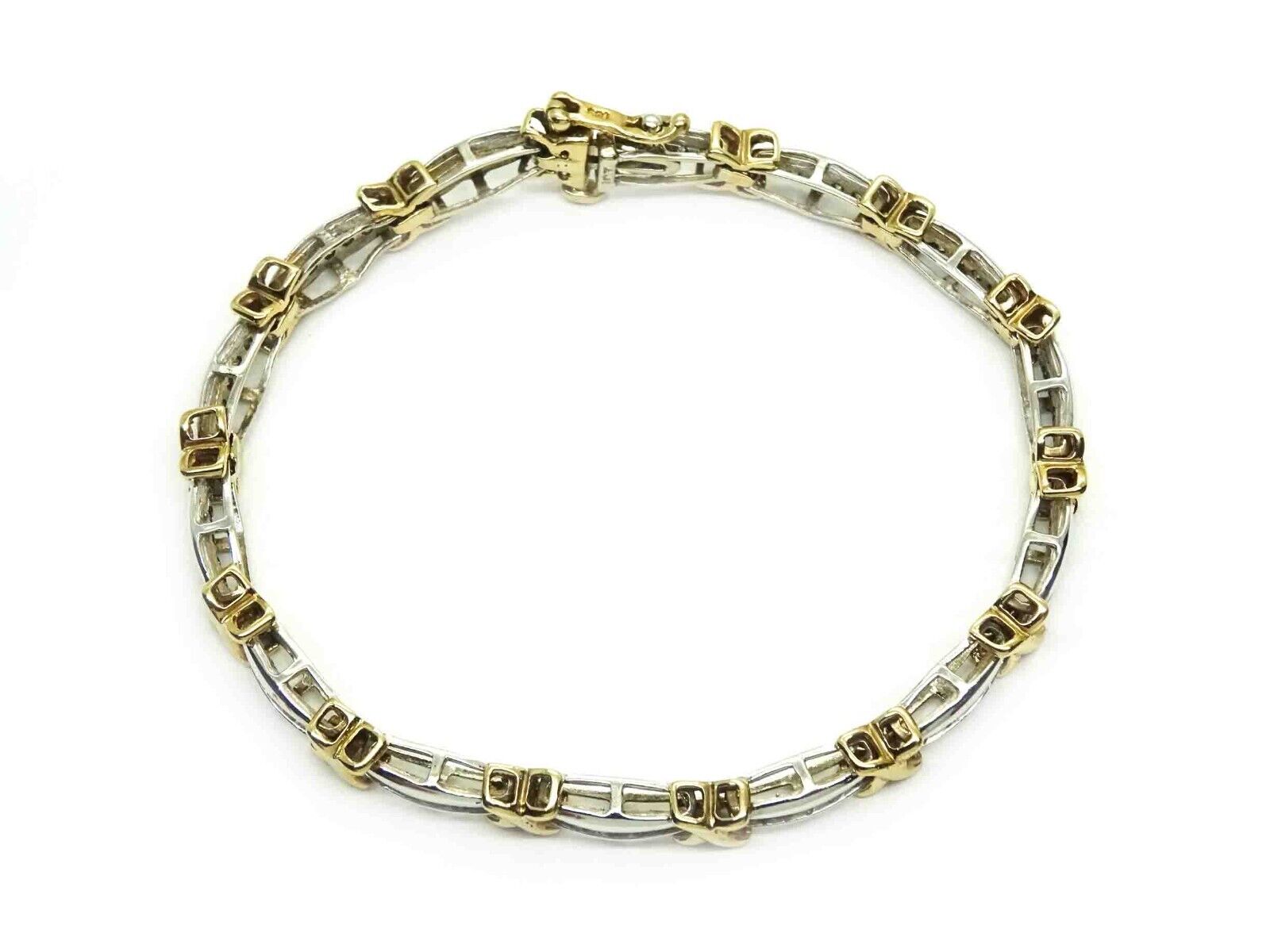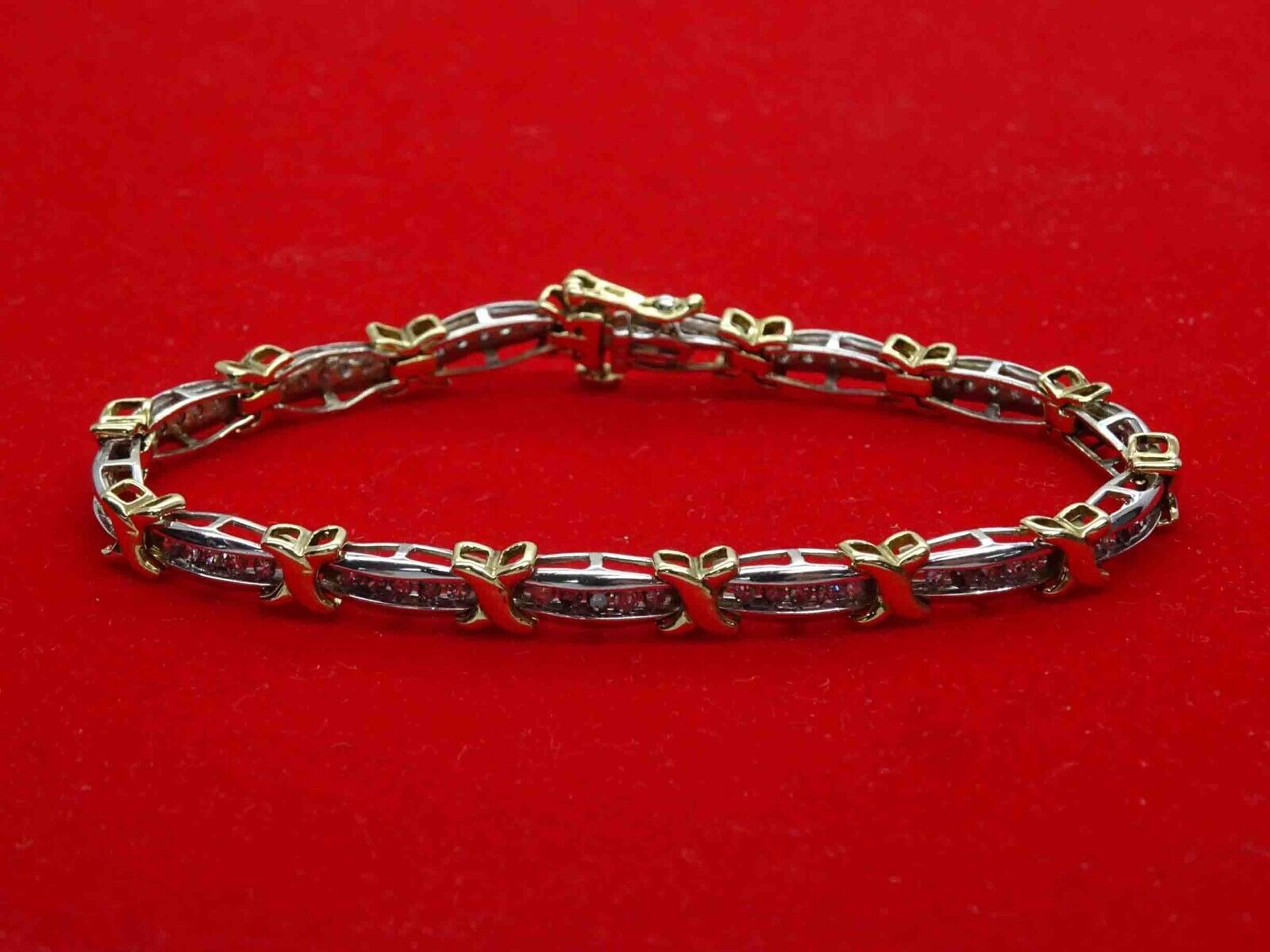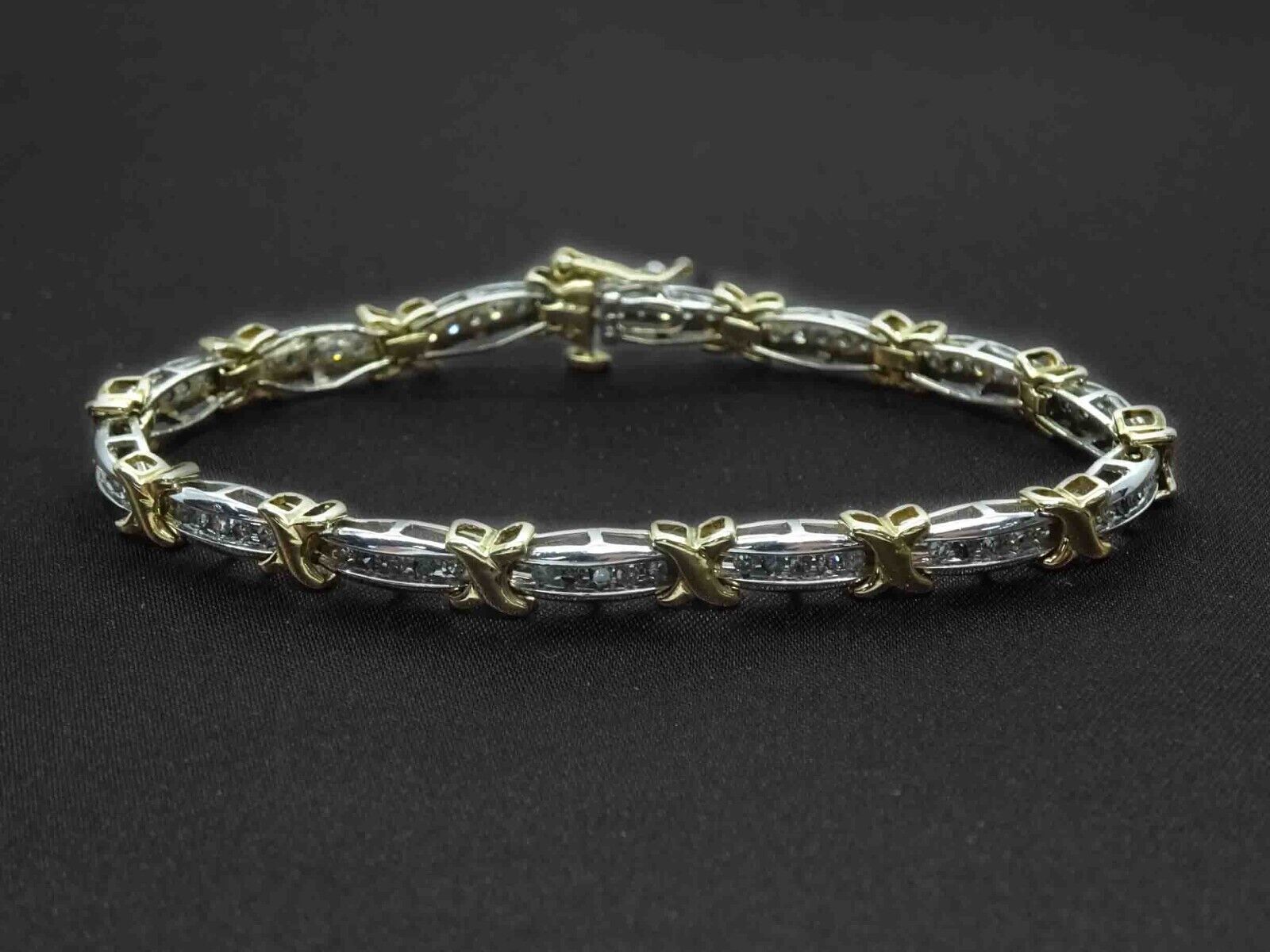 2.10ct tw Natural Diamond X Kiss Station Tennis Bracelet Two-Tone 10k Gold