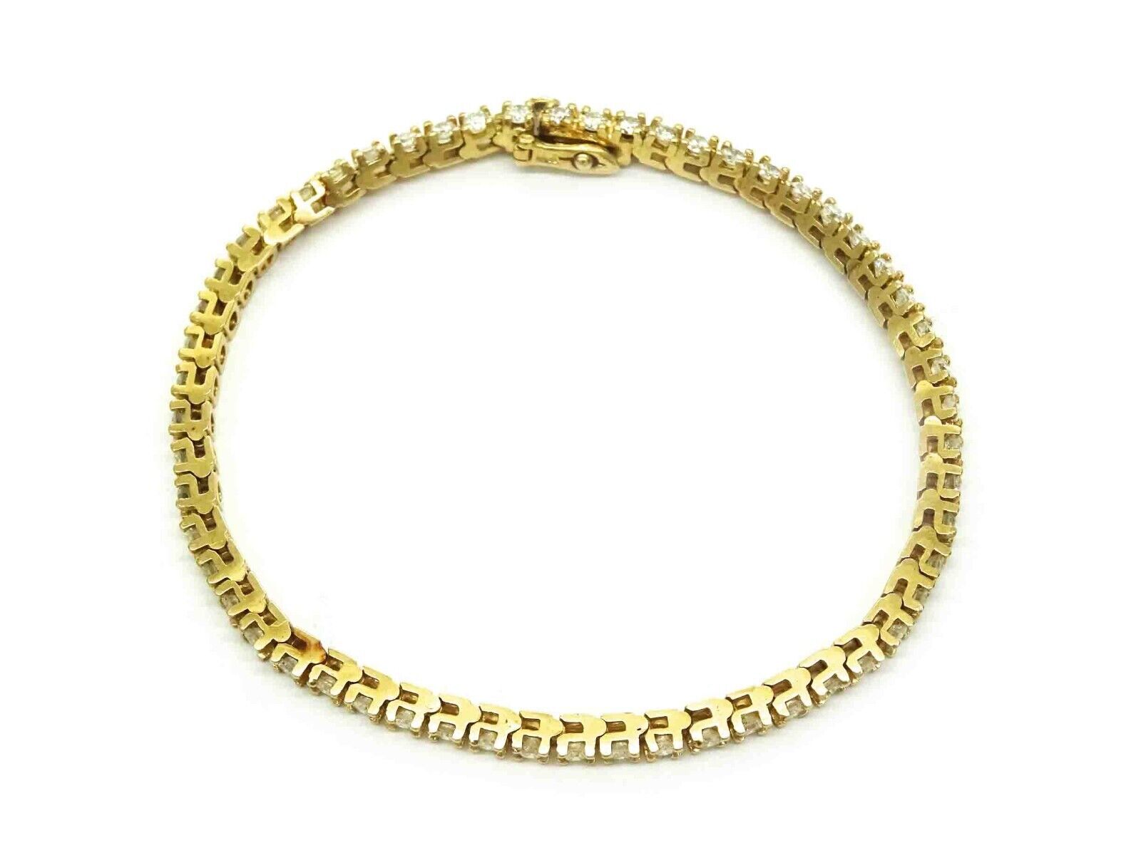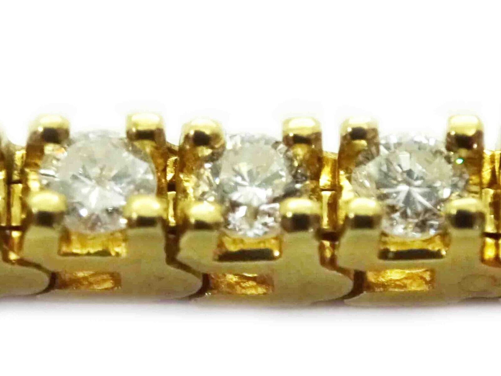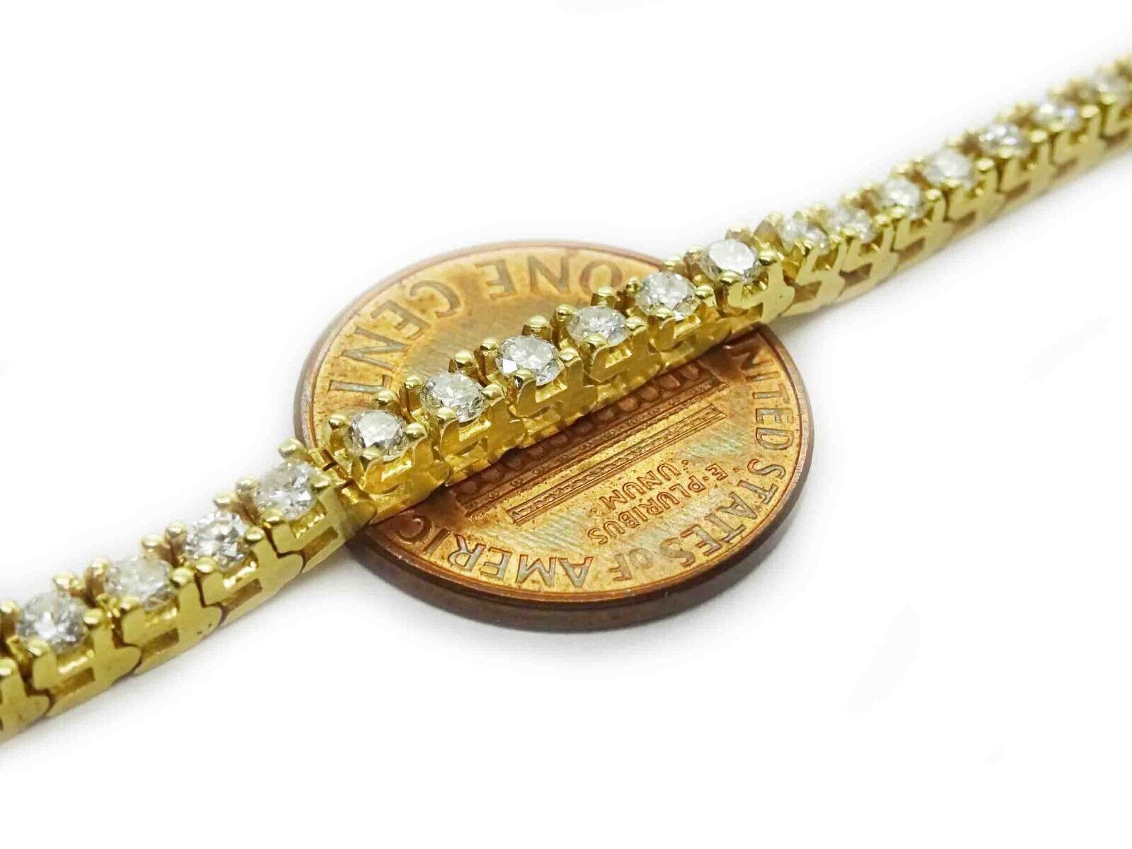 Classy thin ladies diamond line tennis bracelet in 14k yellow gold.