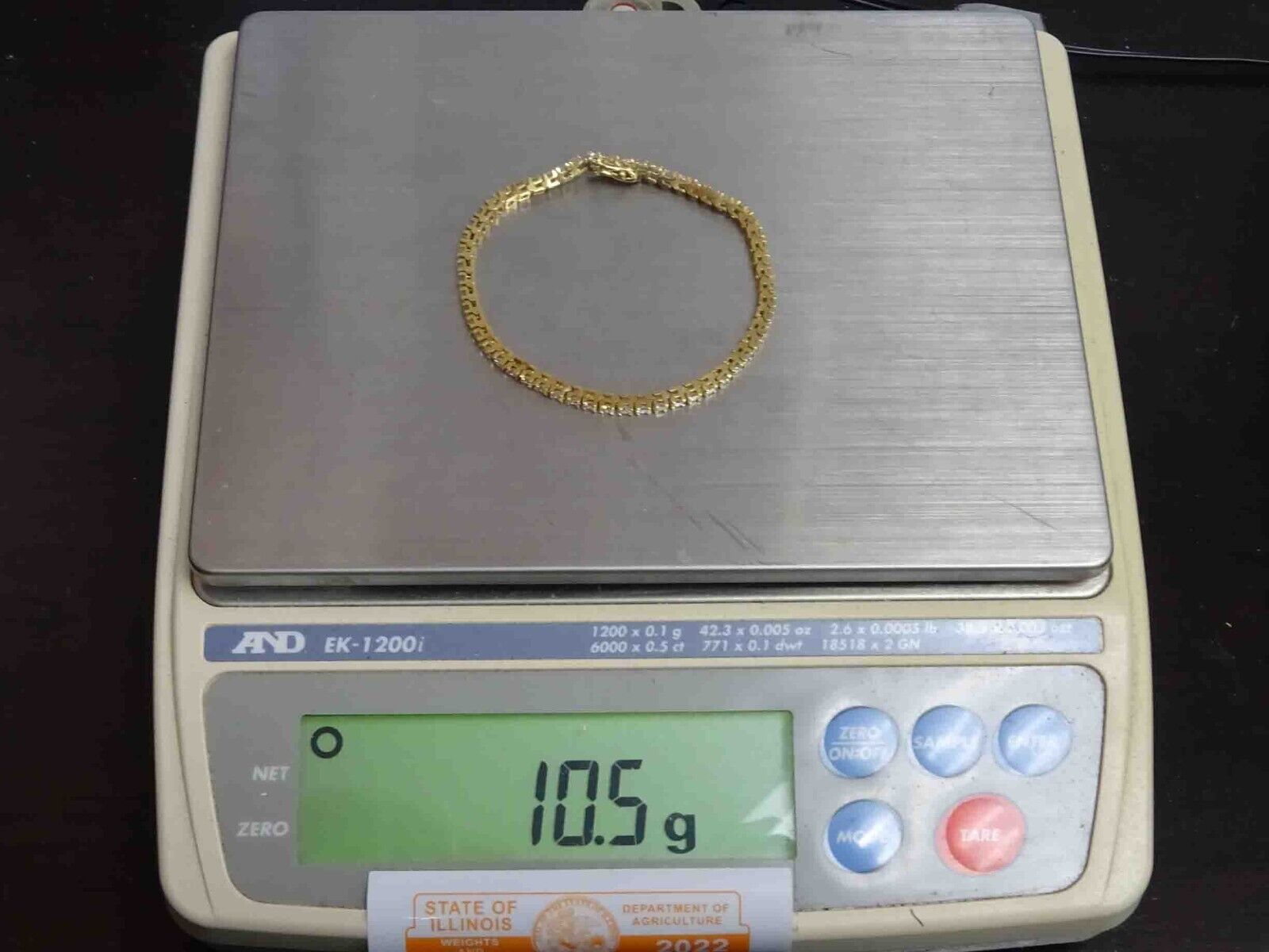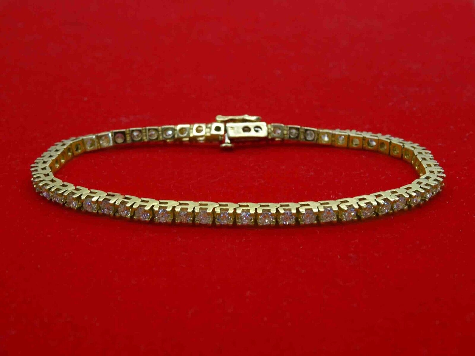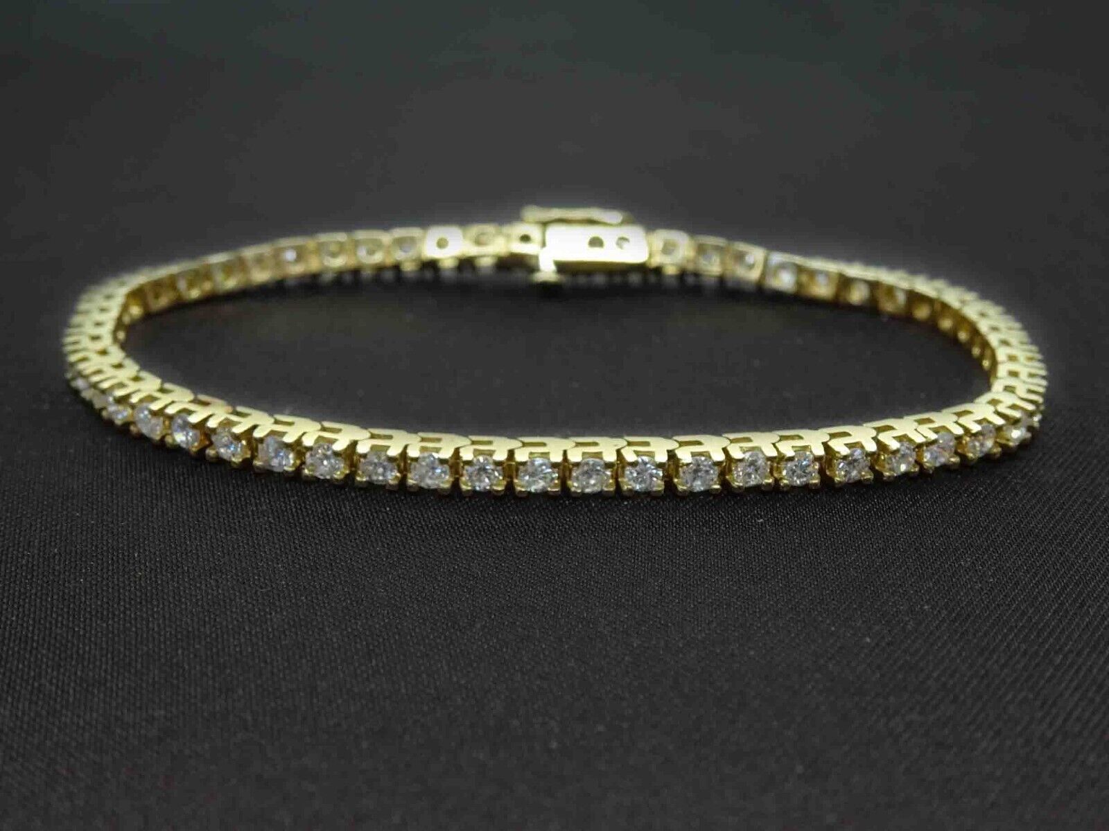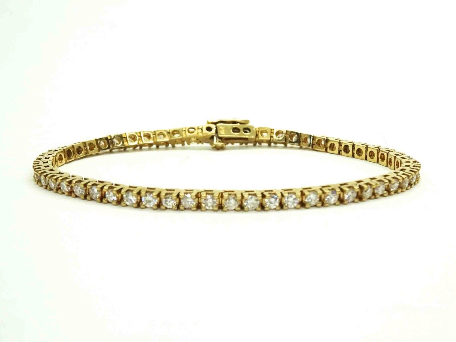 Classy thin ladies diamond line tennis bracelet in 14k yellow gold.