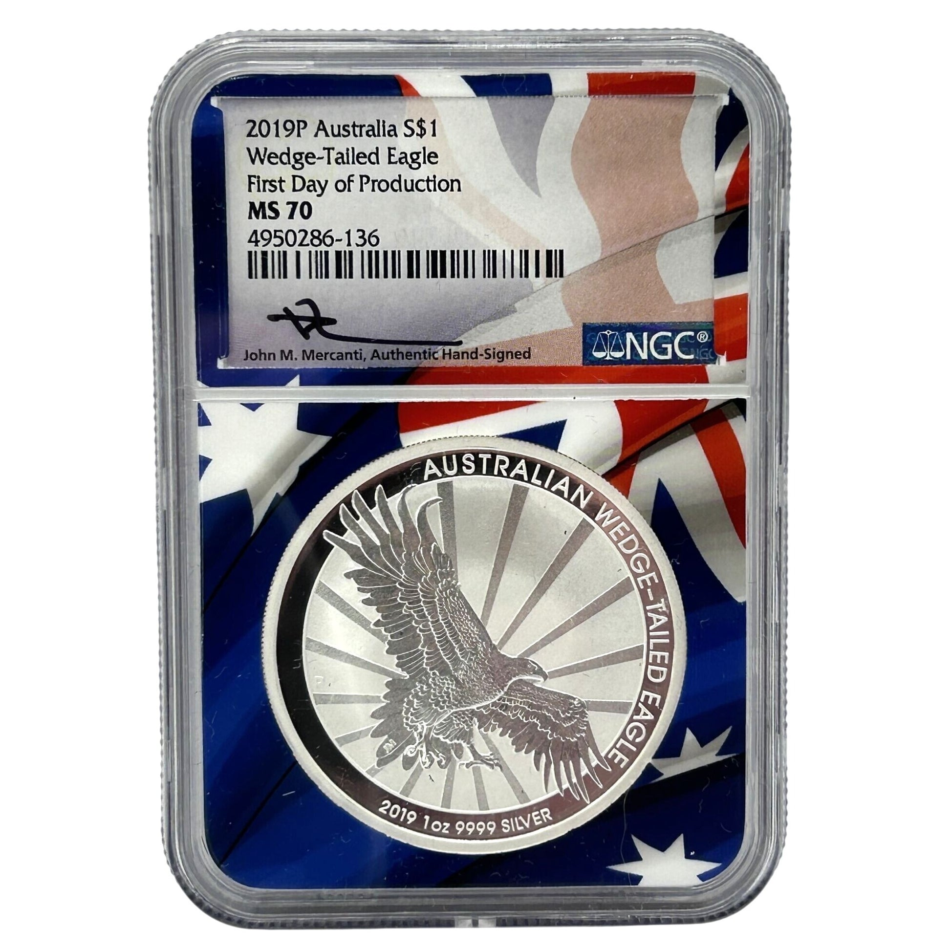 2019-P Australia $1 Wedge Tailed Eagle NGC MS70 Mercanti Signed FDoP