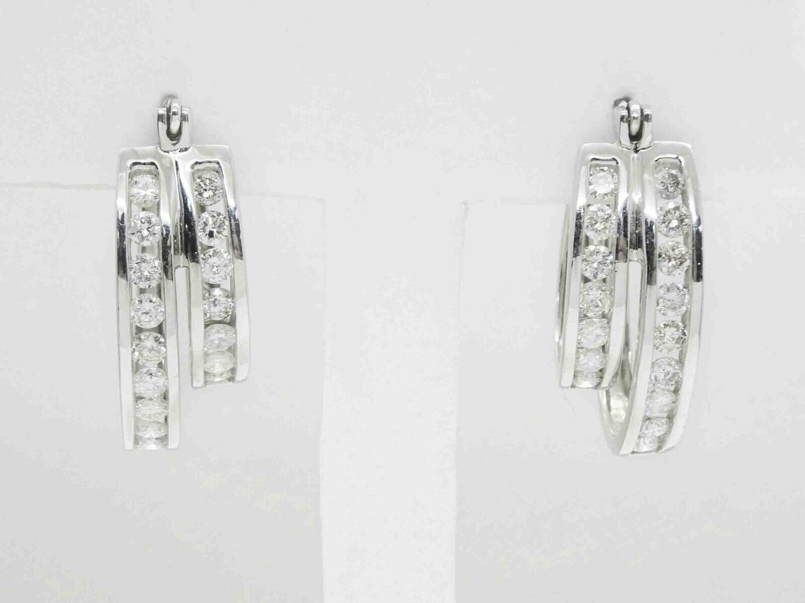 Estate ladies double hoop diamond earrings in 14k white gold.