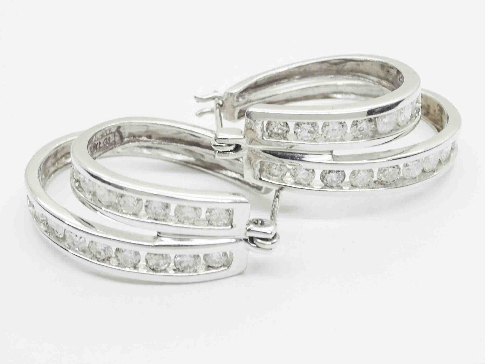2ct tw Natural Diamond Double Hoop Earrings 14k White Gold