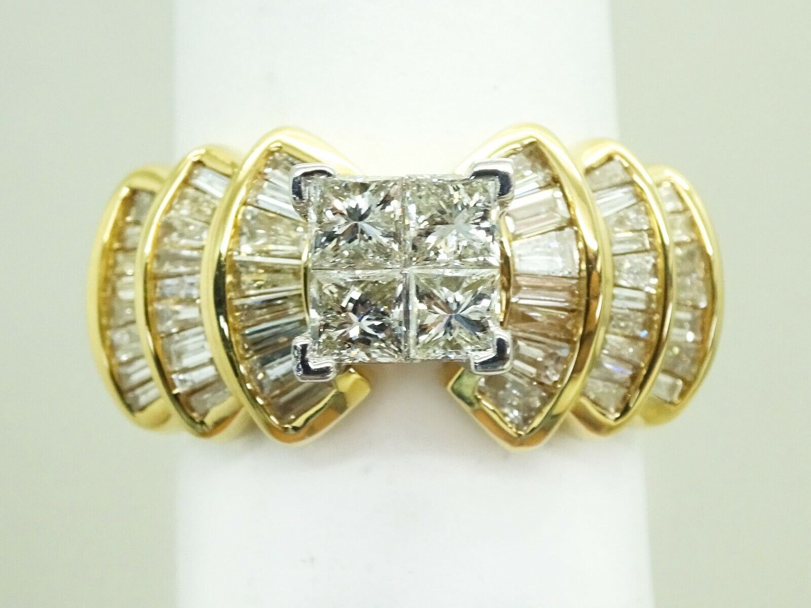 2ct tw Natural Princess & Baguette Diamond Wedding Ring 14k Gold Size 9