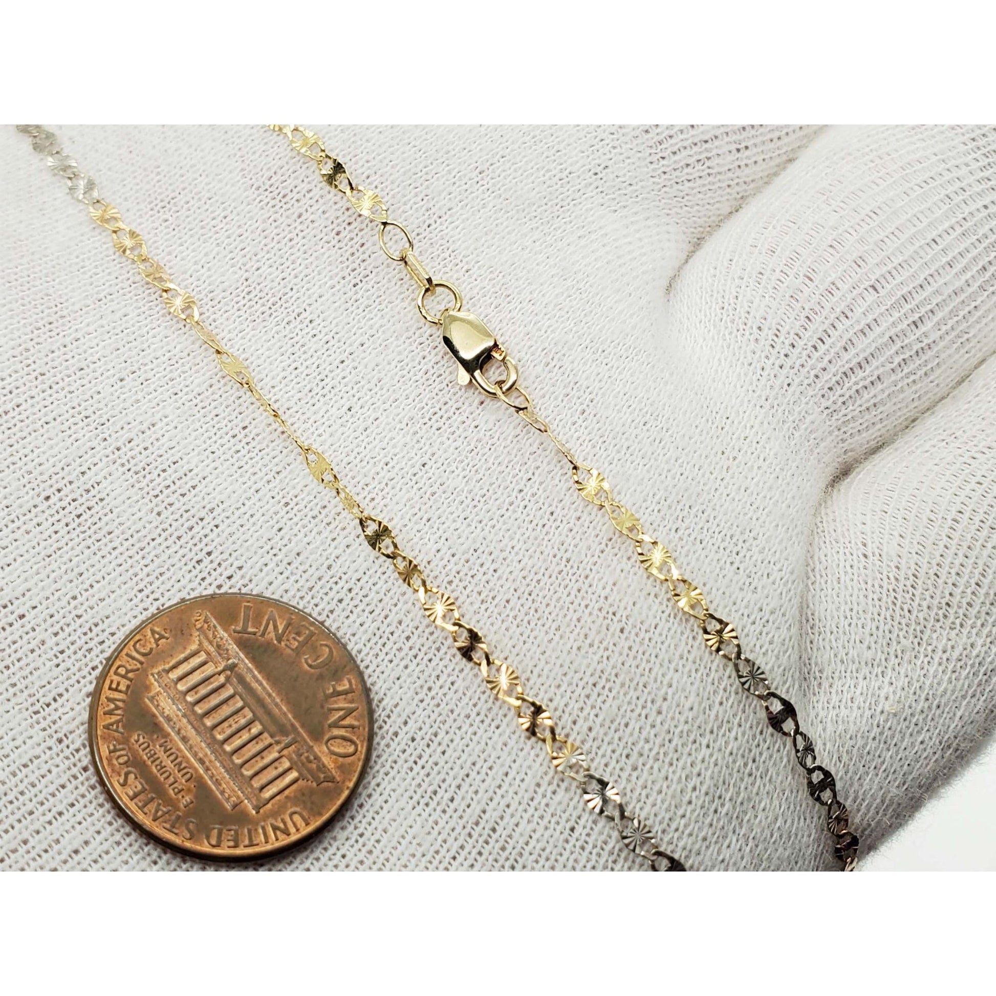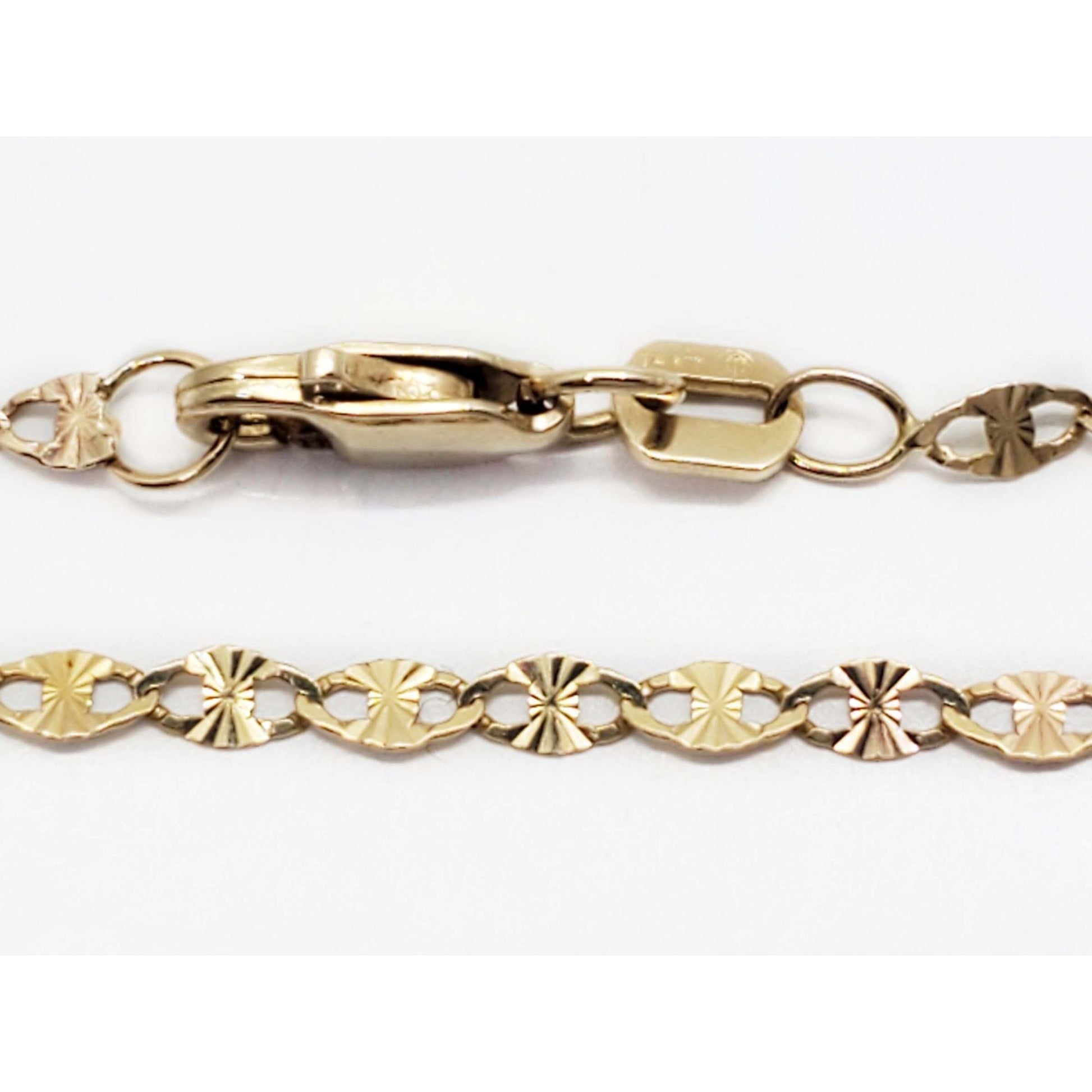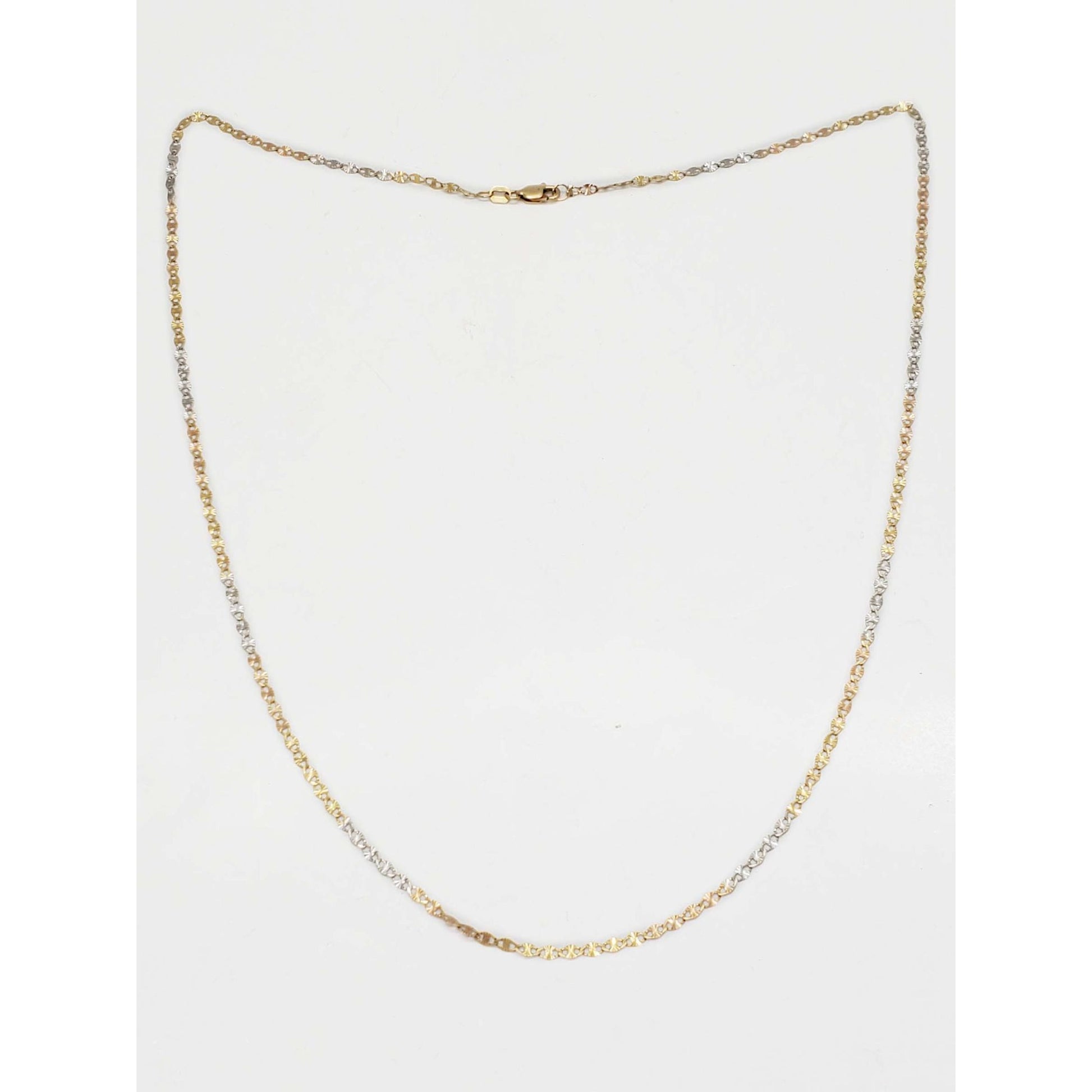 2mm Wide Dia-Cut Mariner Chain Necklace 14k Tricolor Gold 21.5" Long