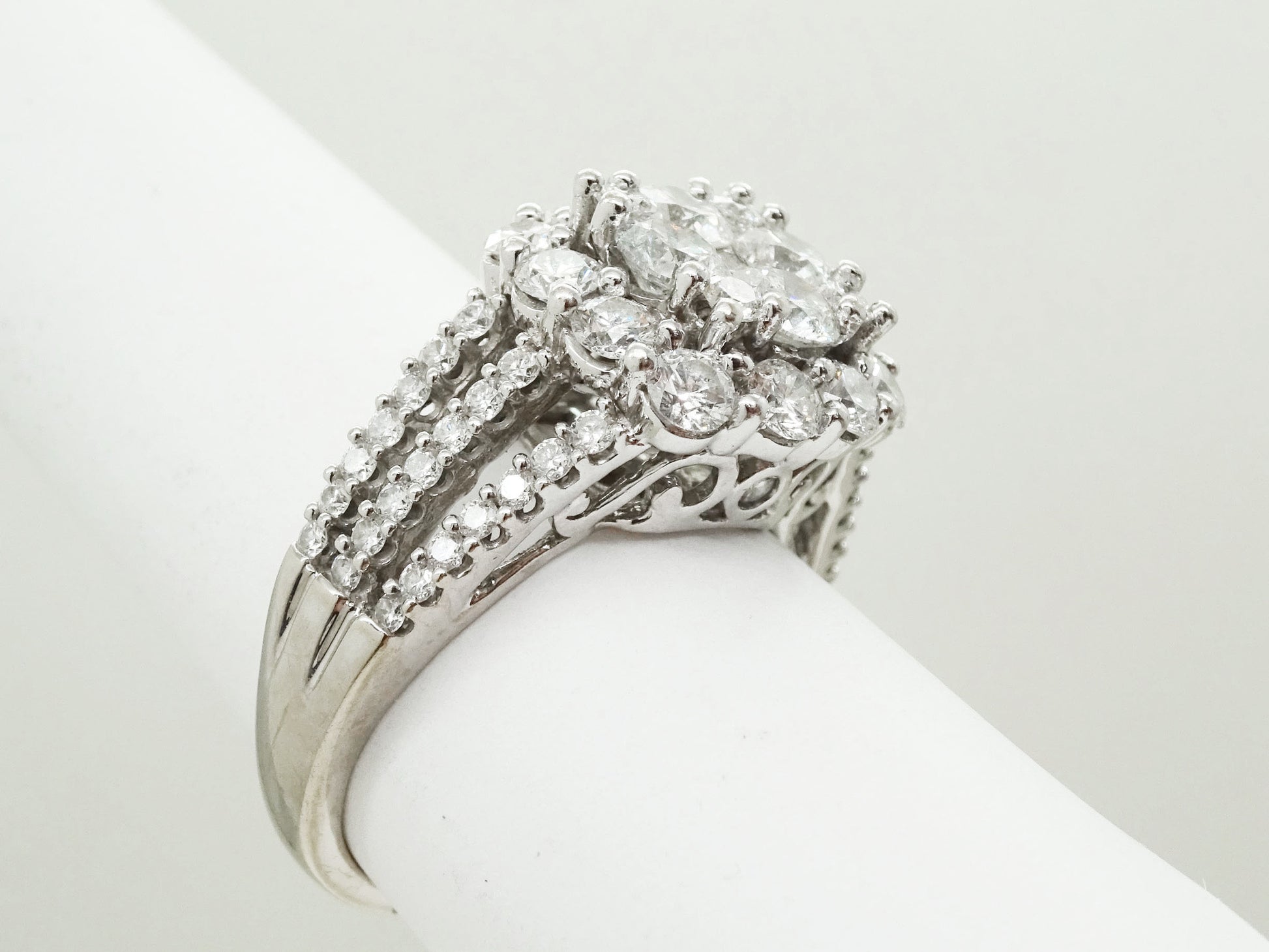 3-3.1 ctw Natural Diamond Cluster Ring 14k White Gold Size 8.5 with IGI Report