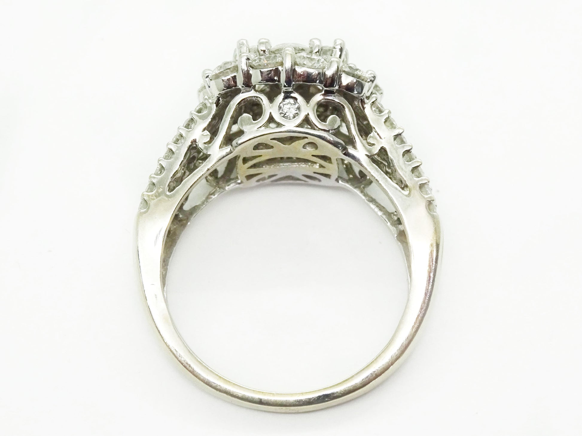 Gorgeous round brilliant diamond cluster ring in 14k white gold.