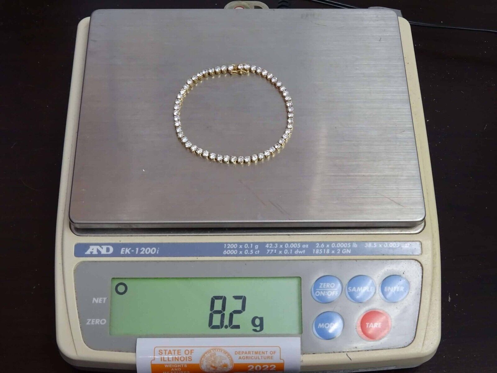 3.5mm Wide Round CZ Tennis Bracelet 14k Gold 7.25" Long 8.2 Grams
