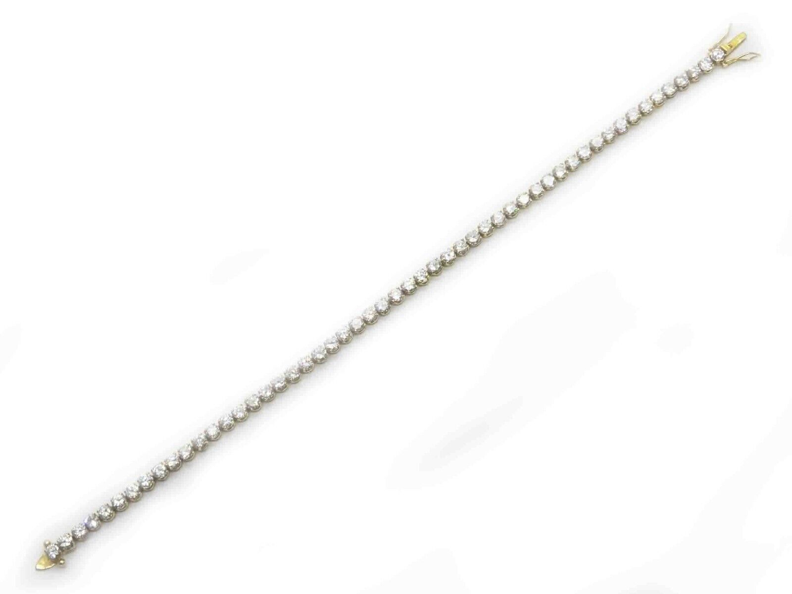 Shiny CZ tennis bracelet in 14k yellow gold.