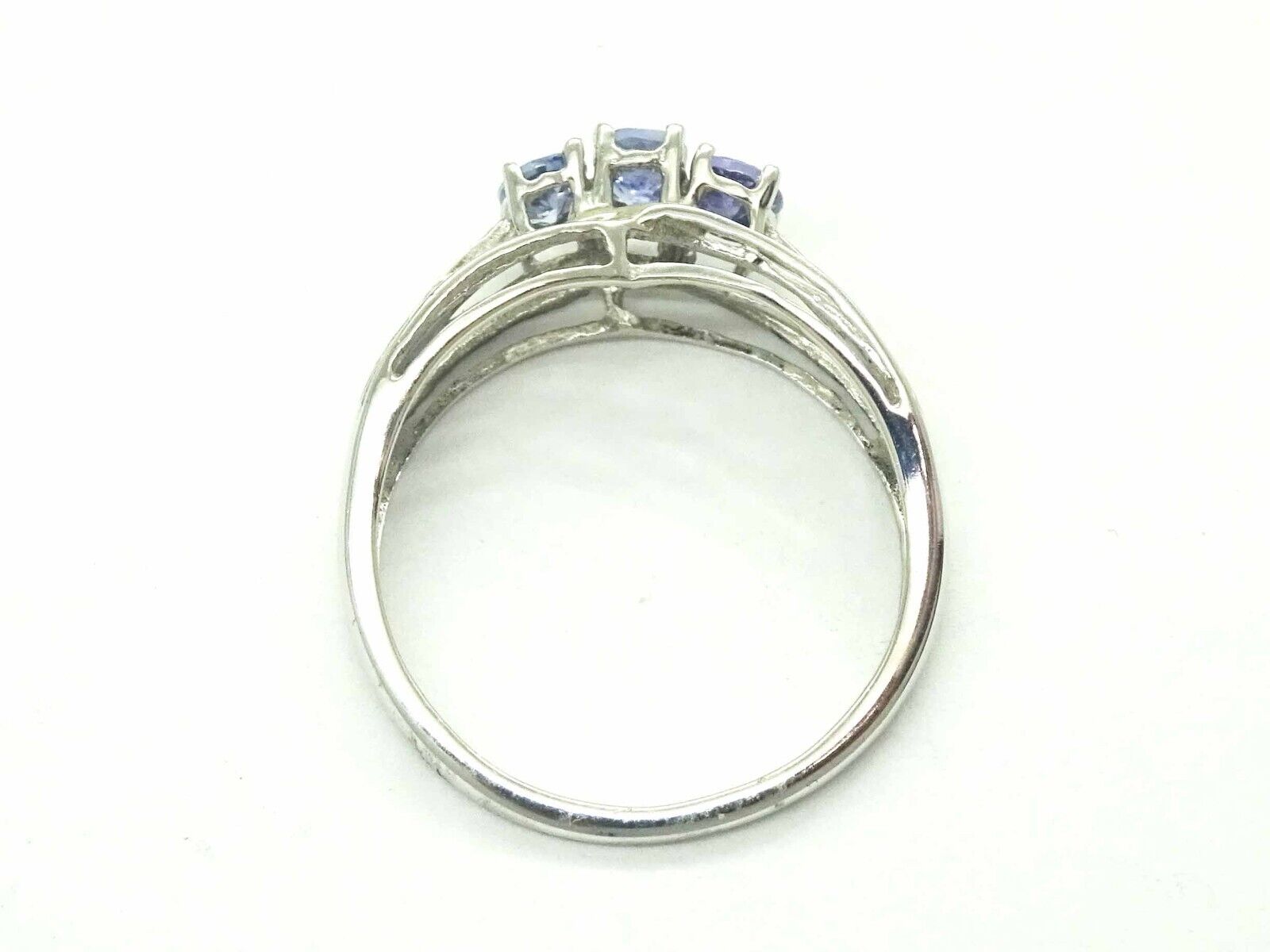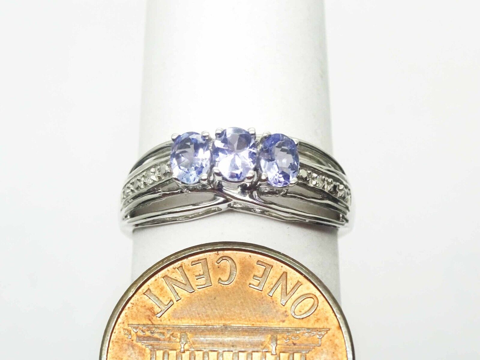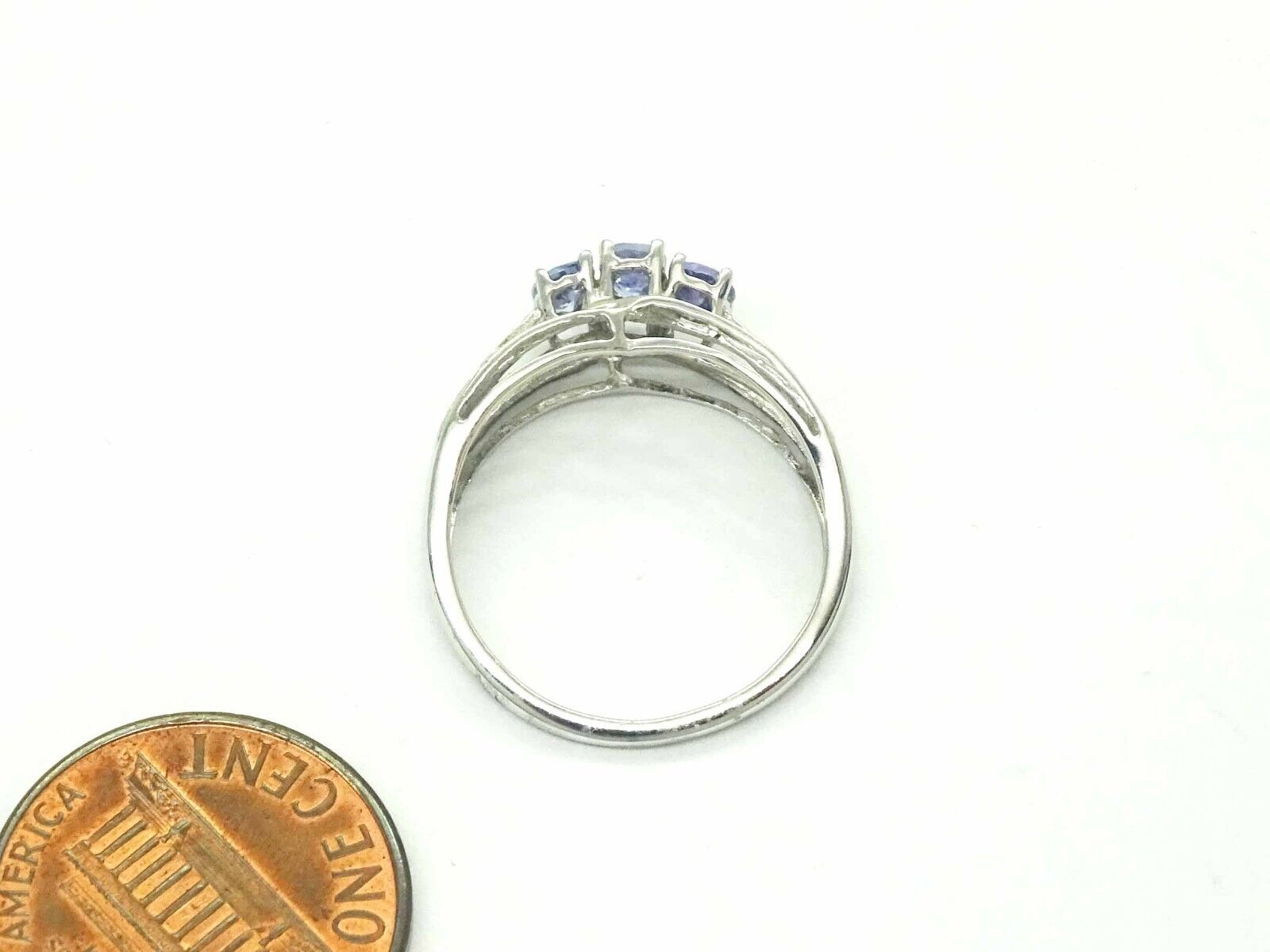 3-Stone Natural Blue Amethyst & Diamond Filigree Ring 10k White Gold Size 7