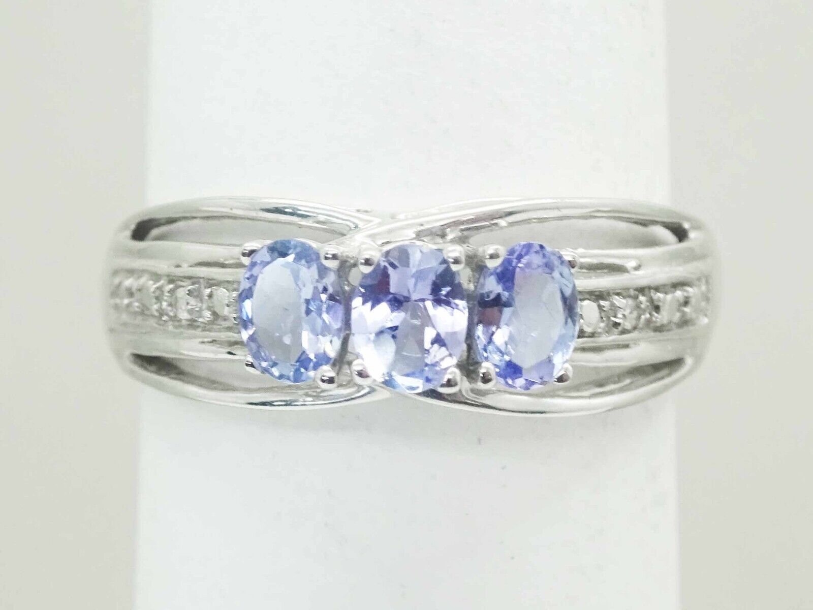 3 main oval natural blue amethysts, each with dimensions of 4mm x 3mm x 2mm. Gem weight of 0.39ct tw.