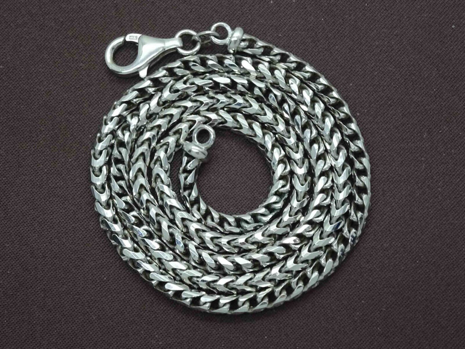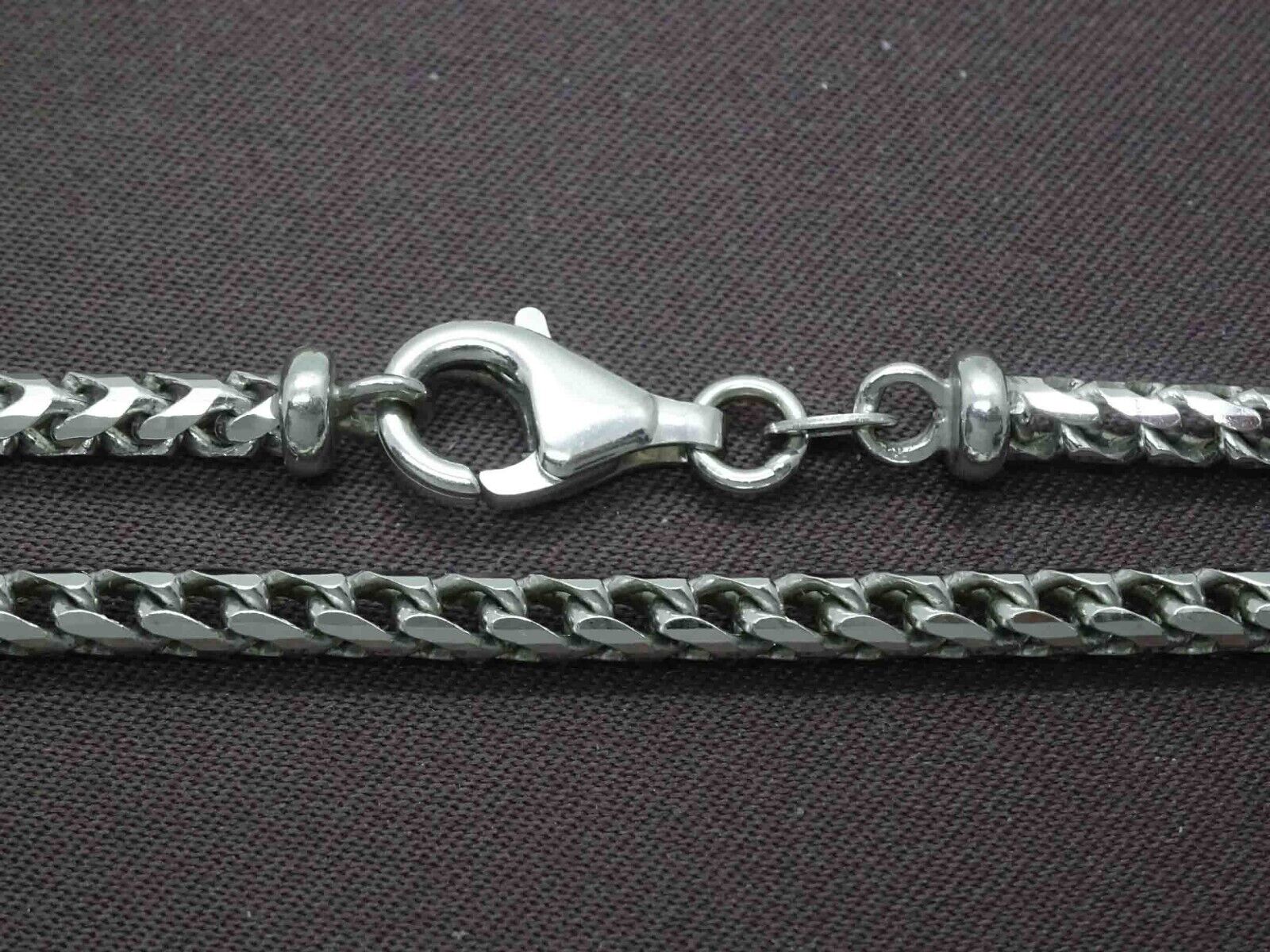 Fancy Italian foxtail link chain necklace in 14k white gold.