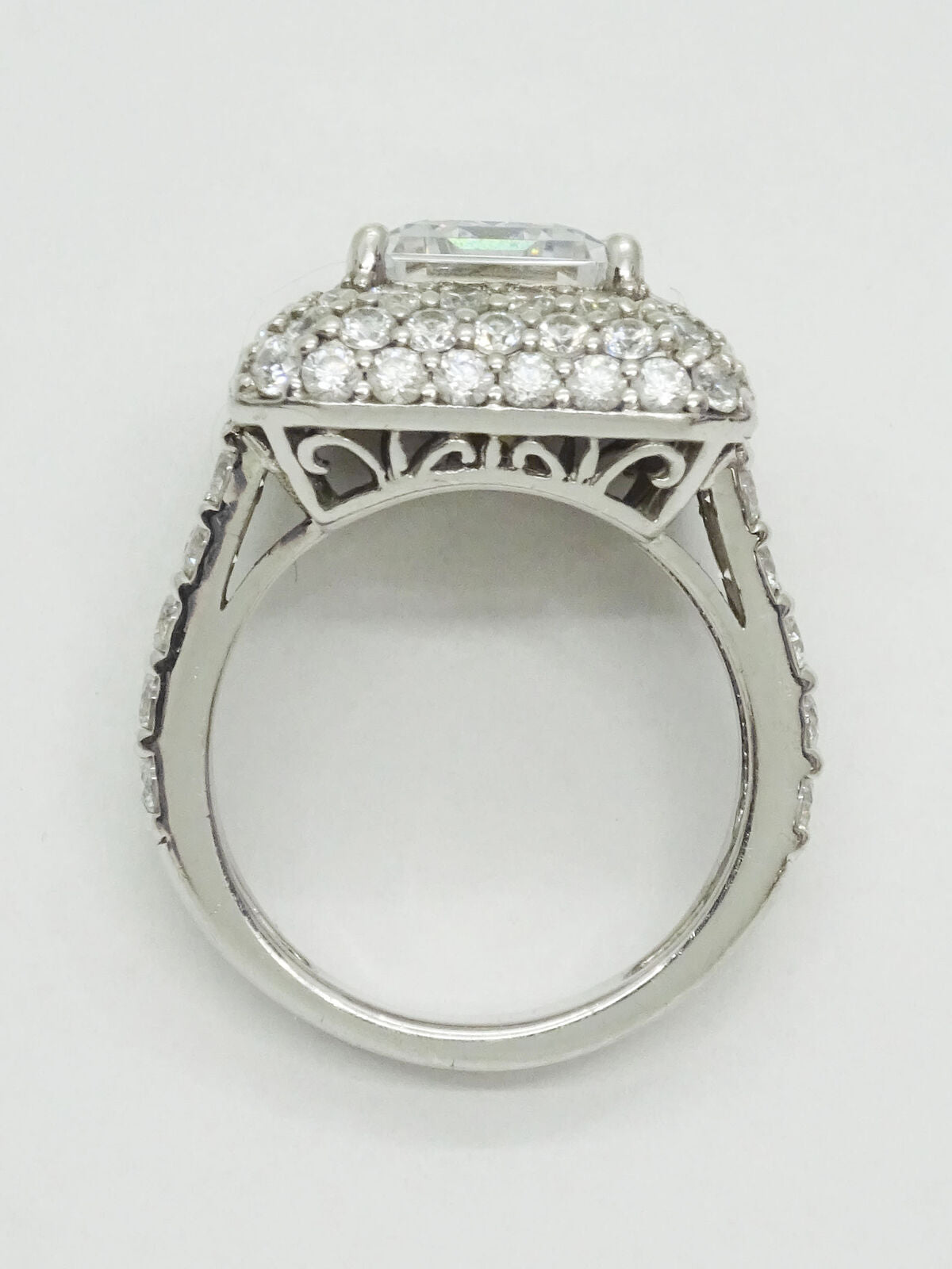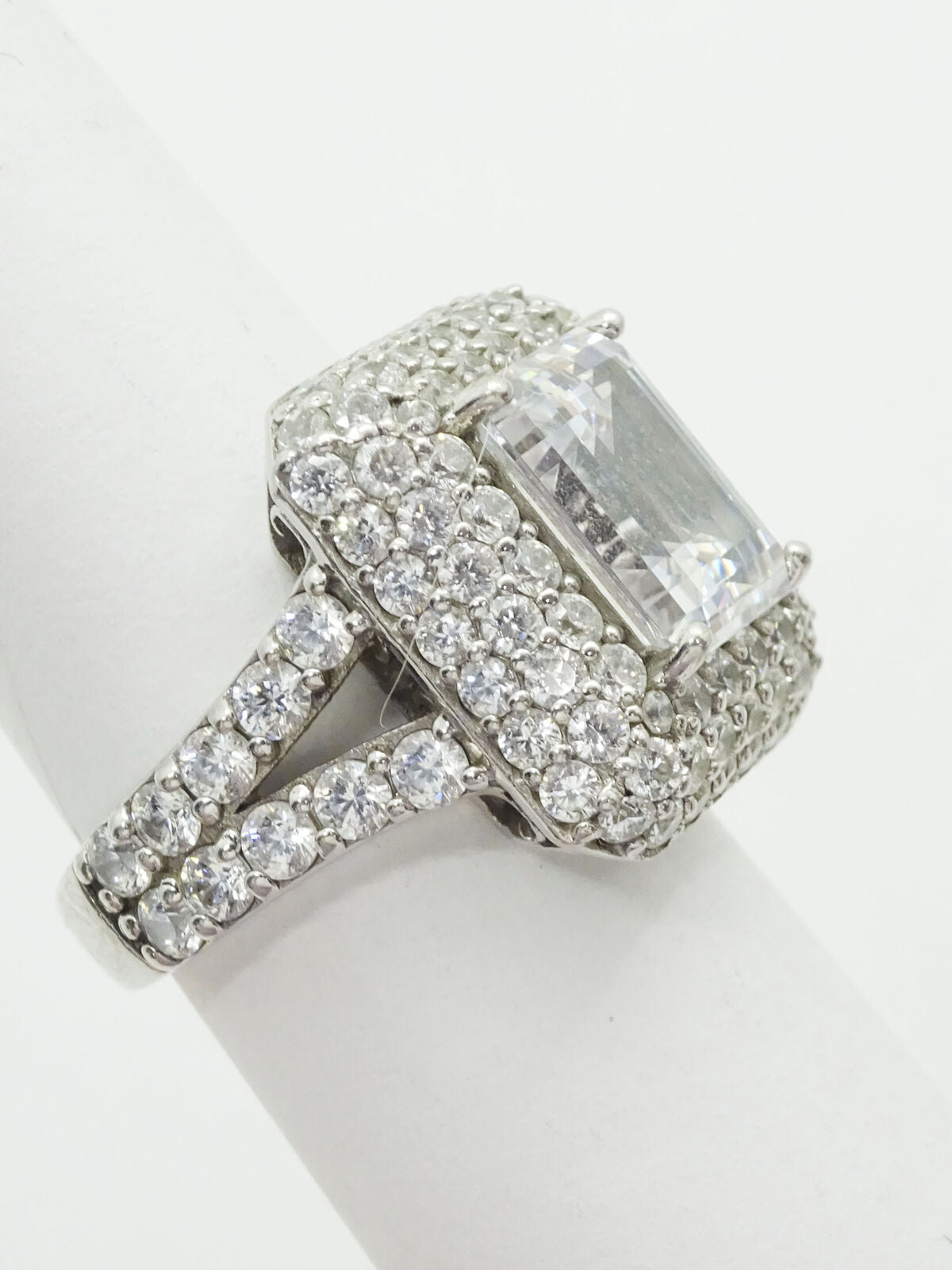 5ct tw Em-Cut CZ Center Pave Square Halo Ring Sterling Silver Size 5.25