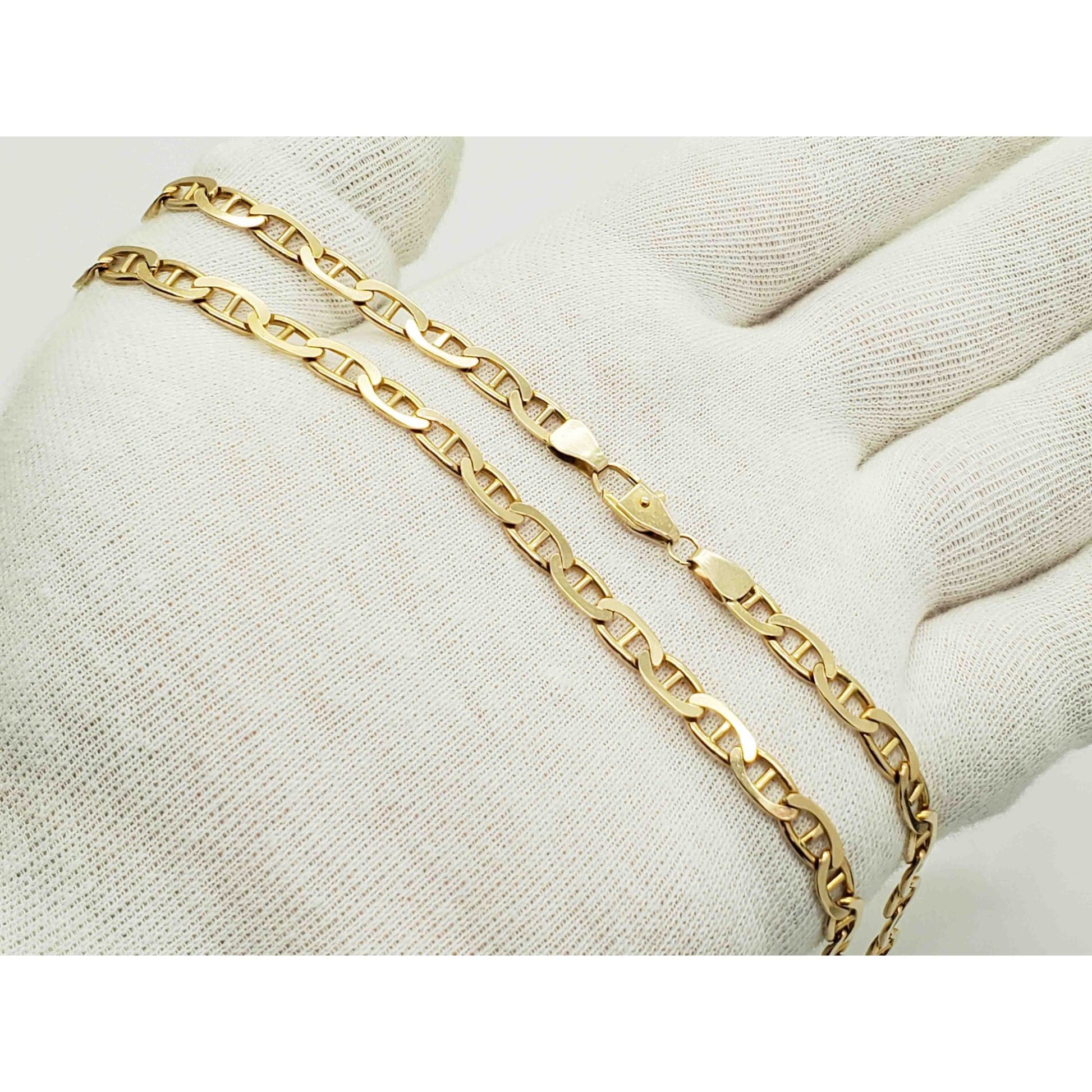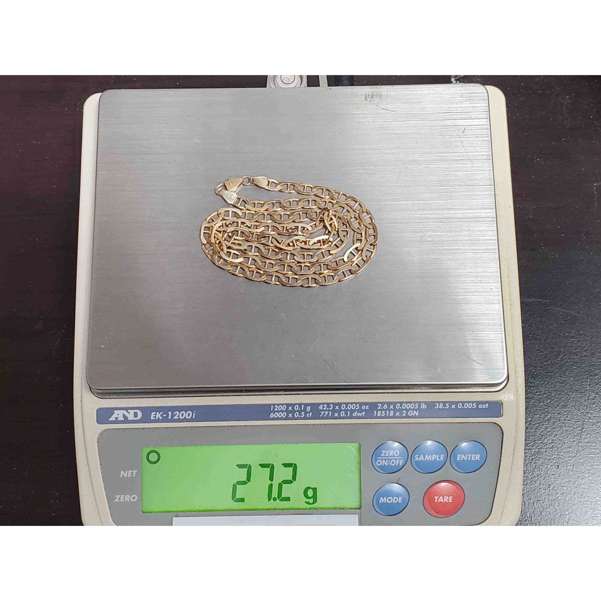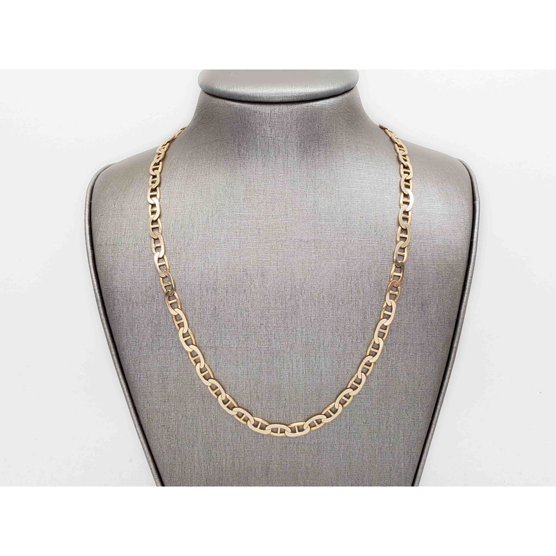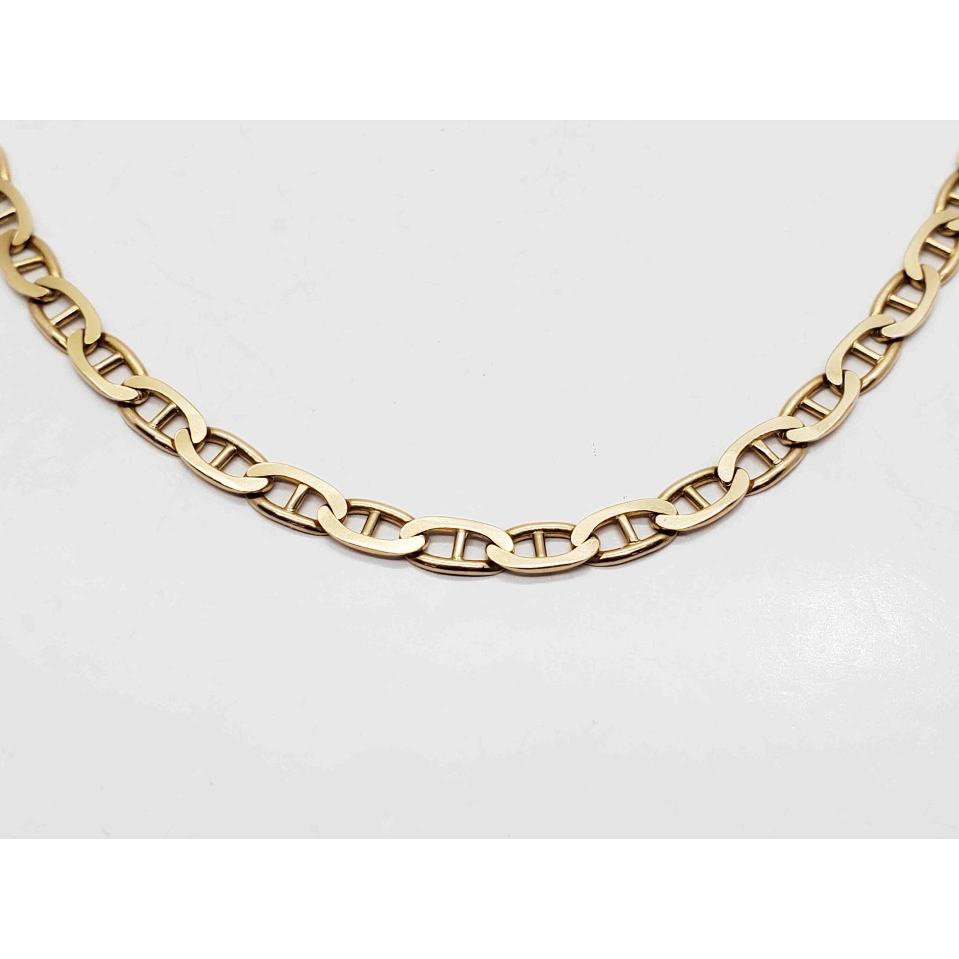 Solid 14k yellow gold mariner link style chain necklace.