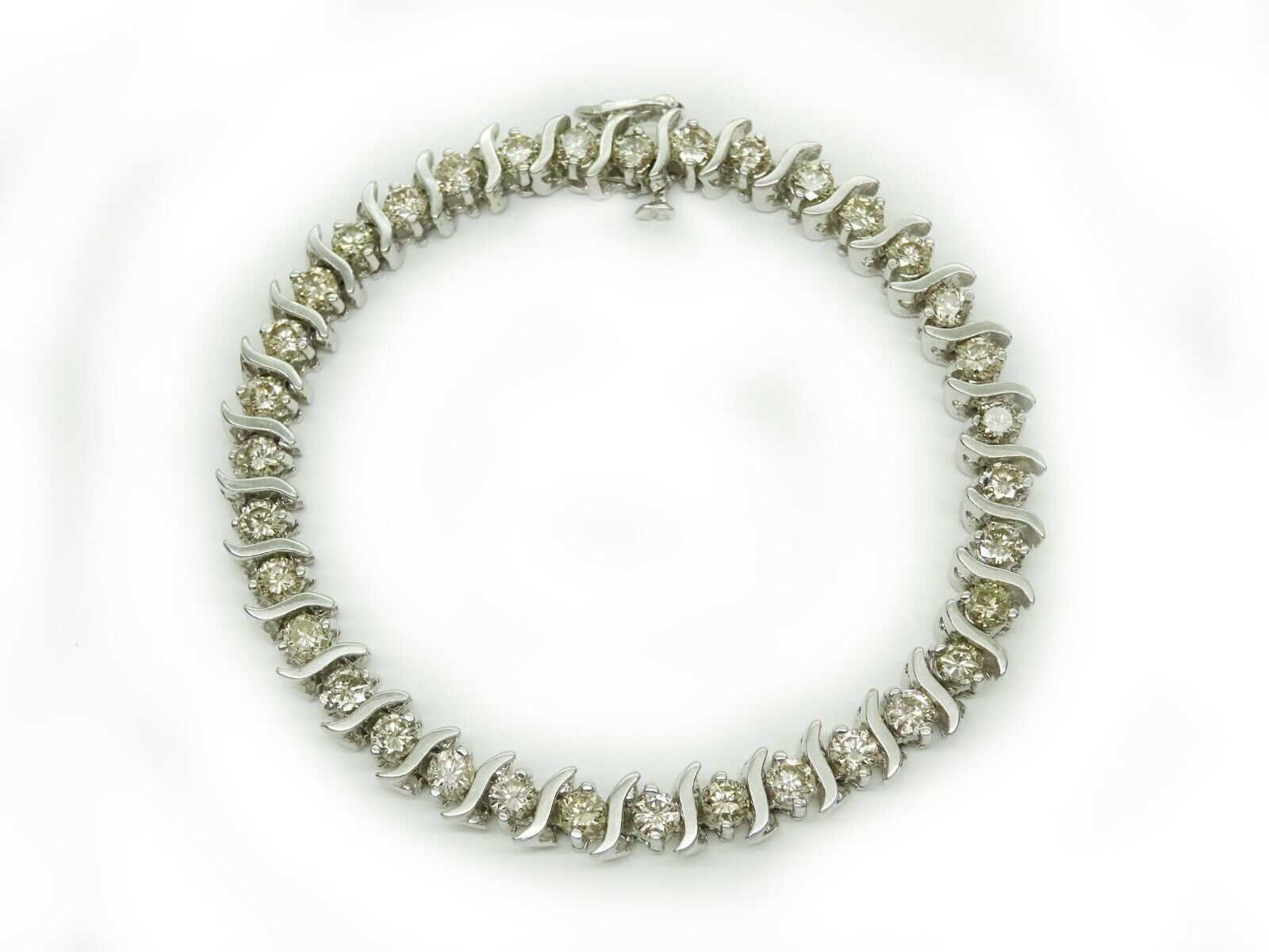 Dazzling diamond tennis bracelet in 14k white gold, with S-link design.