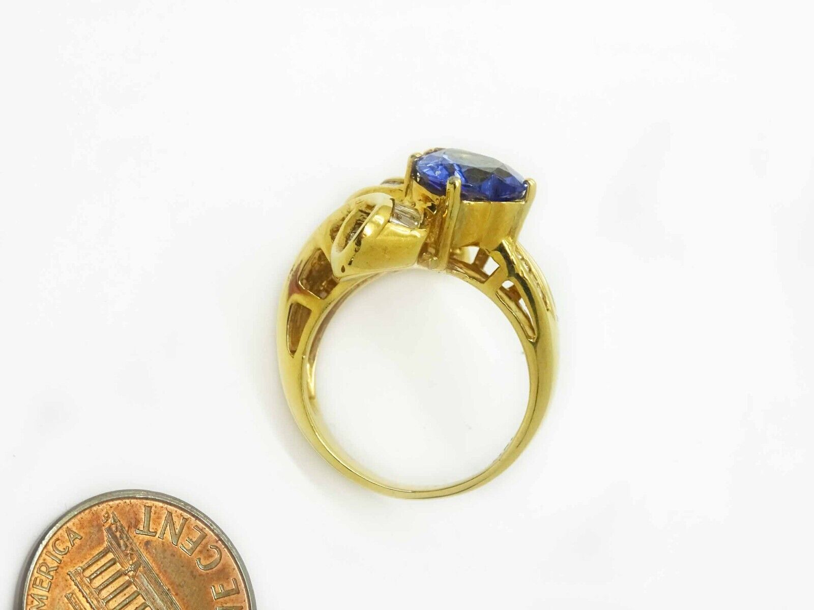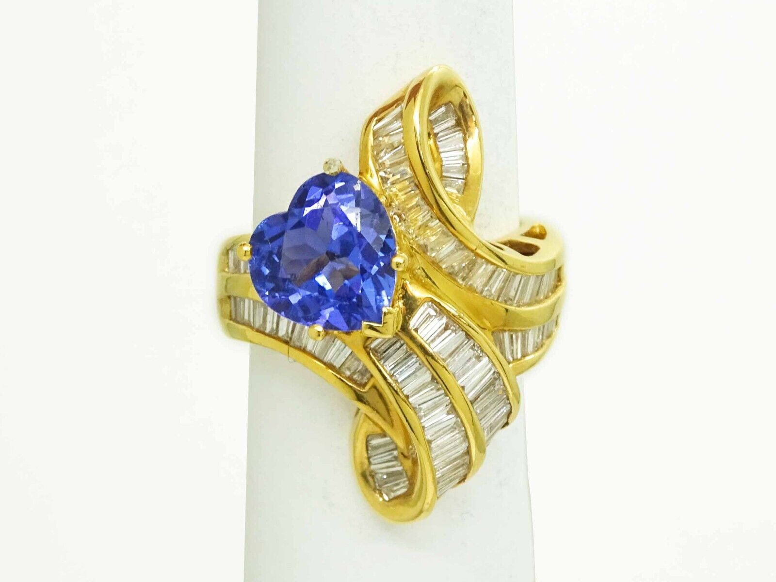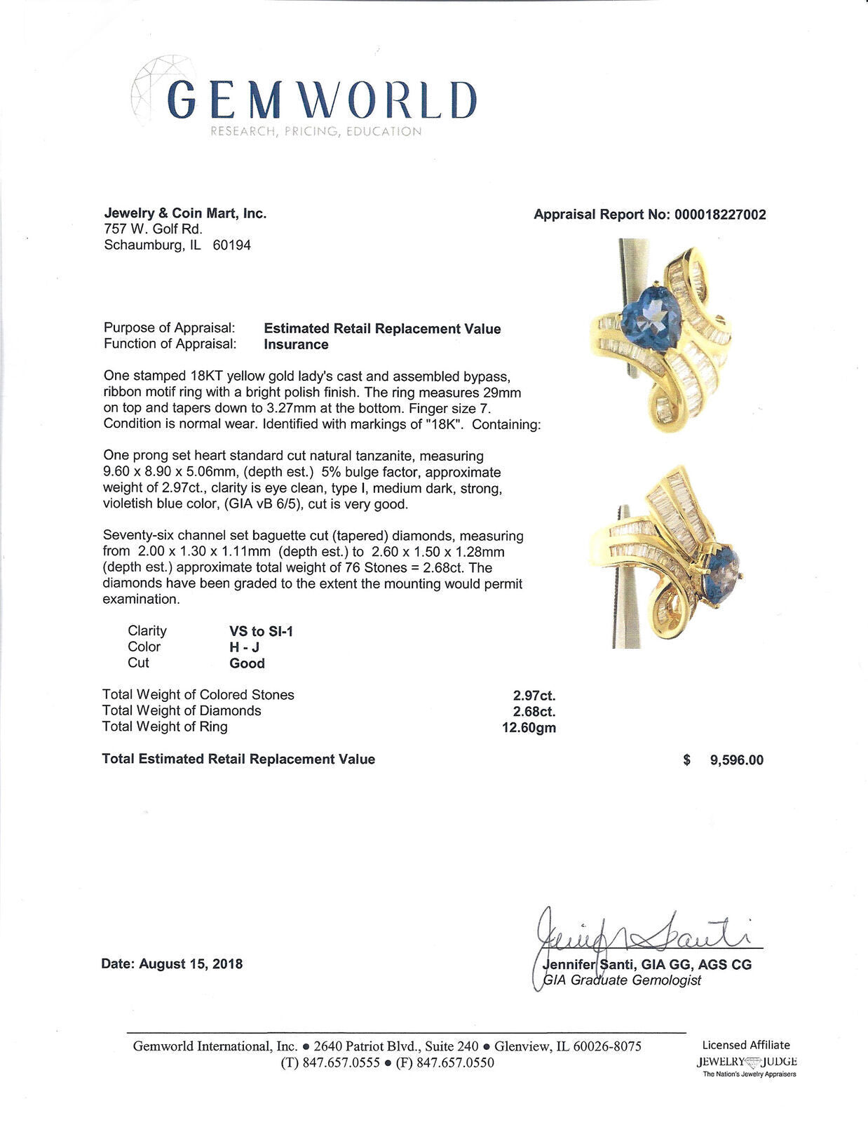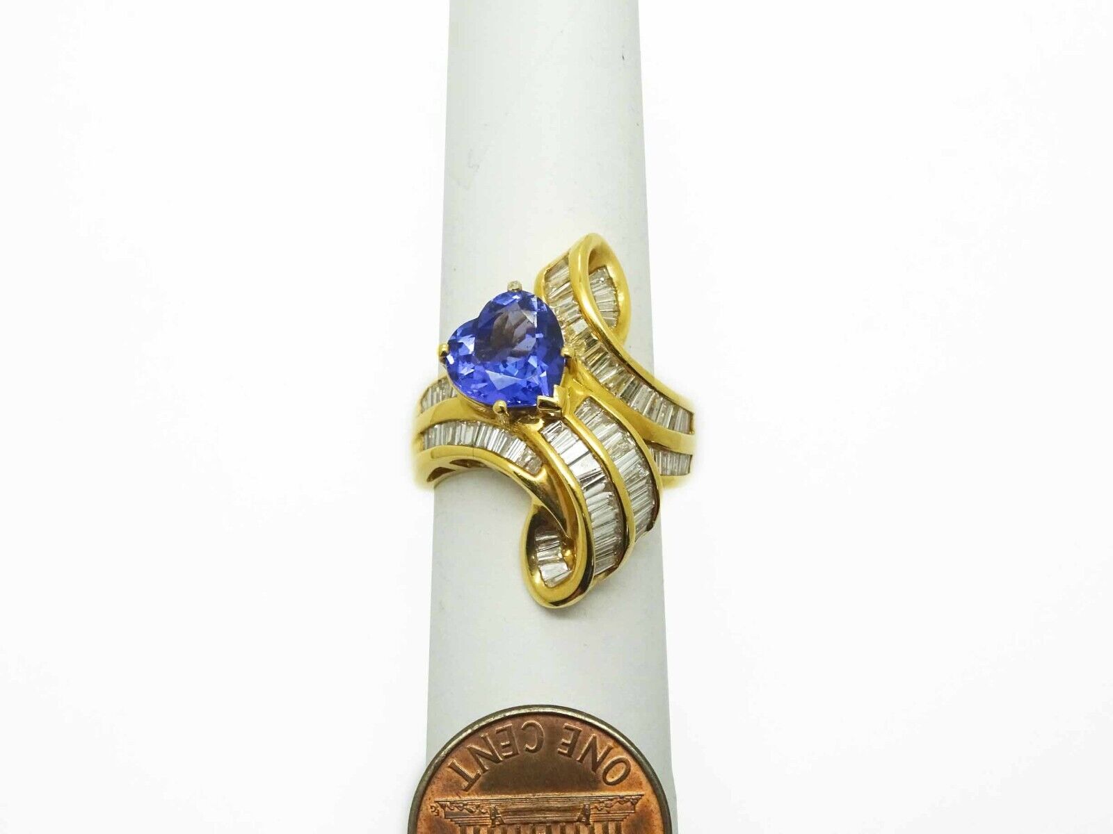 5.65ct tw Heart Tanzanite & Diamond Ladies Ribbon Ring 18k Gold Size 7
