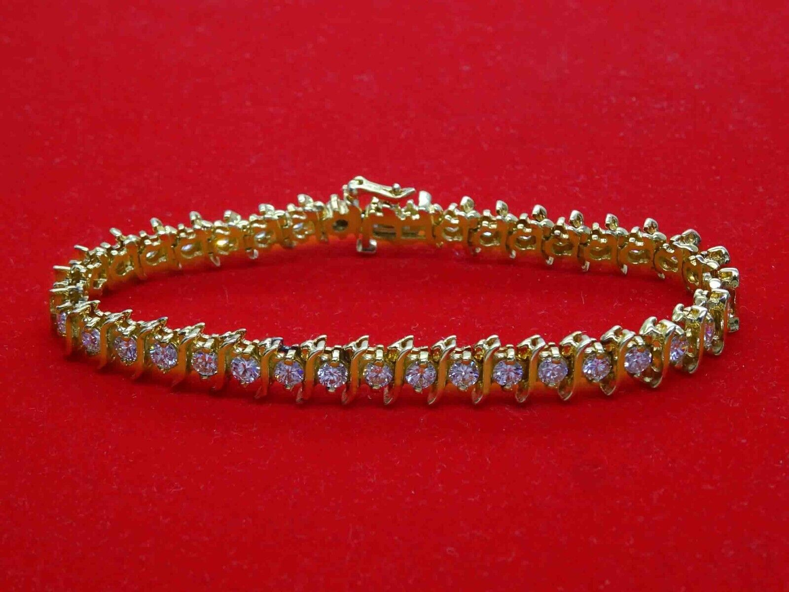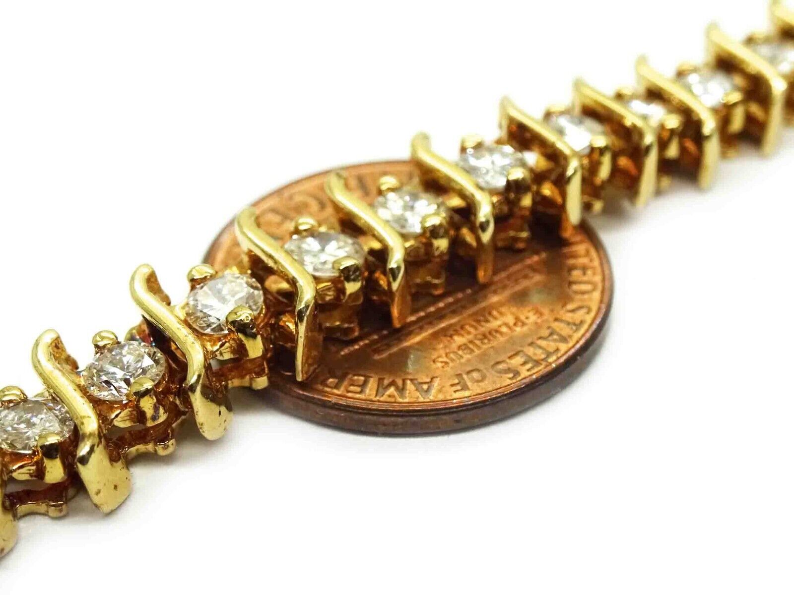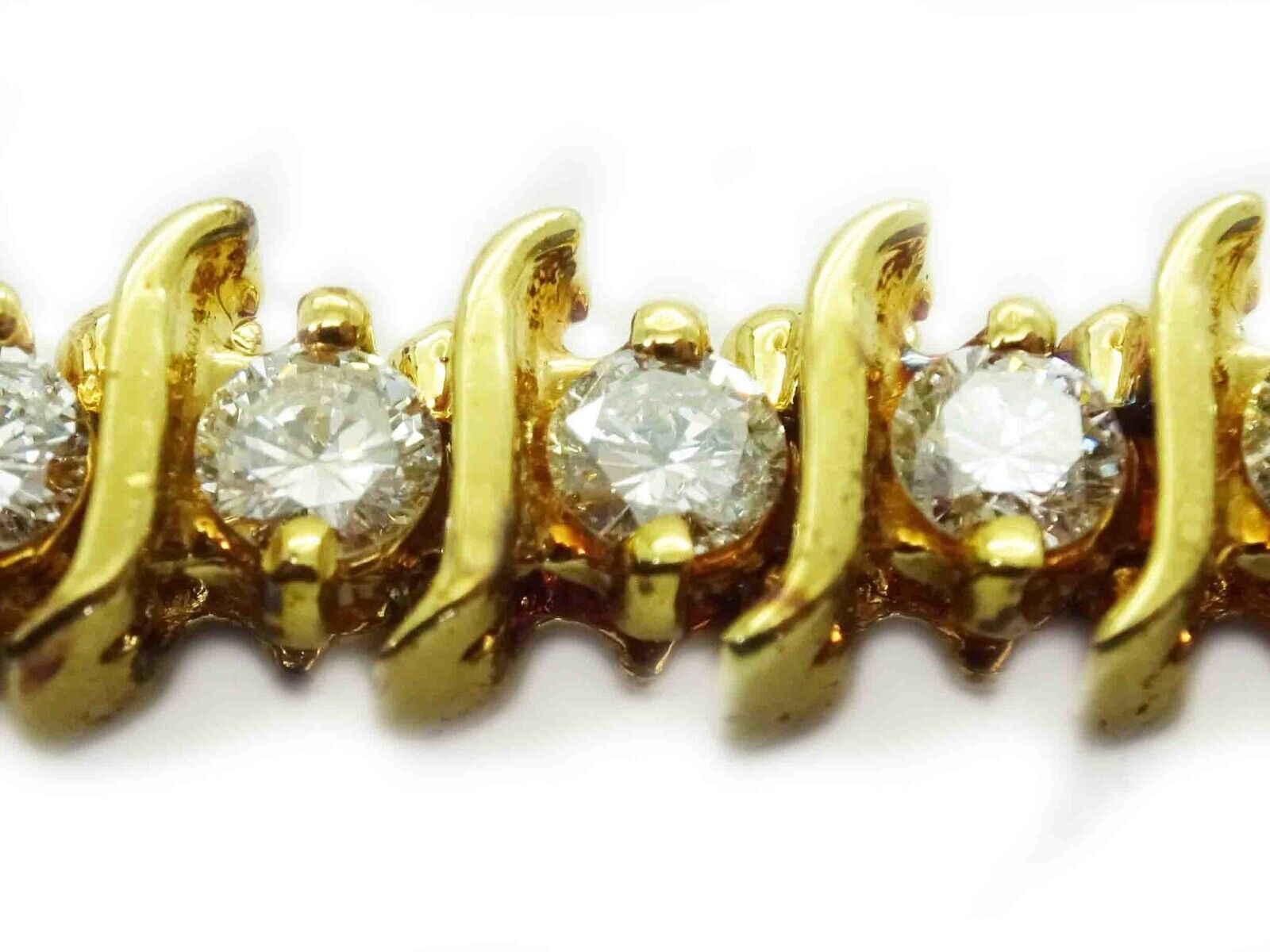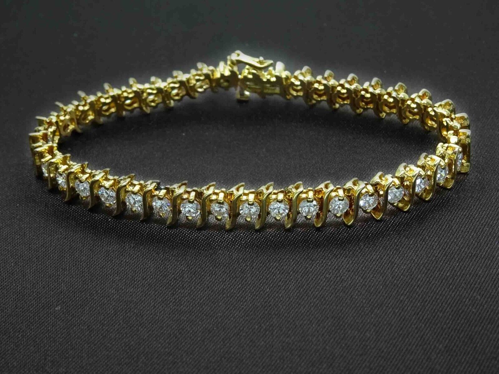 Beautiful diamond S-link tennis bracelet in 14k yellow gold.