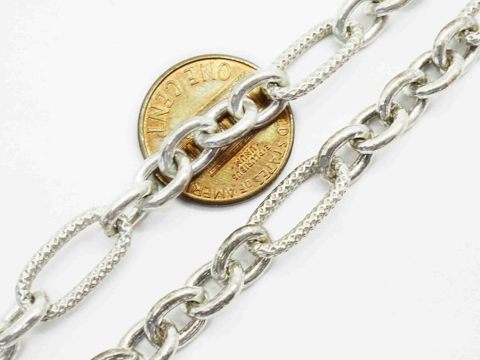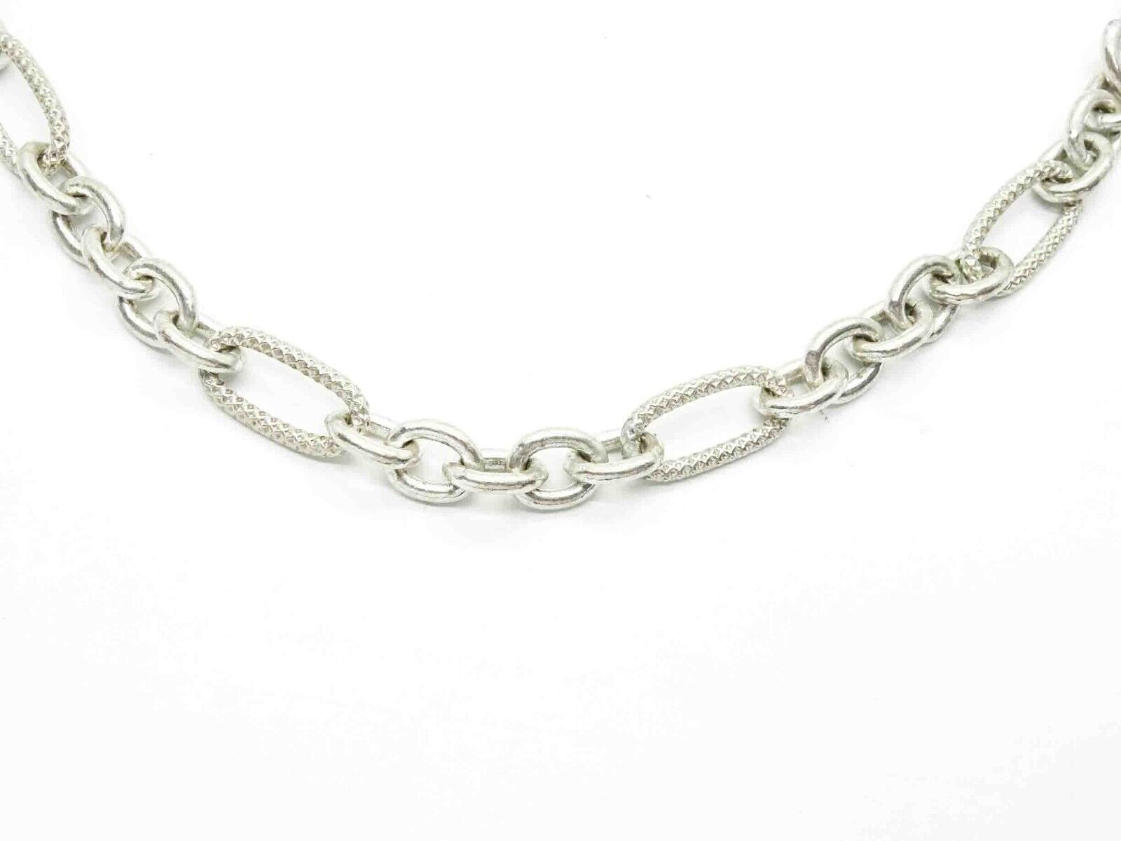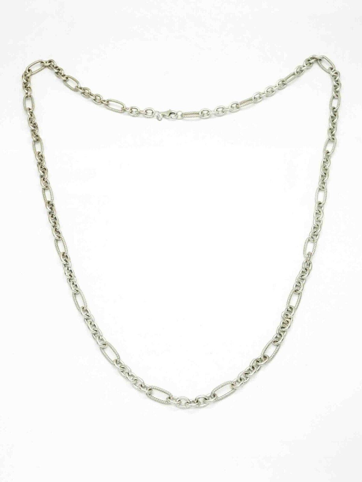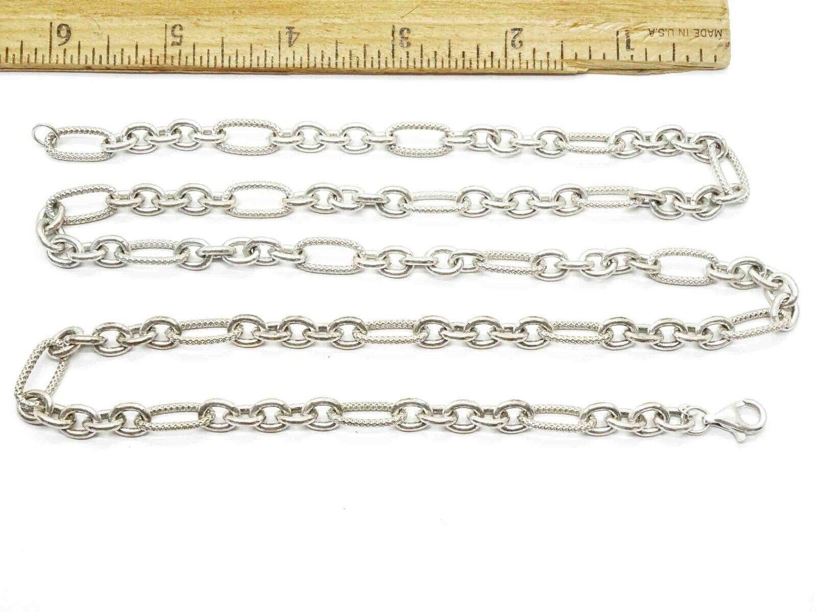 7mm Wide Figaro-Style Link Chain Necklace Sterling Silver 32" Long 65.2 Grams