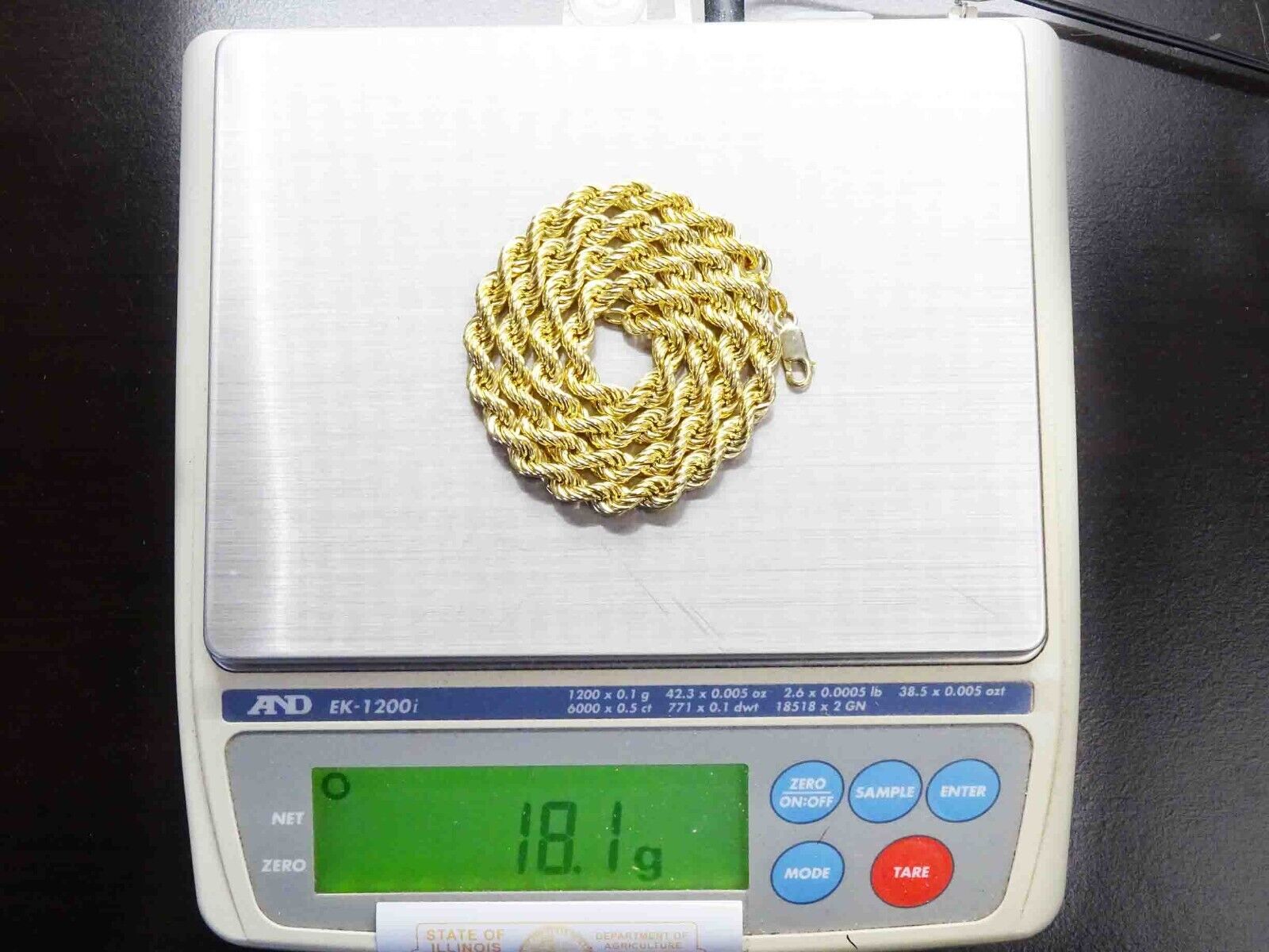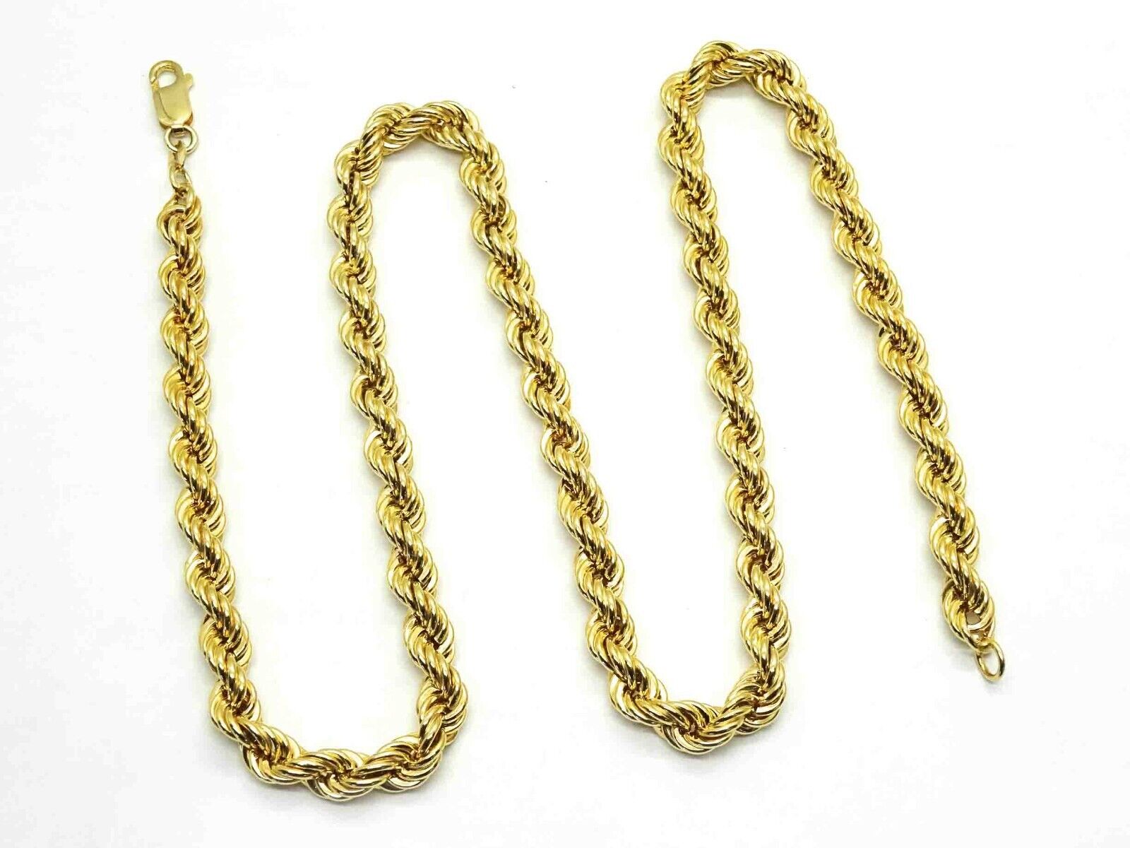 7mm Wide Rope Chain Necklace 10k Gold 22" Long 20.7 Grams