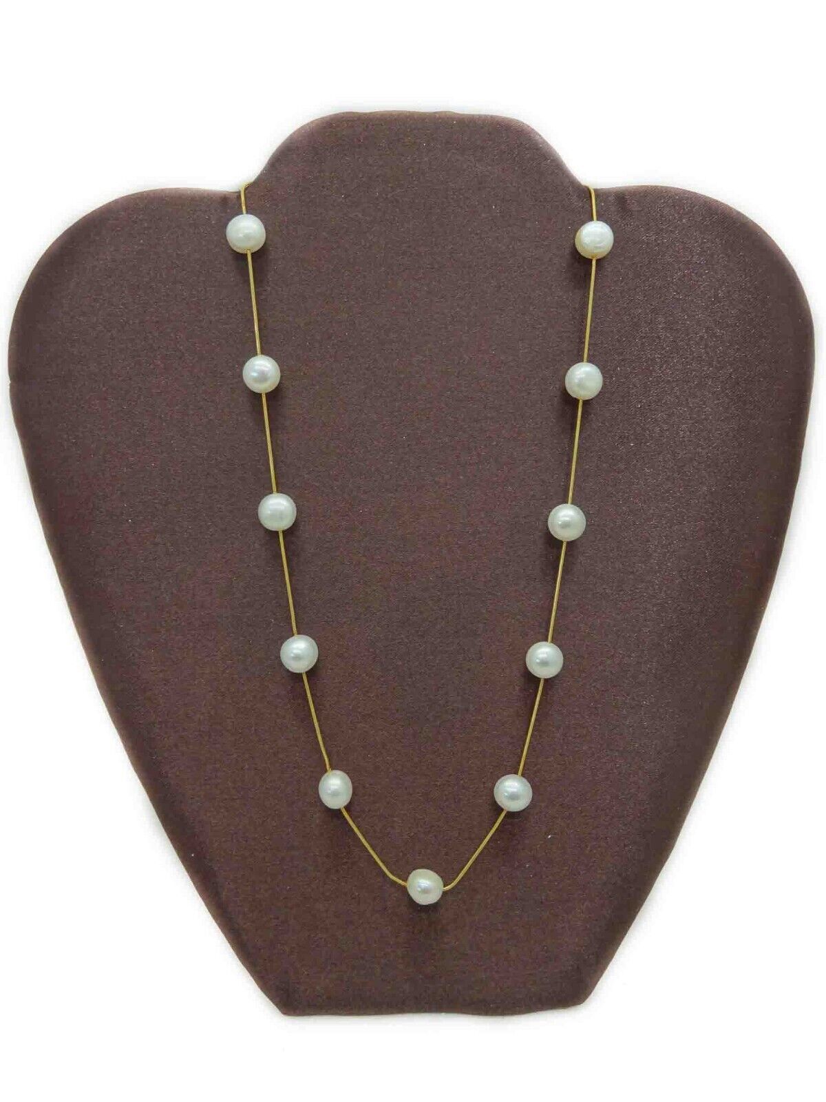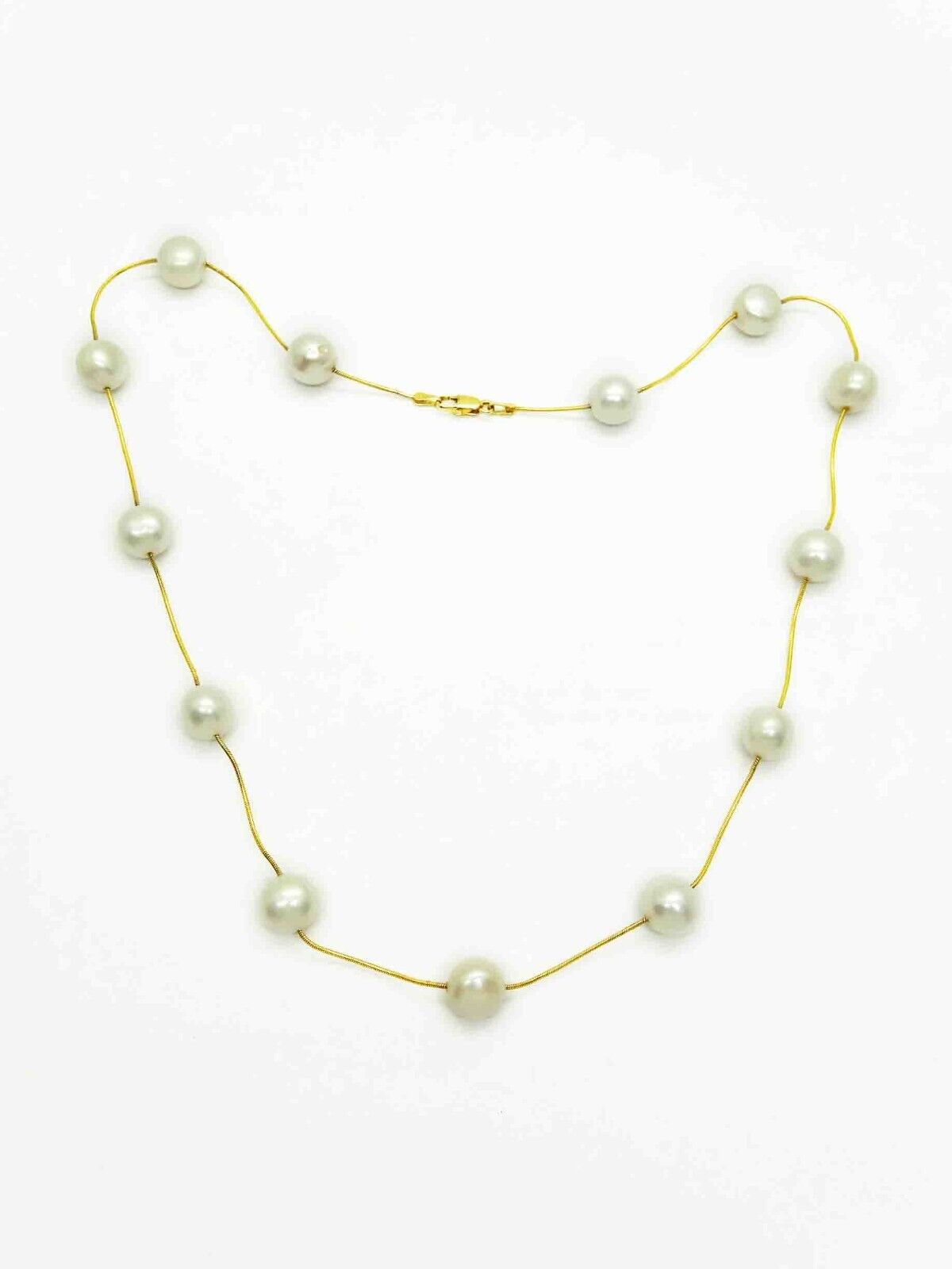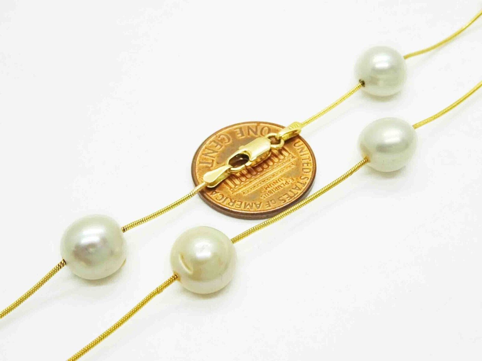 8mm-9mm Wide Pearls by the Yard Bead Station Necklace 17.5" Long 14k Gold