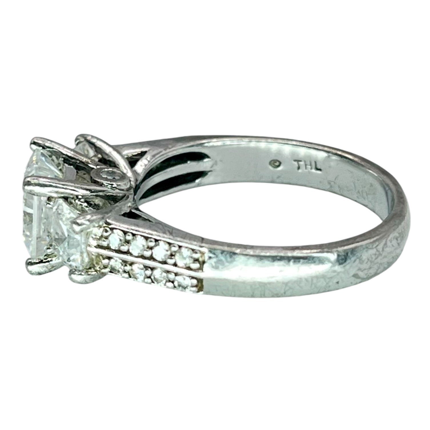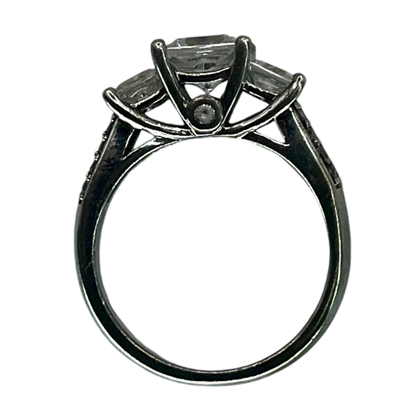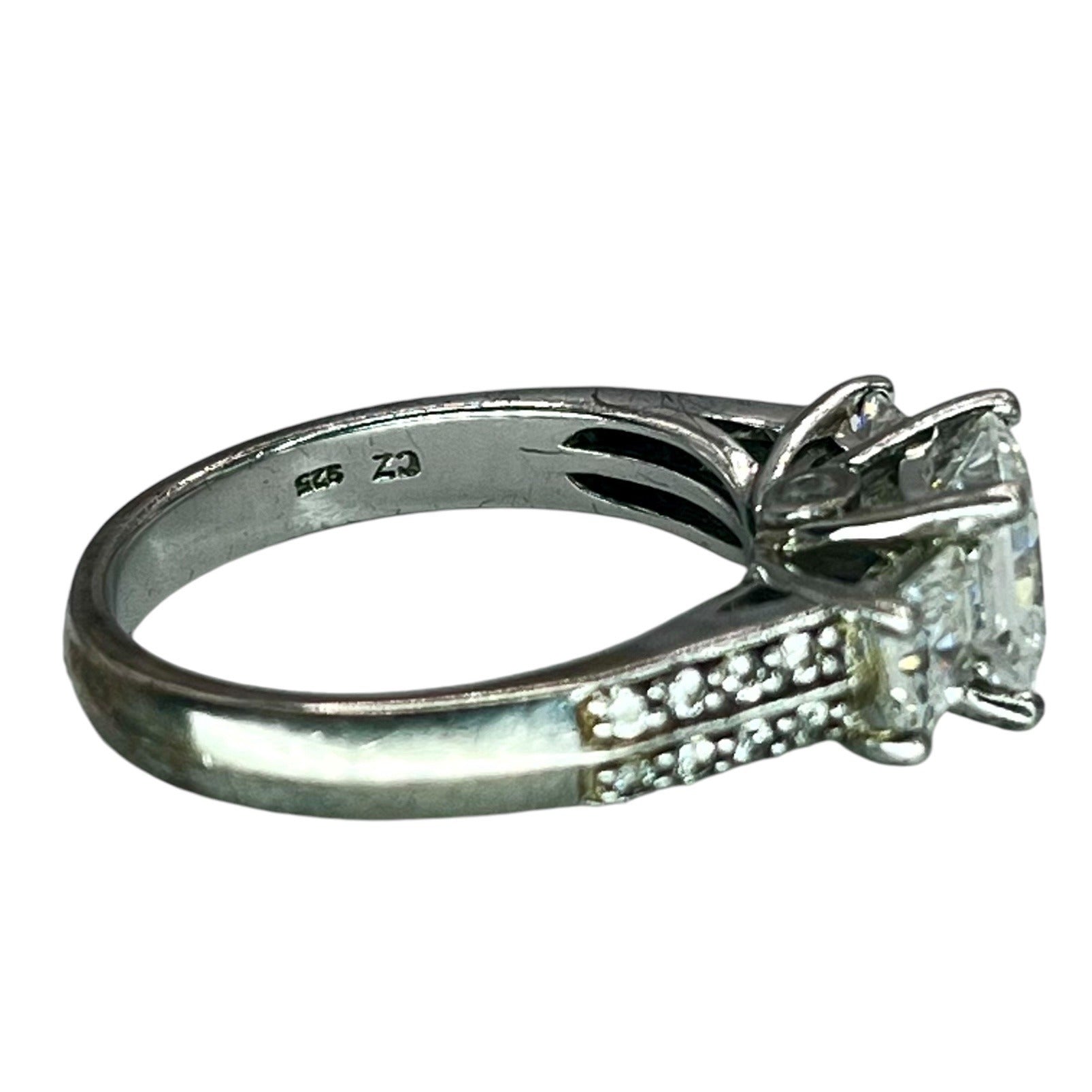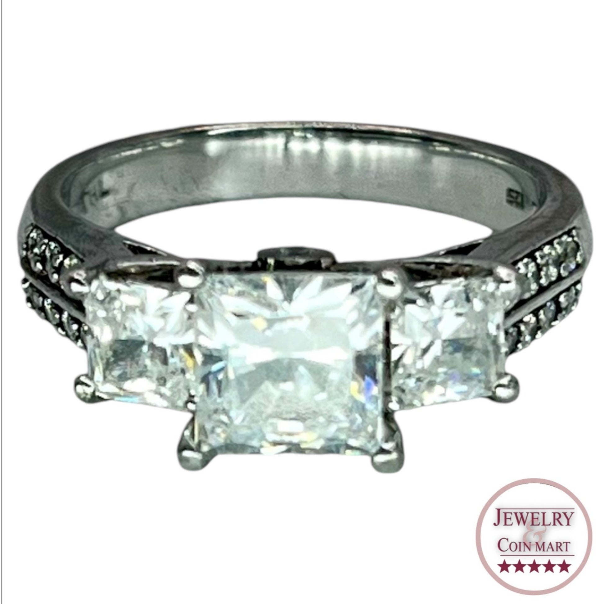 925 Silver Princess Cut Prong Setting 3 Stone CZ Ring Sz 6.75 Engagement Bridal