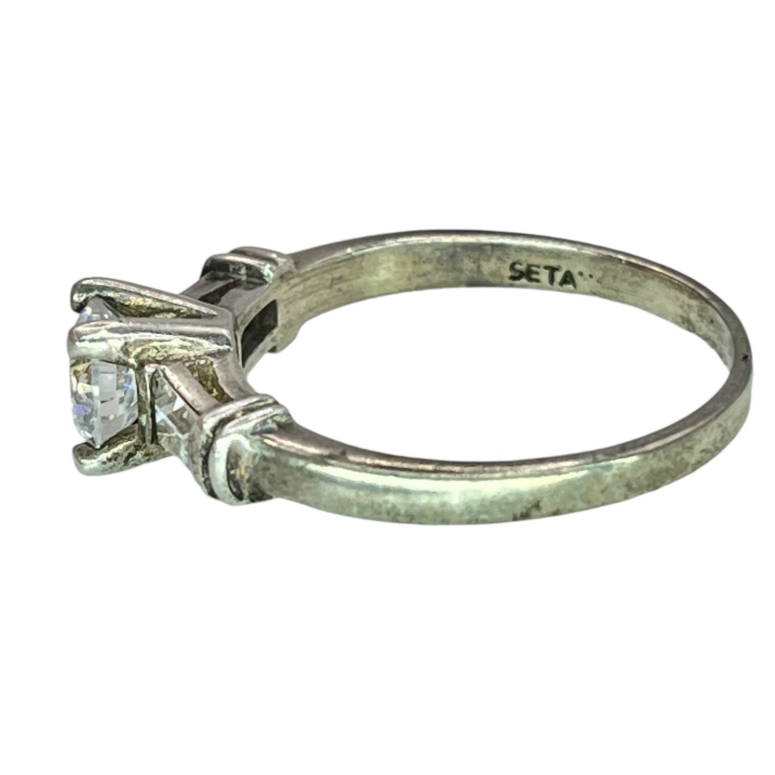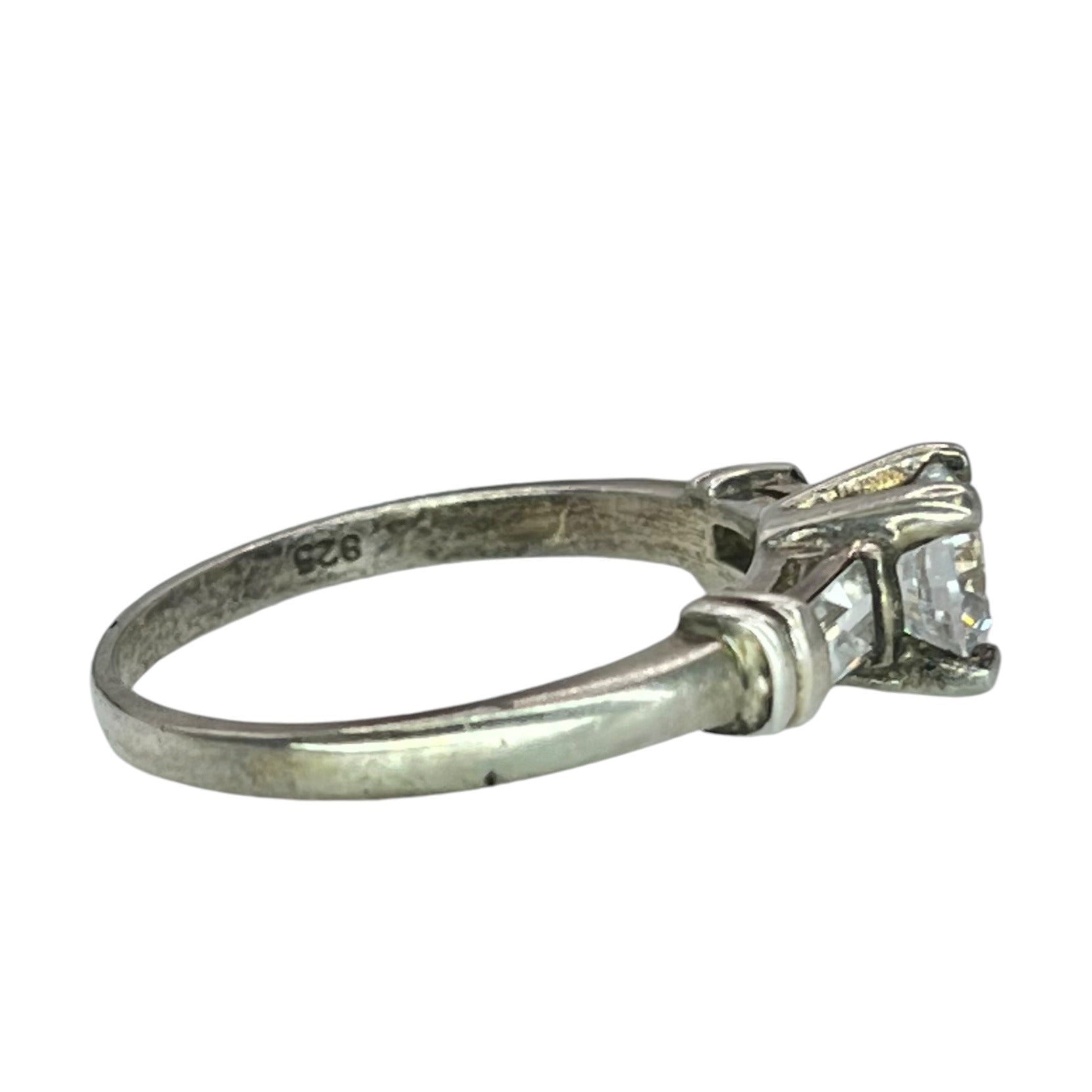 925 Silver Round Cut CZ Ring Size 9 Engagement Wedding Tapered Baguette Accents
