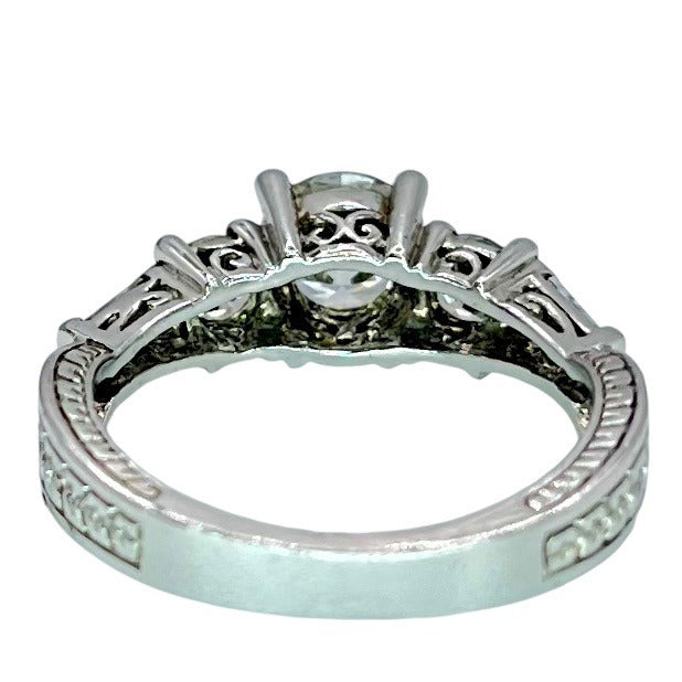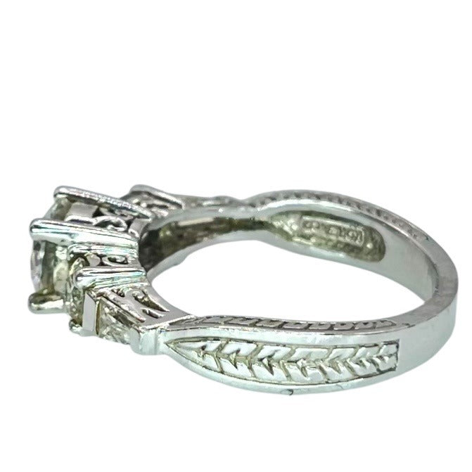 925 Silver Round Cut Three Stone CZ Ring Size 7 Engagement Bridal Intricate