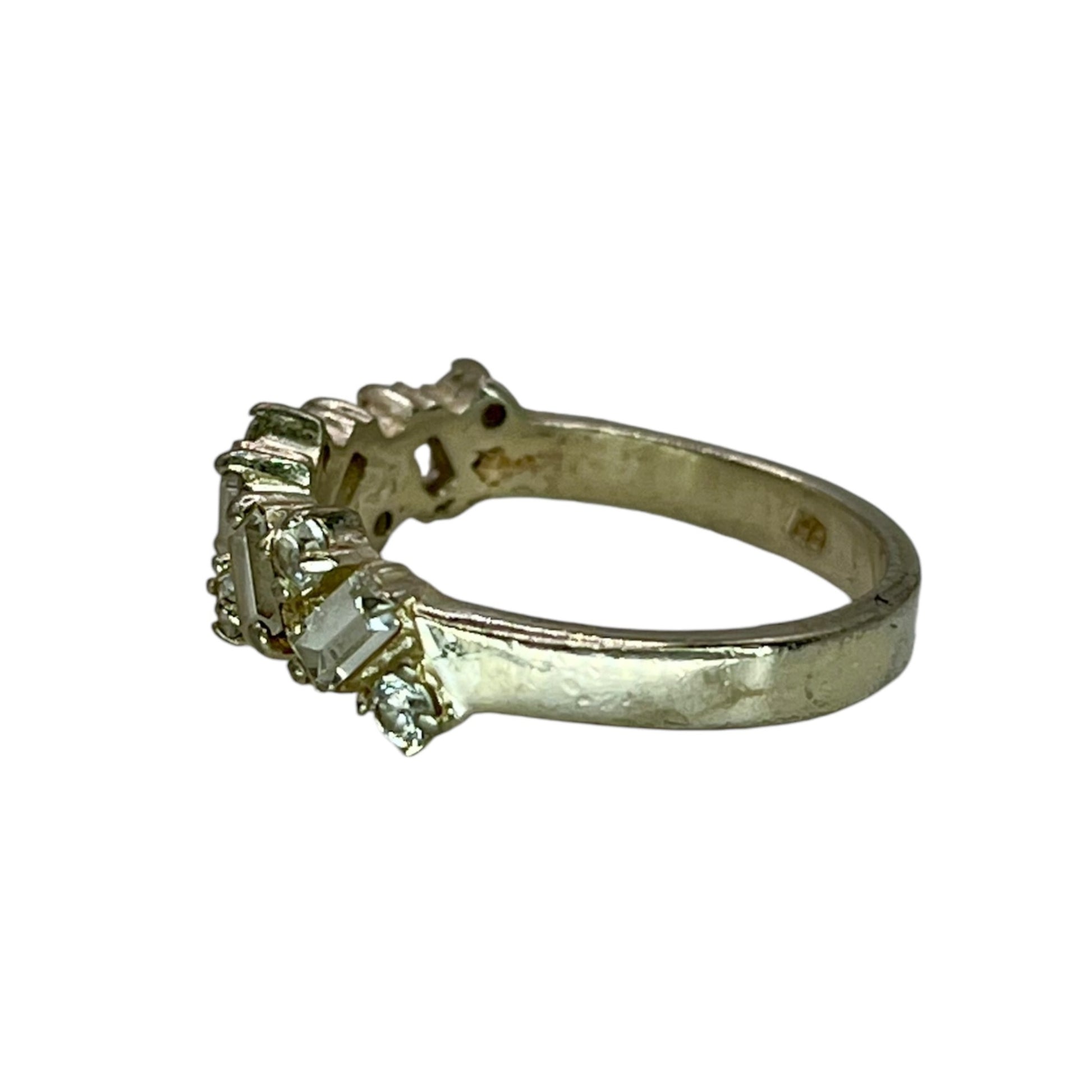 925 Sterling Silver Baguette and Round Cut Cubic Zirconia Ring Size 8.25 Band