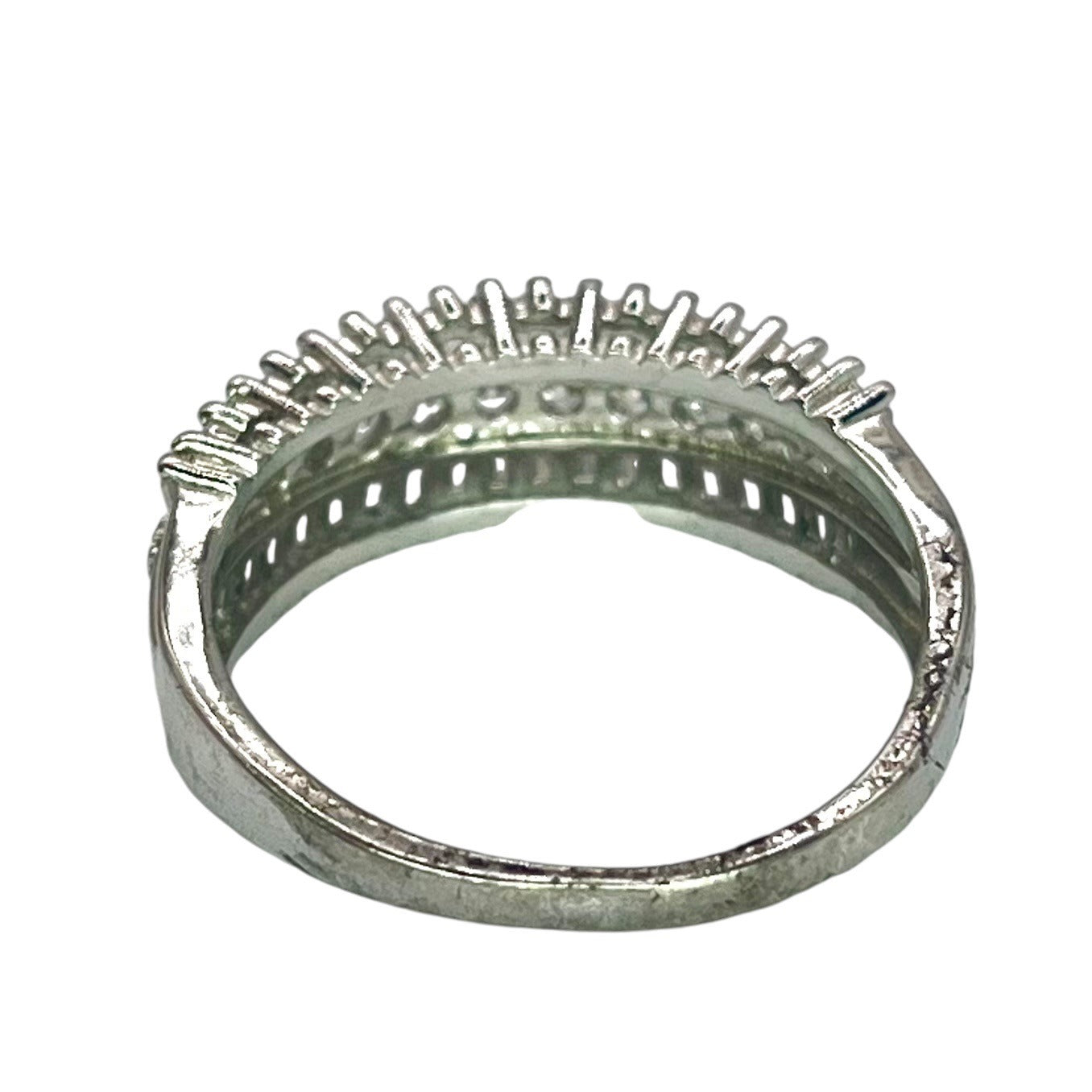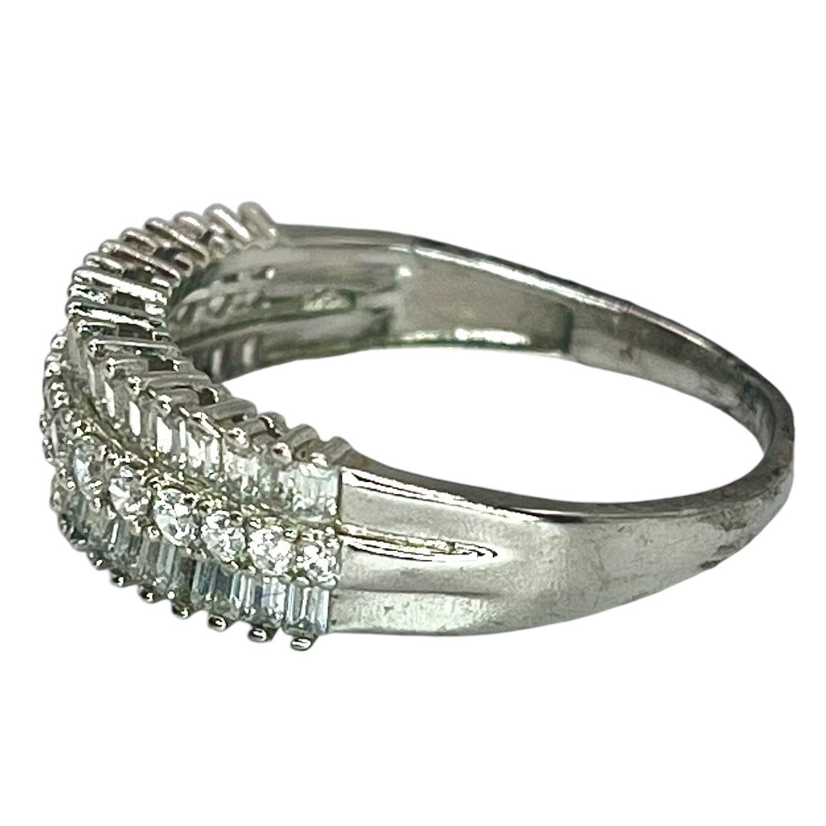 925 Sterling Silver Baguette and Round Cut Cubic Zirconia Ring Size 8.75 Band