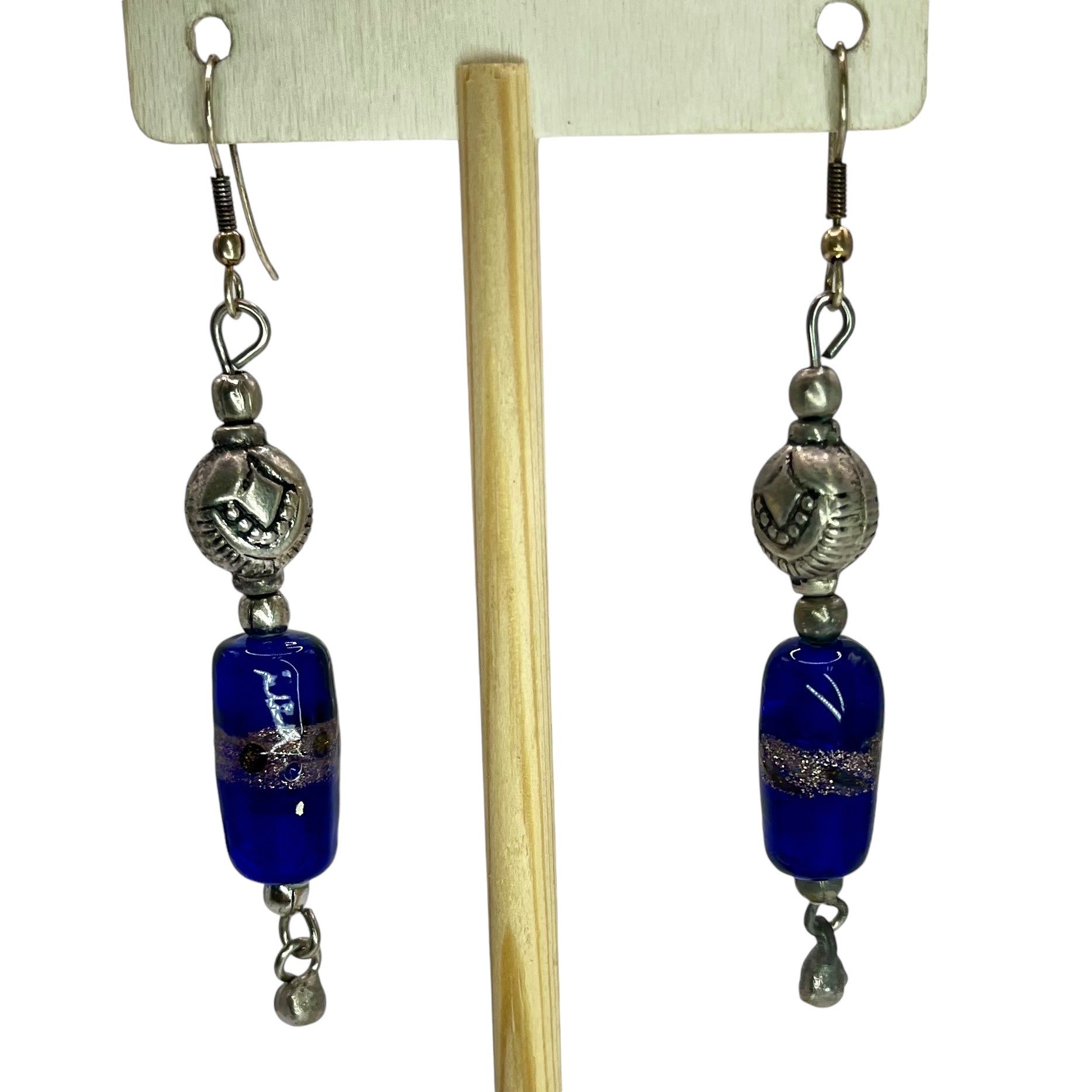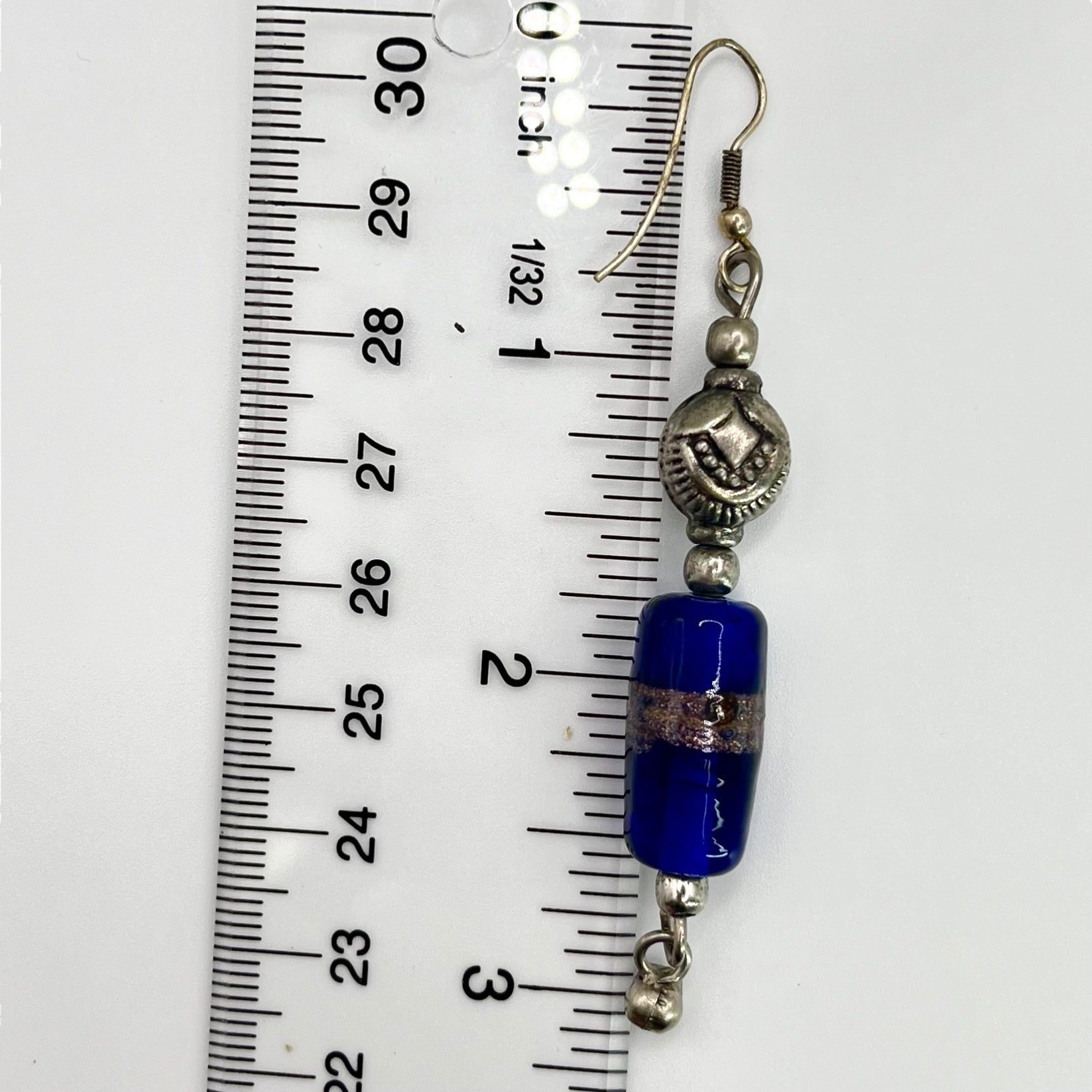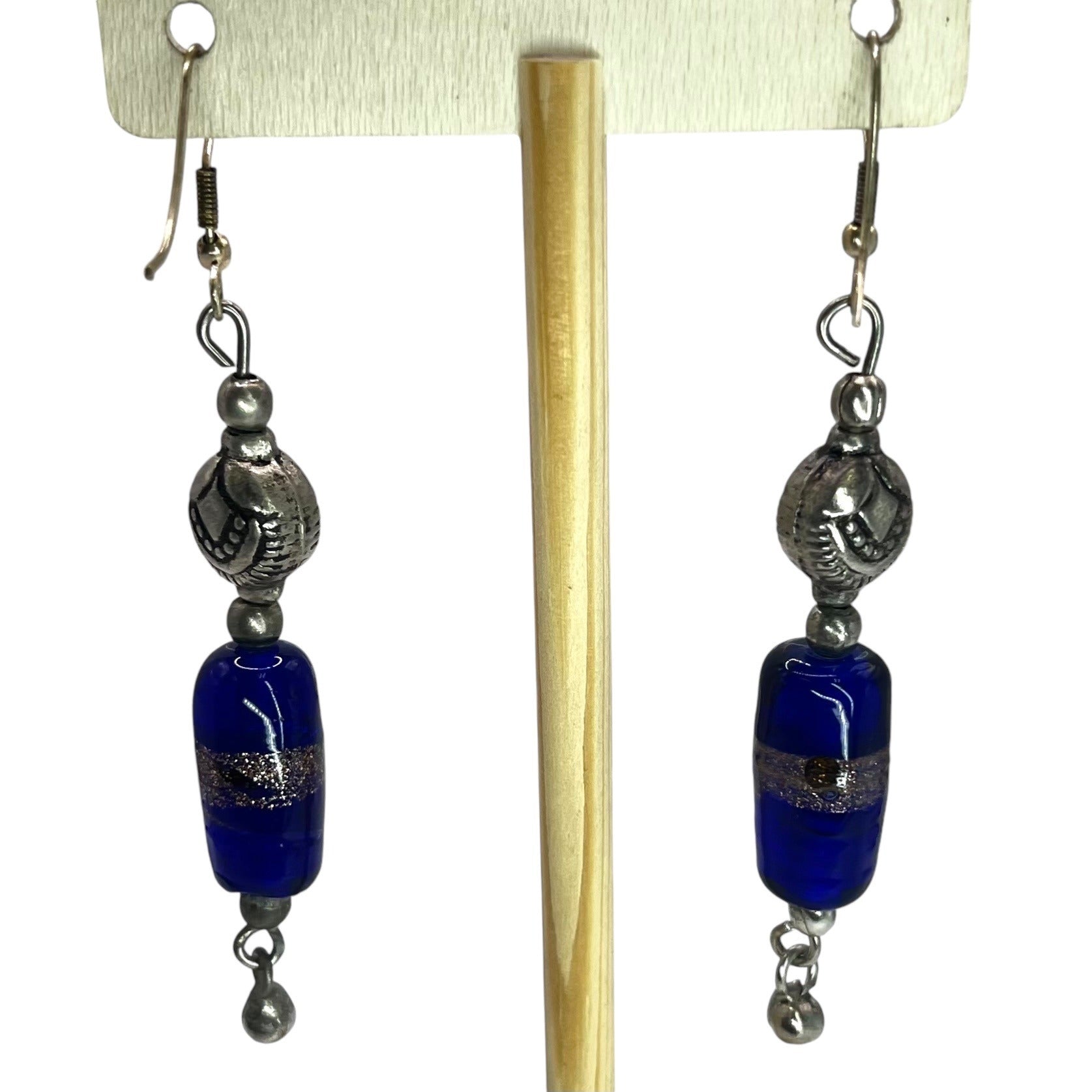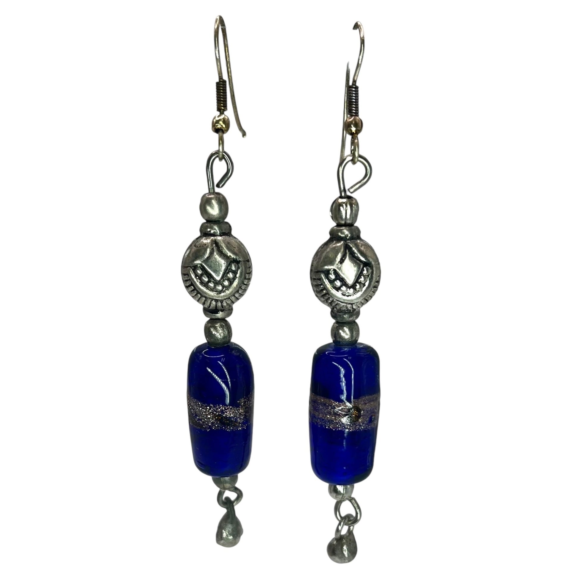 925 Sterling Silver Beaded Dangle Drop Womens Earrings Blue Sparkle Artisian