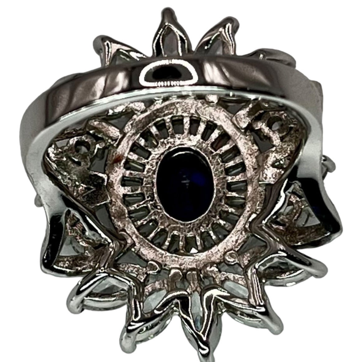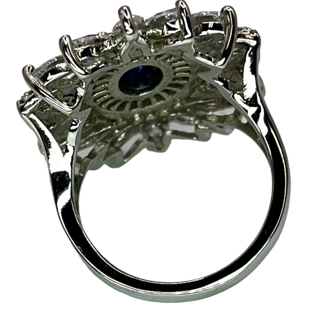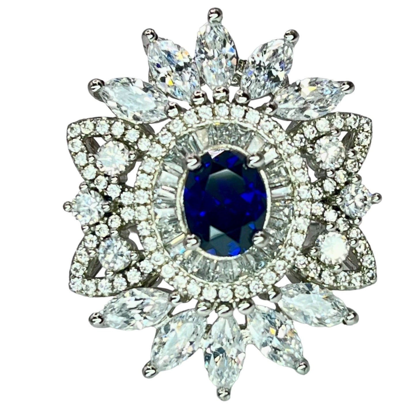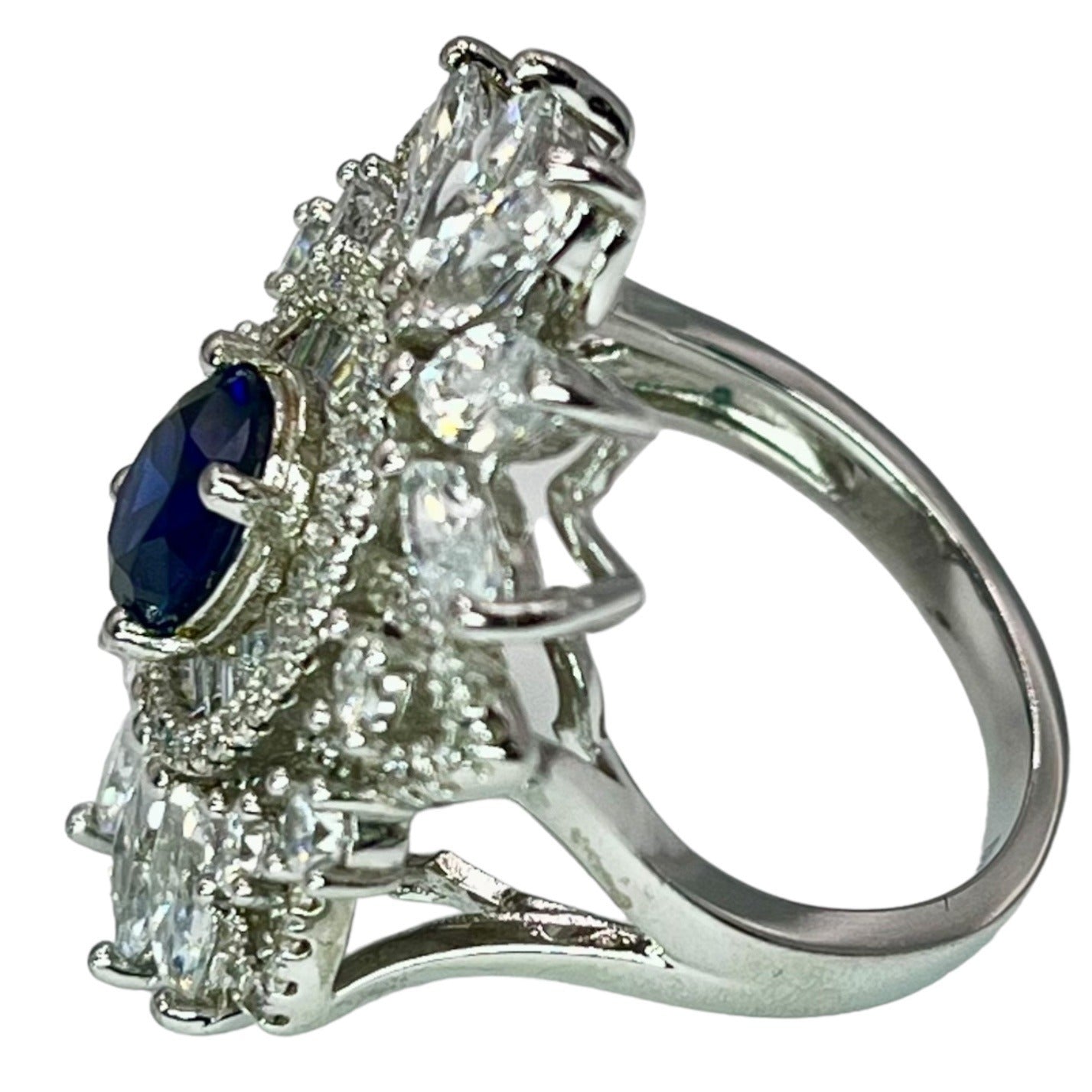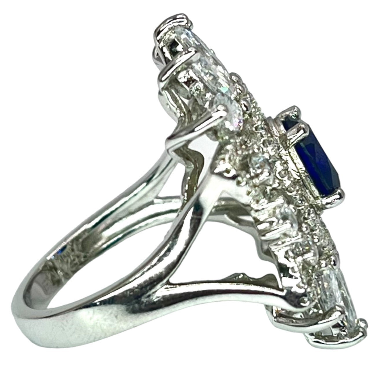 925 Sterling Silver Blue Sapphire CZ Size 7.75 Ring Statement Cocktail Art Deco
