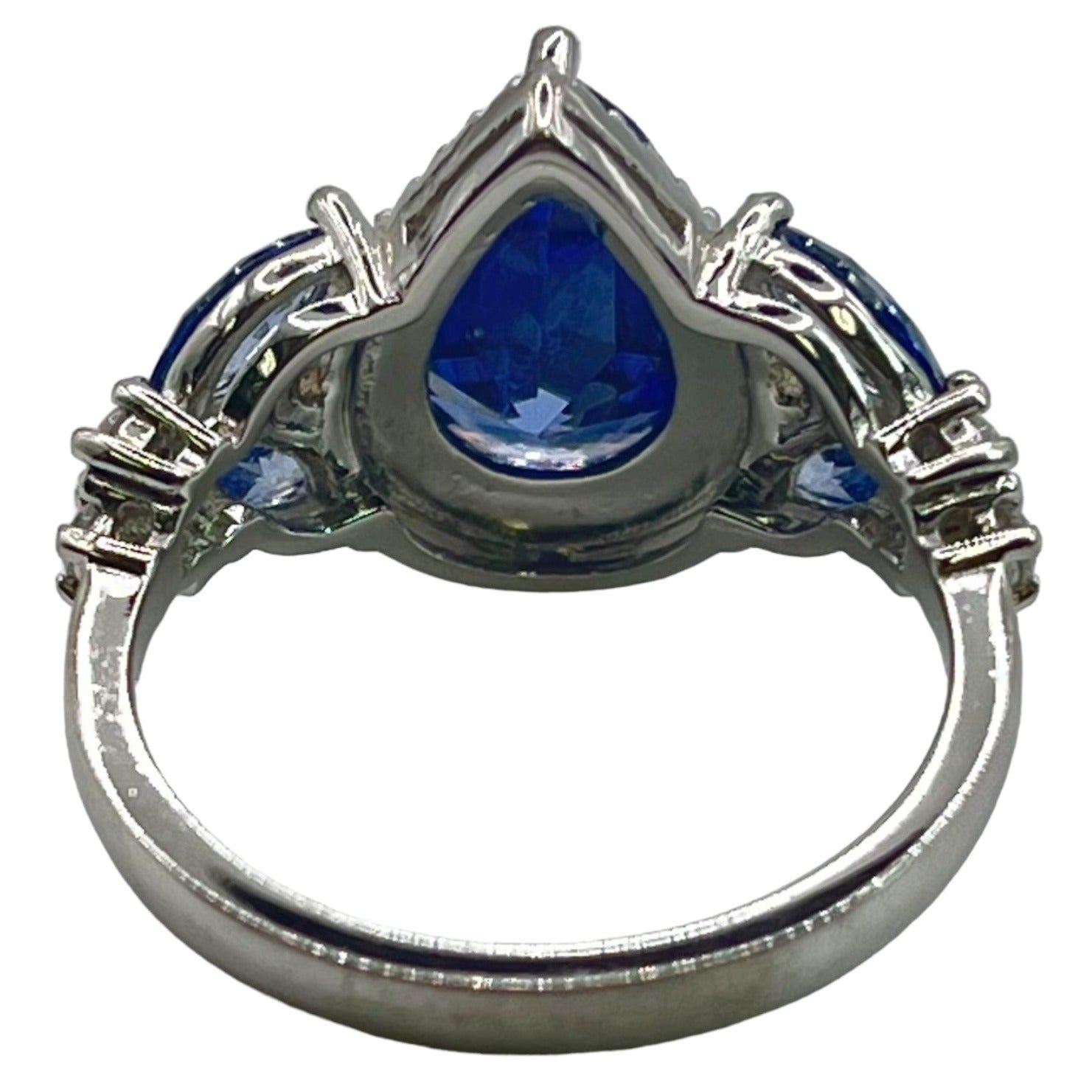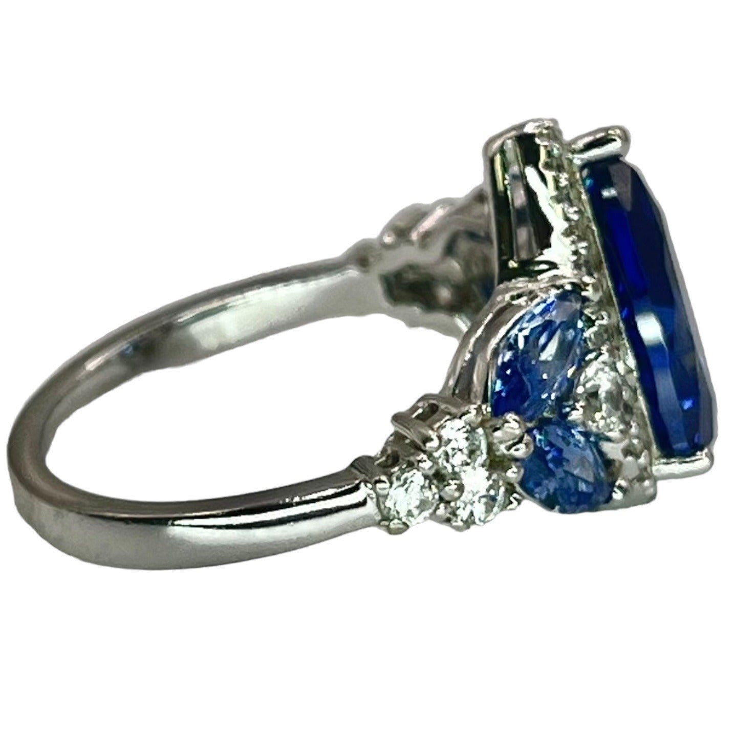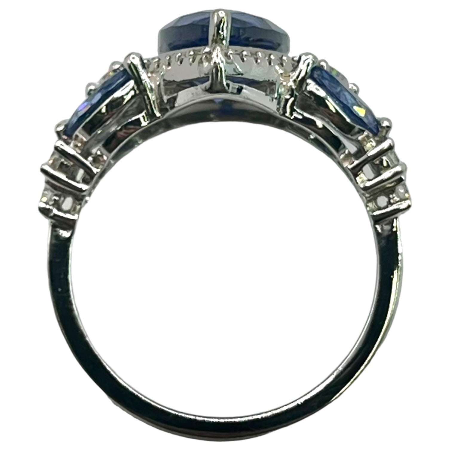 925 Sterling Silver Blue Sapphire Pear Cut CZ Halo Ring Size 7.75 Cocktail