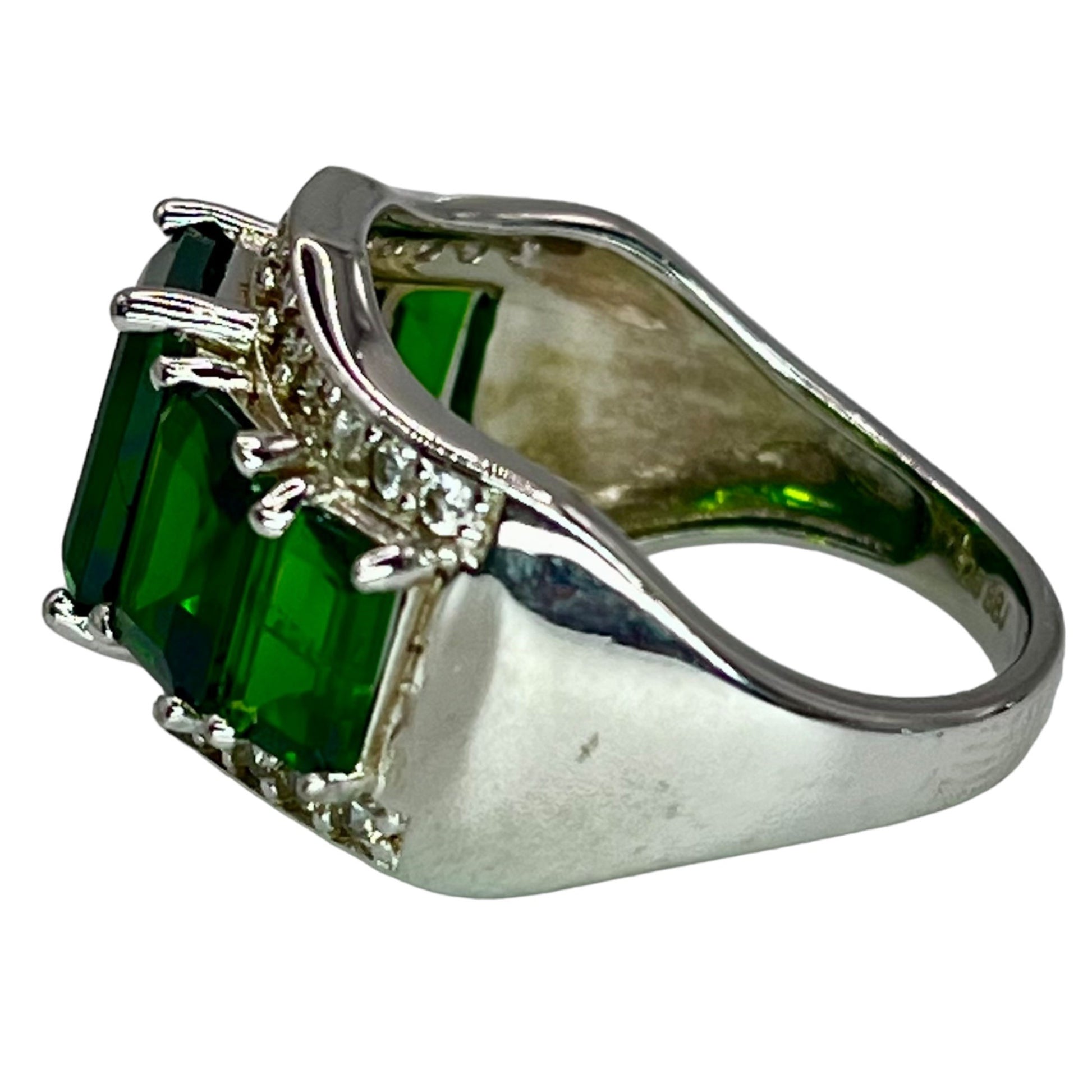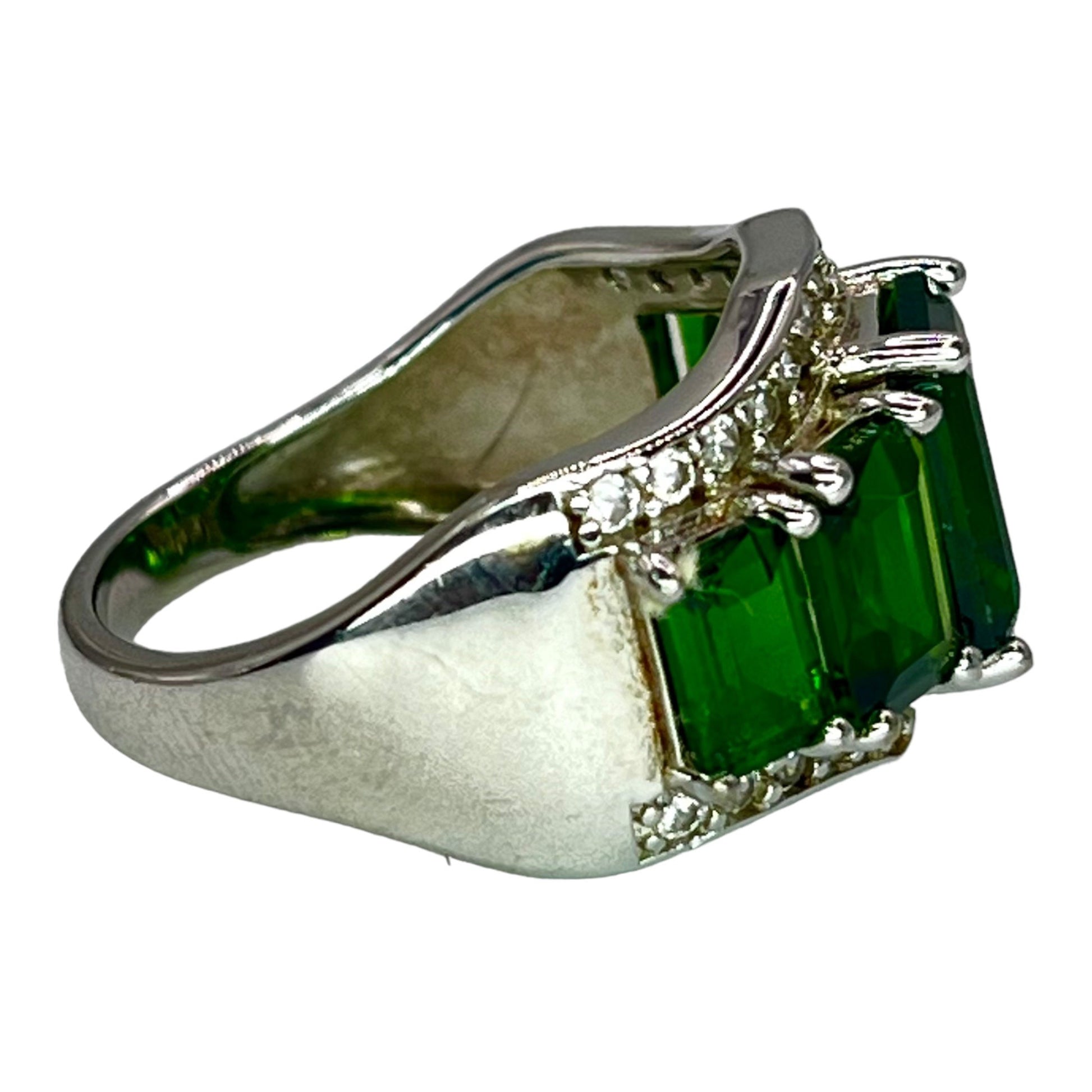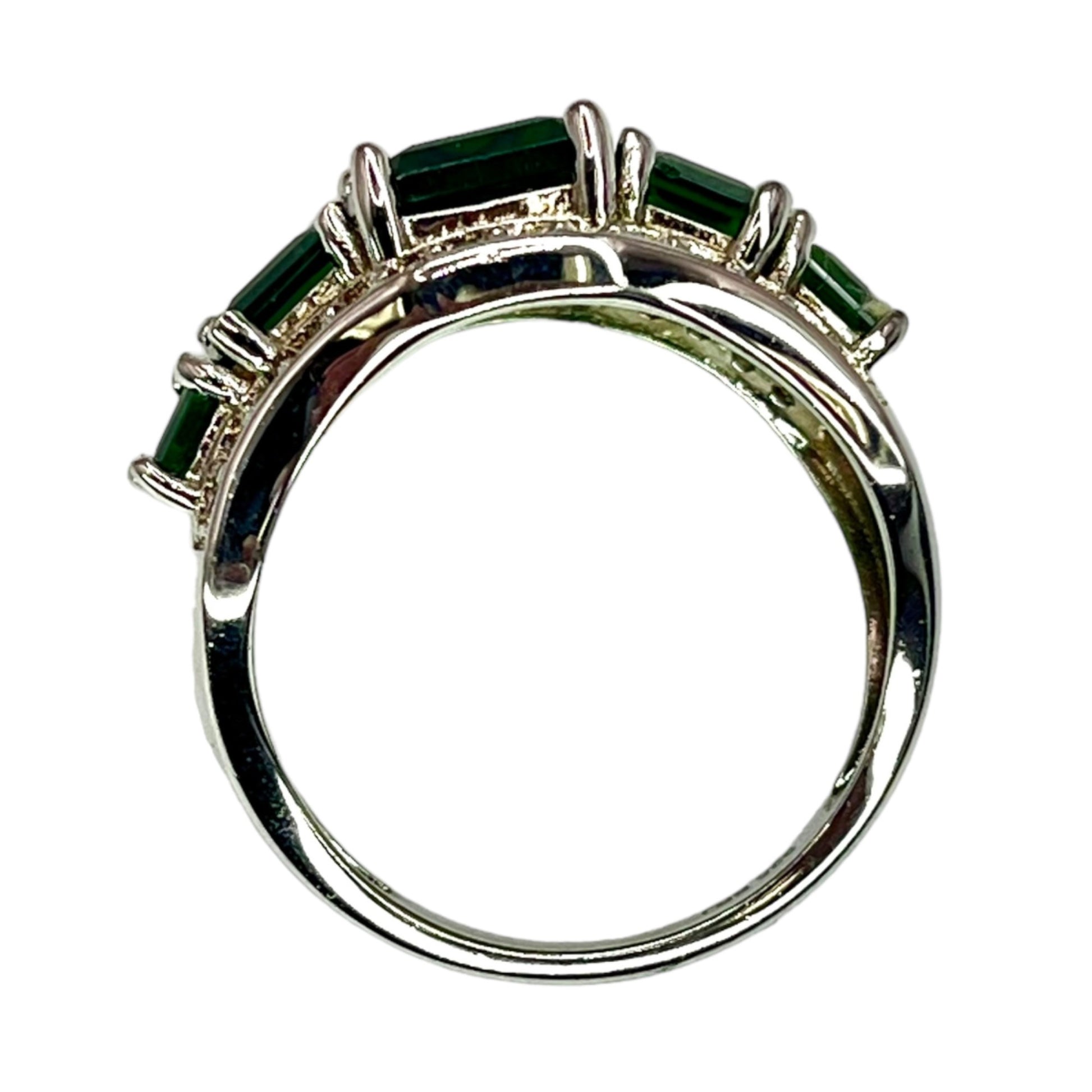 925 Sterling Silver Chrome Diopside CZ Accent Cocktail Ring Size 7.75 Colorful