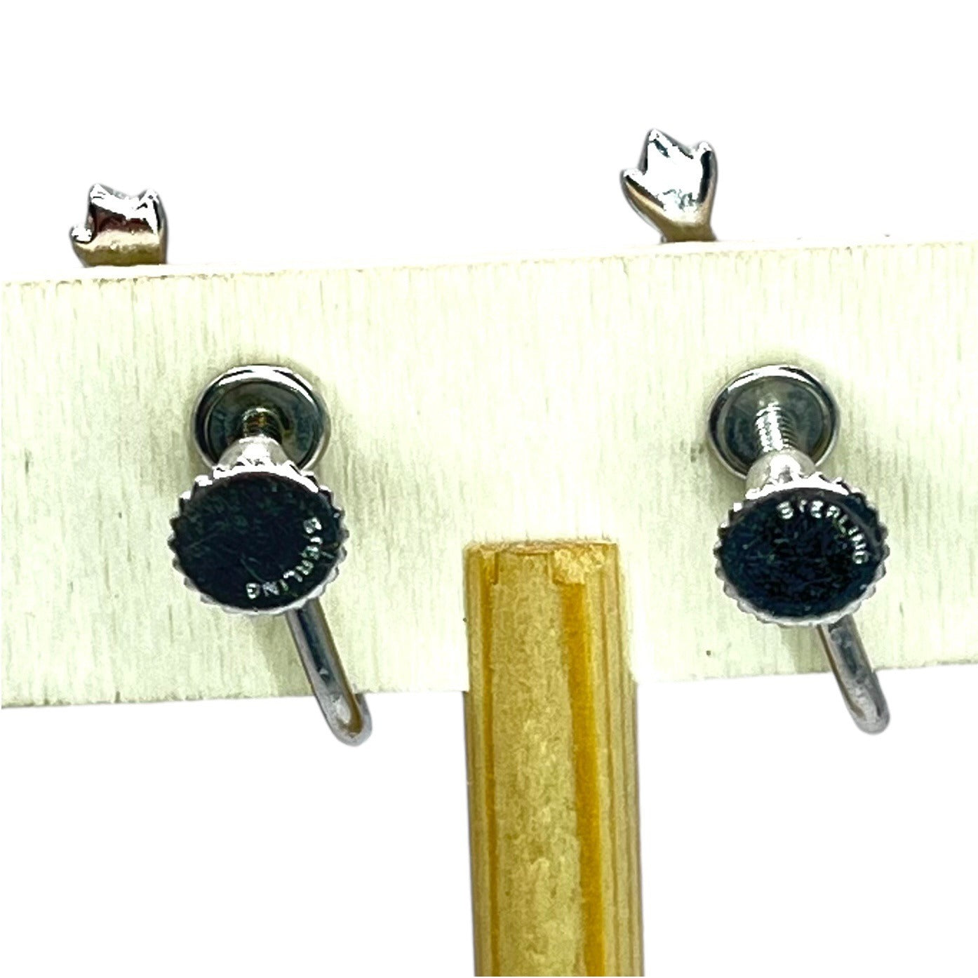 925 Sterling Silver Crown Screw Back Marcasite Earrings Royal Regal Royality