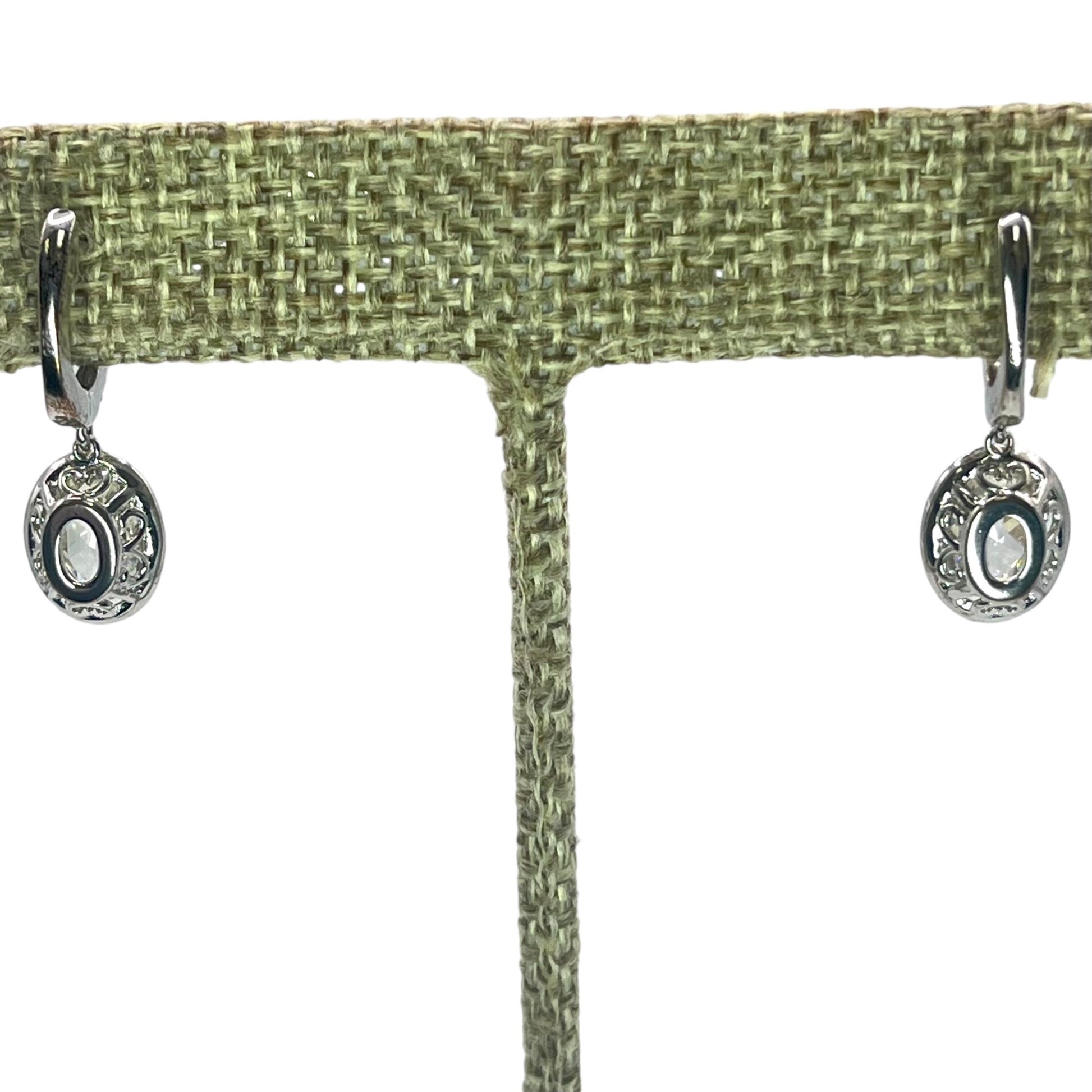 925 Sterling Silver Cubic Zirconia Dangle Hoop Earrings Oval Minimalist Classic