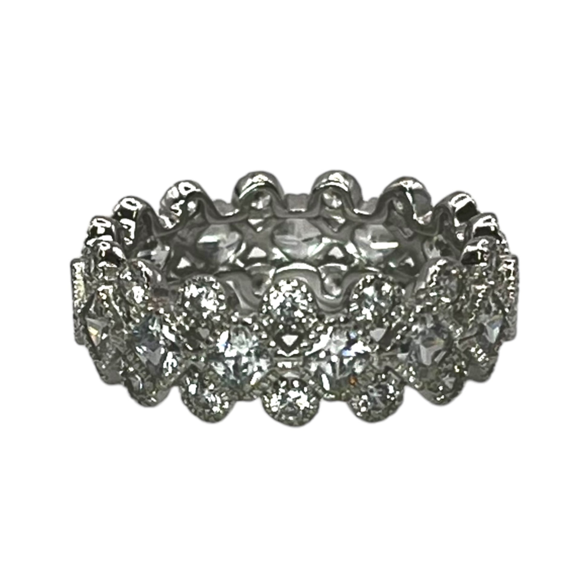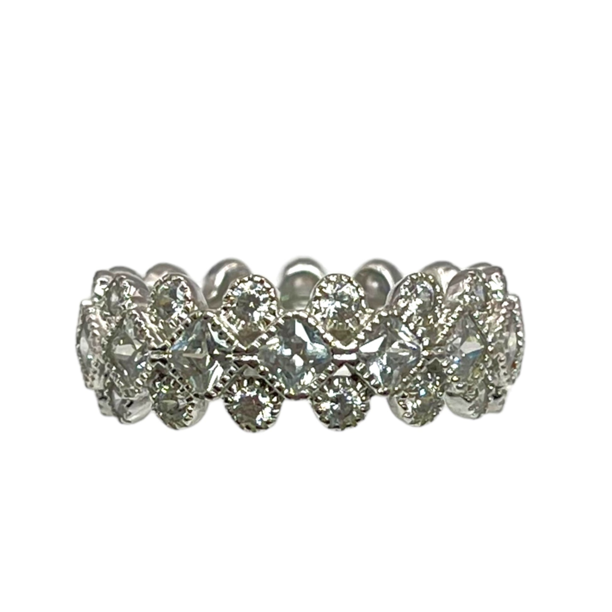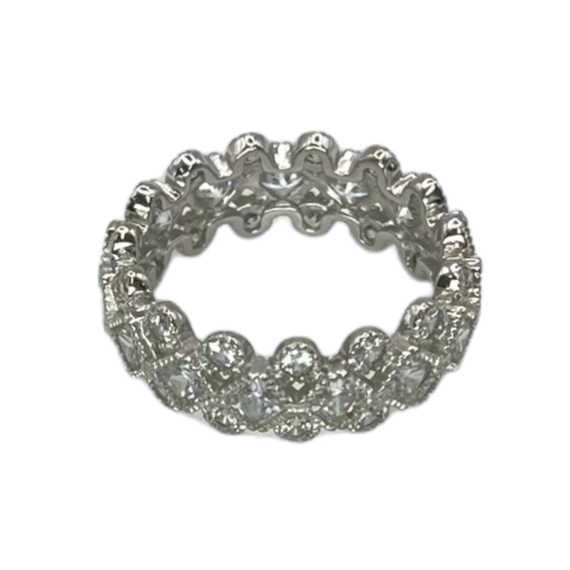 925 Sterling Silver Cubic Zirconia Rhodium Sz 8 Ring Eternity Band Classic