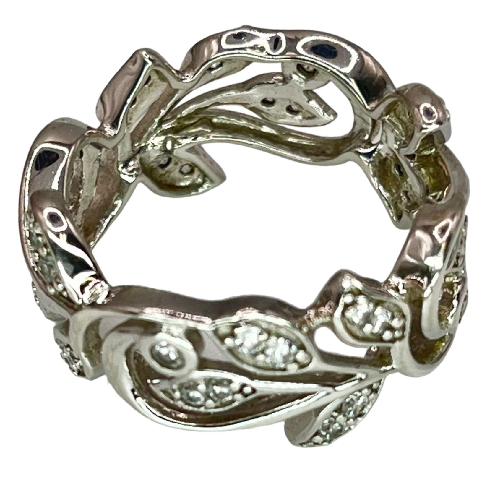925 Sterling Silver CZ Accent Vine Floral Eternity Band Size 9.75 Ring Boho Earthy