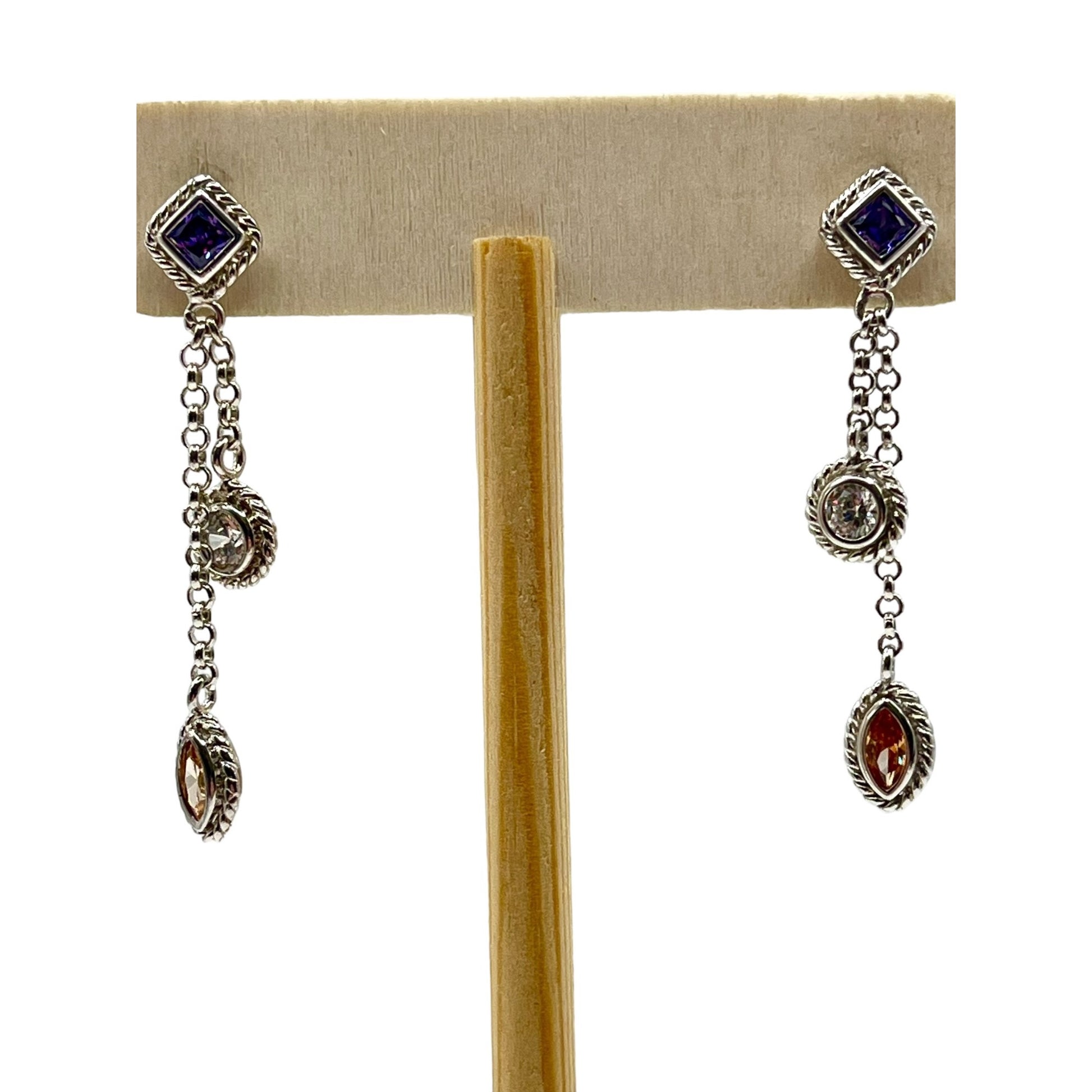 925 Sterling Silver Dangle Drop Tassel Chain Earrings Multicolored Colorful