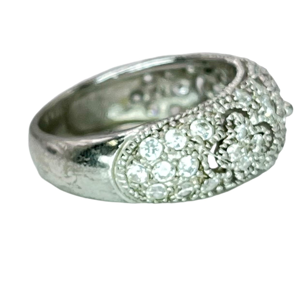 925 Sterling Silver Flower Filigree Cubic Zirconia Ring Size 6.25 Band Floral