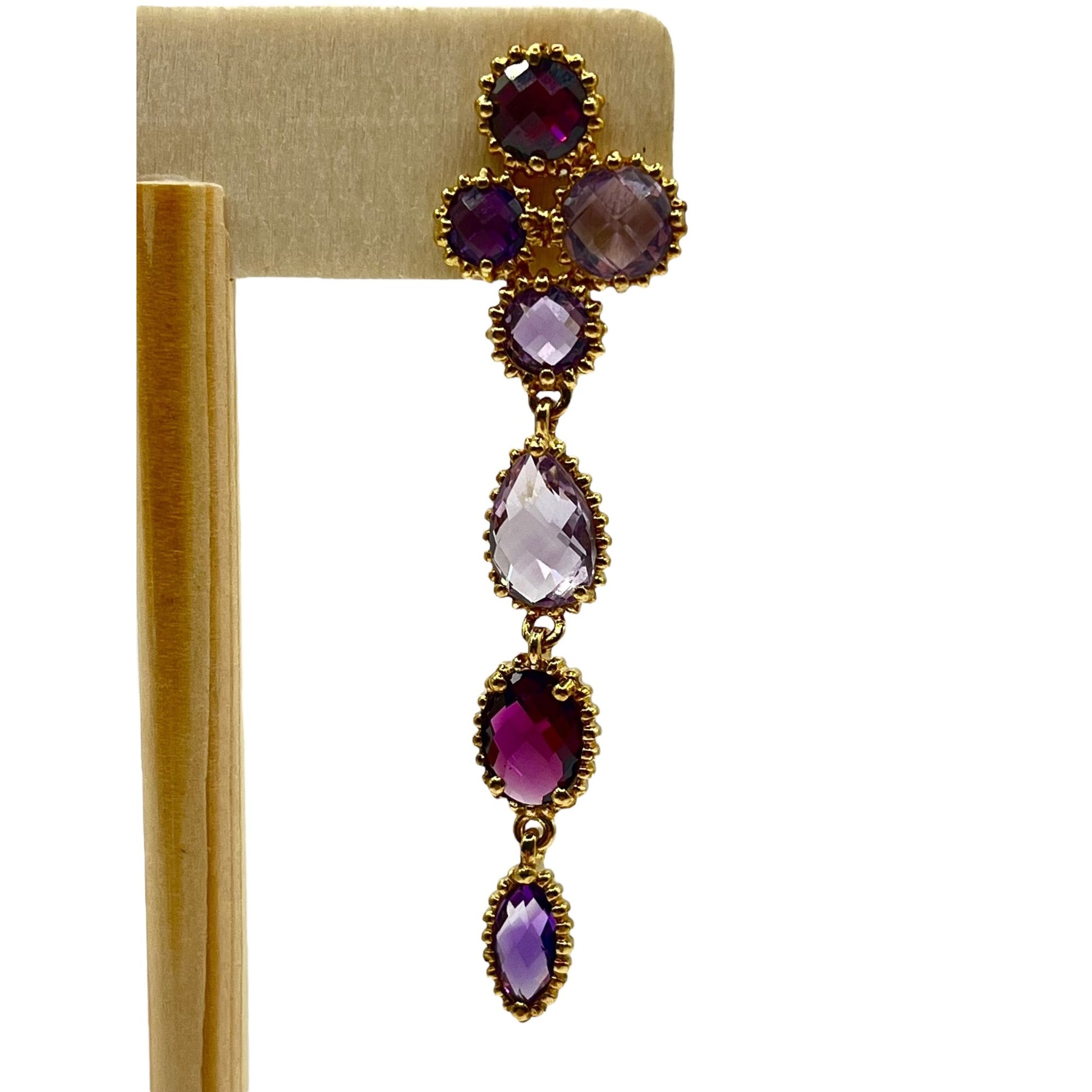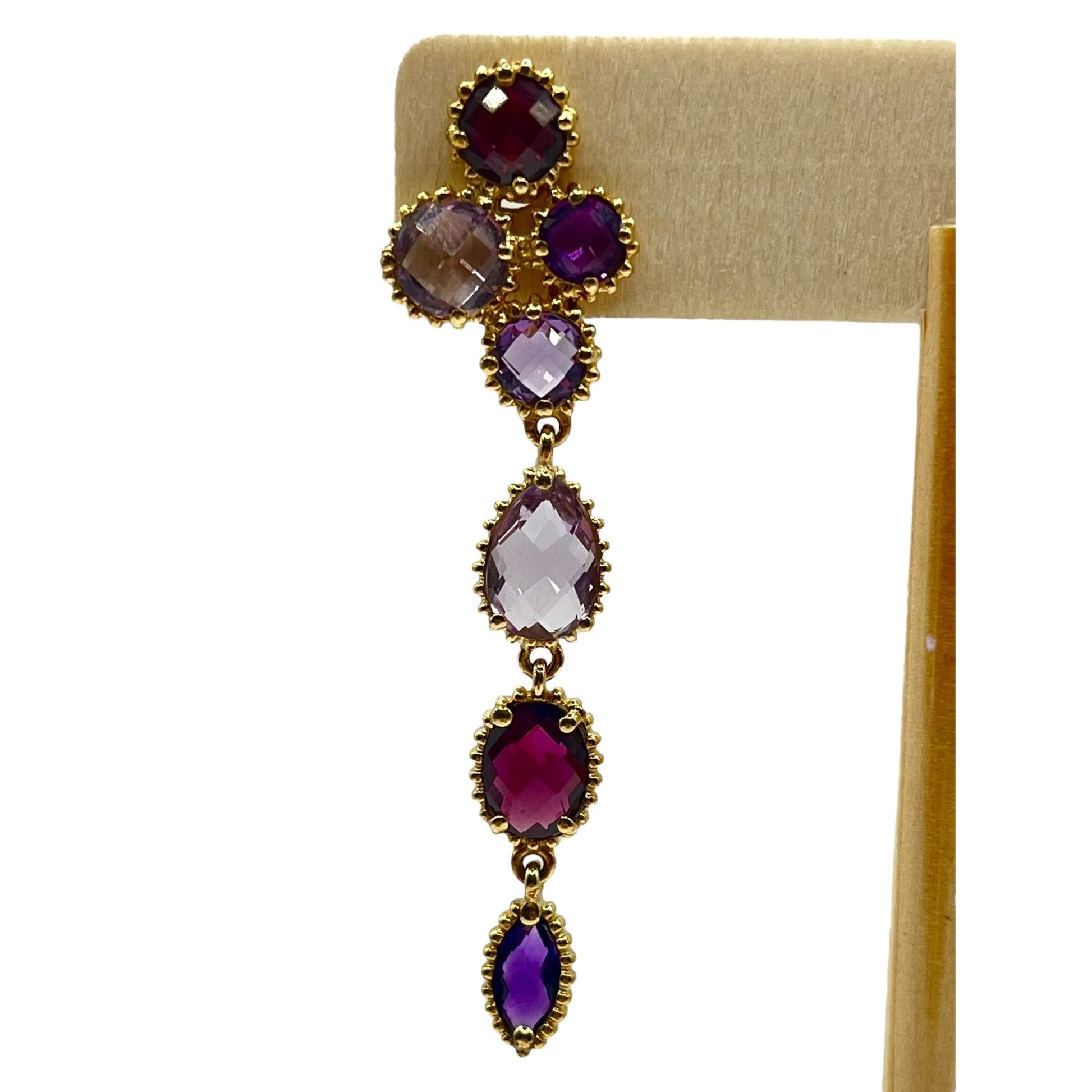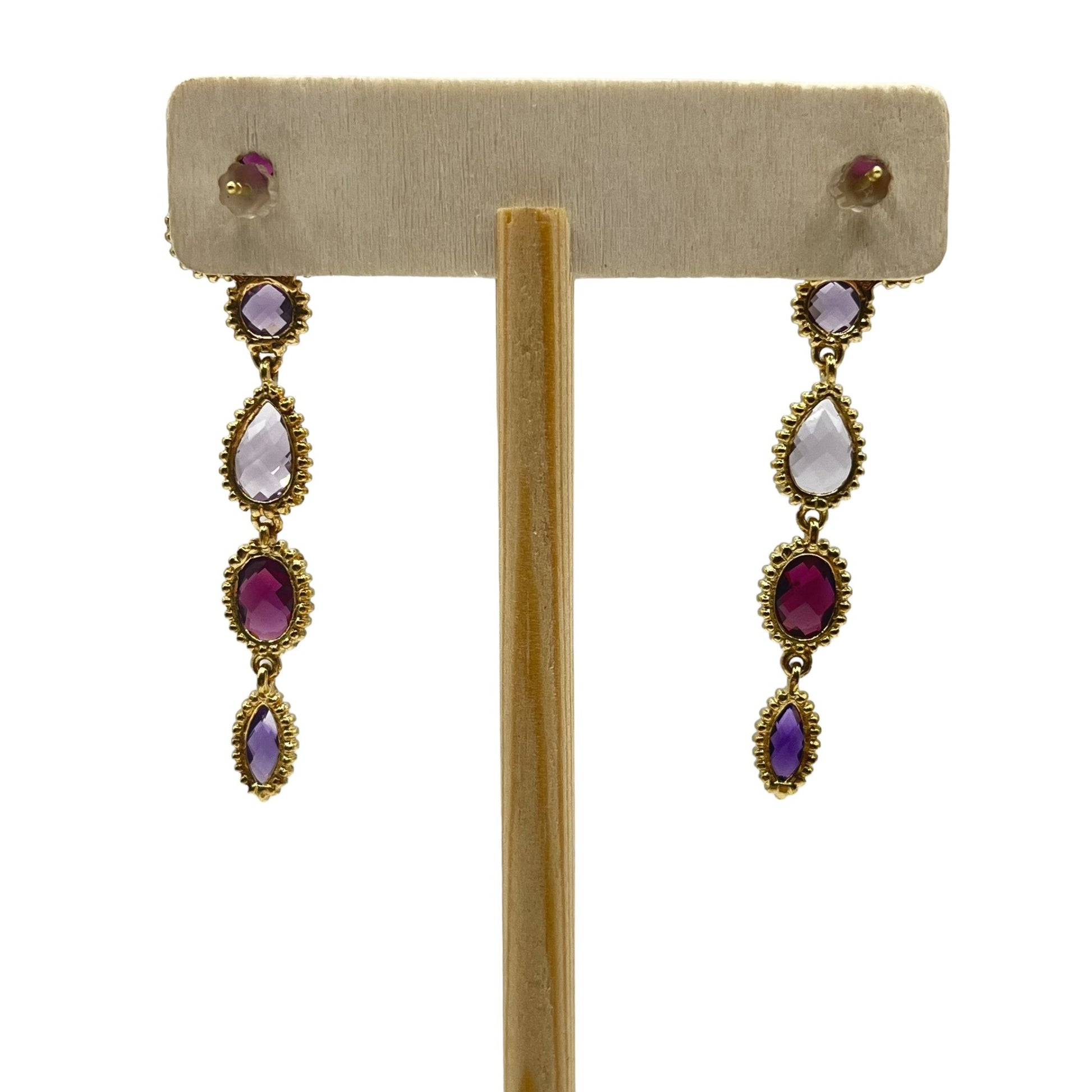 925 Sterling Silver Gold Layered Dangle Drop Earrings Mixed Cut Crystals Purple
