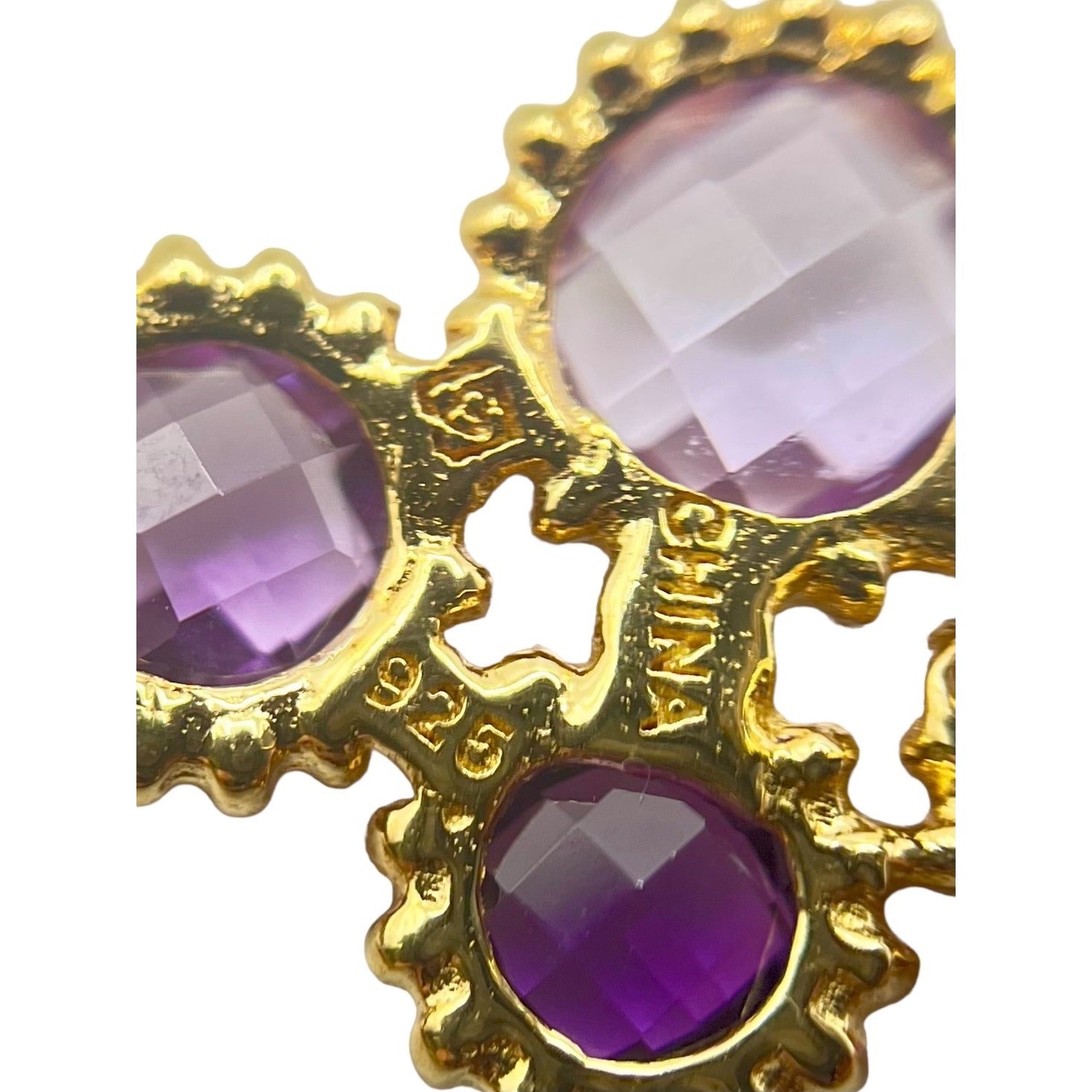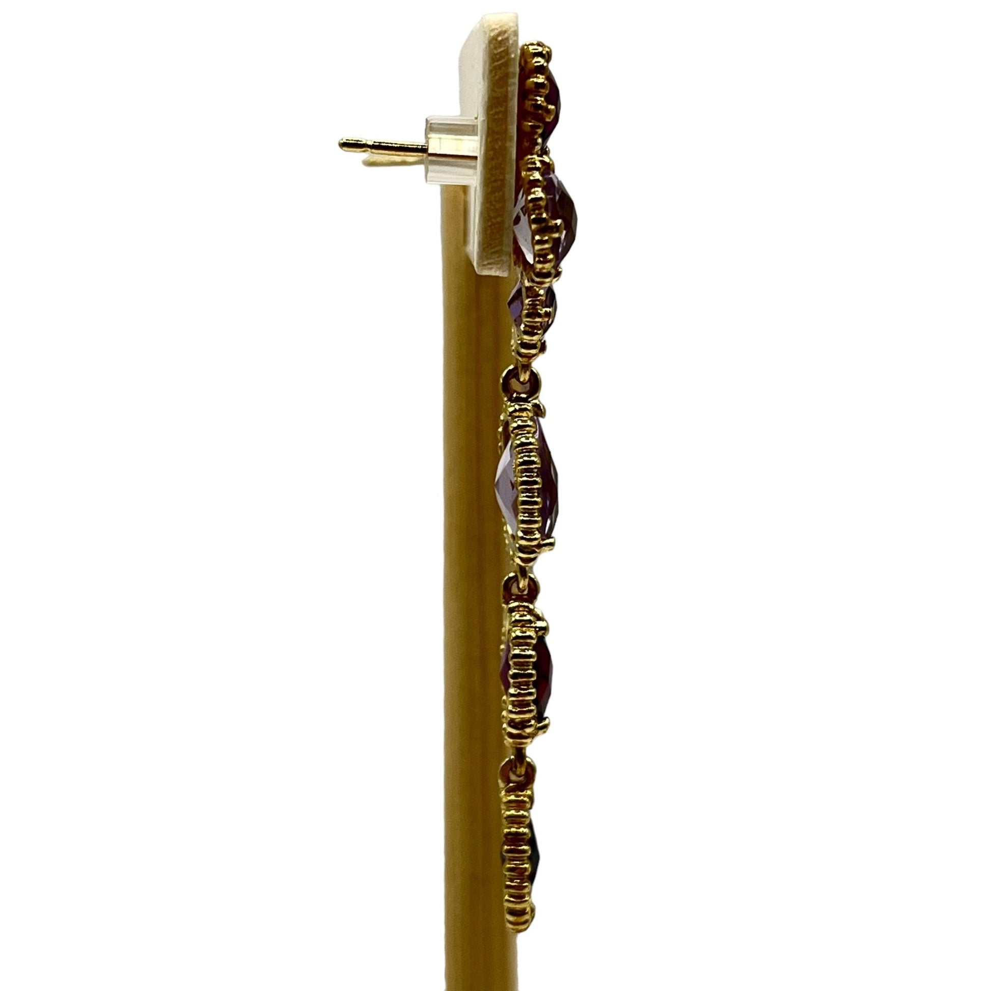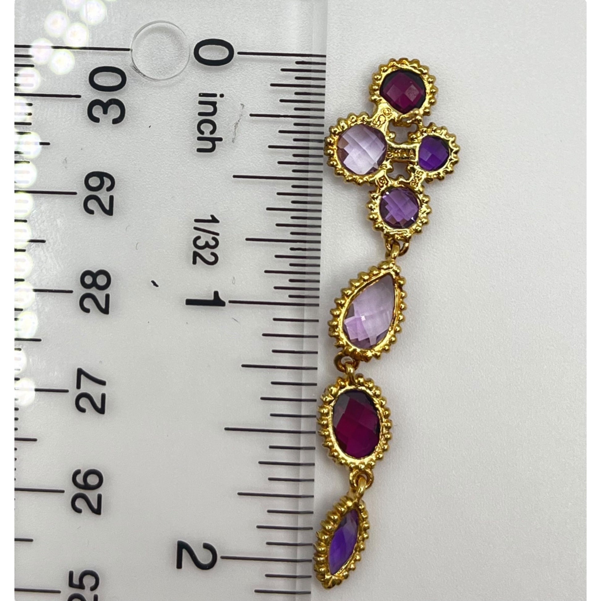925 Sterling Silver Gold Layered Dangle Drop Earrings Mixed Cut Crystals Purple