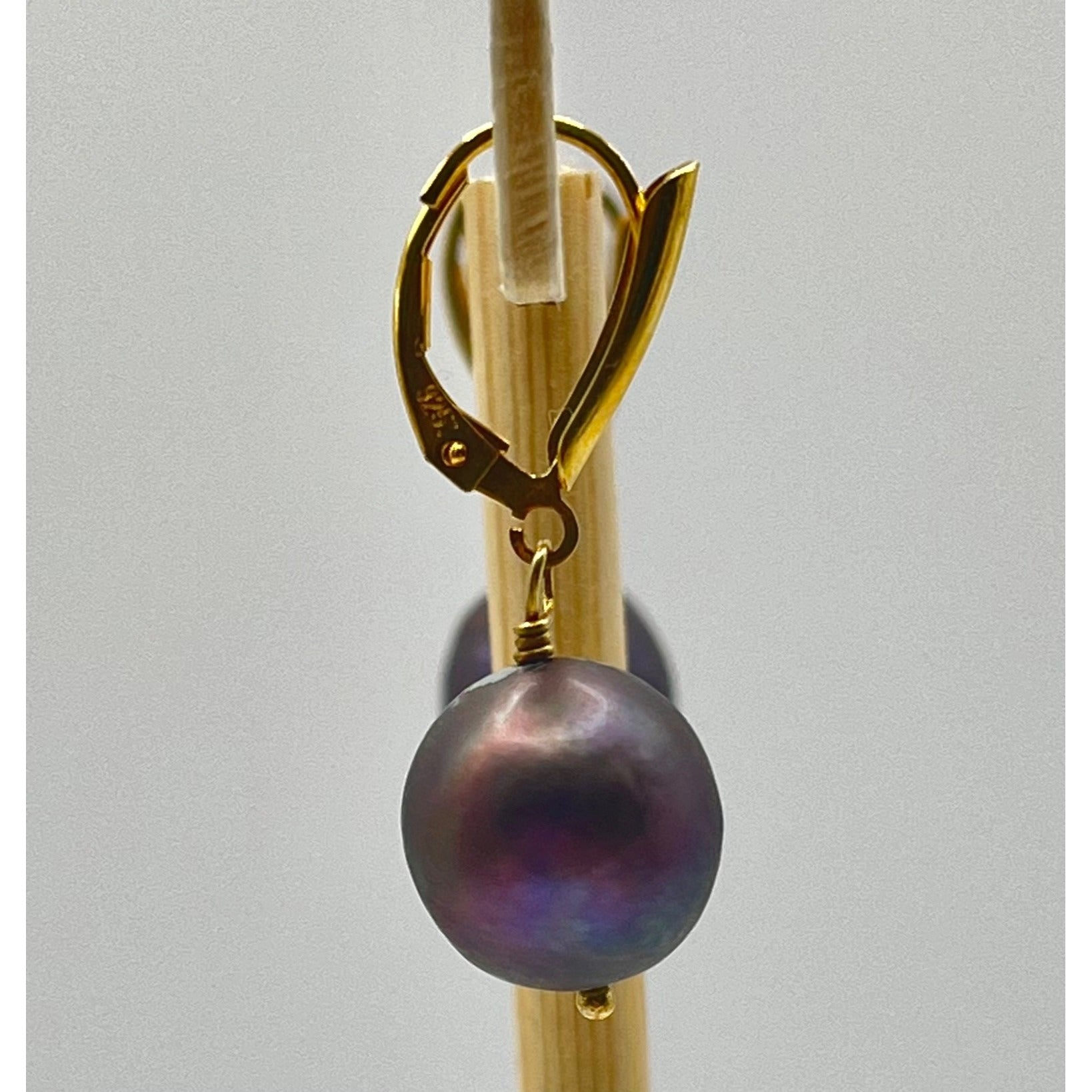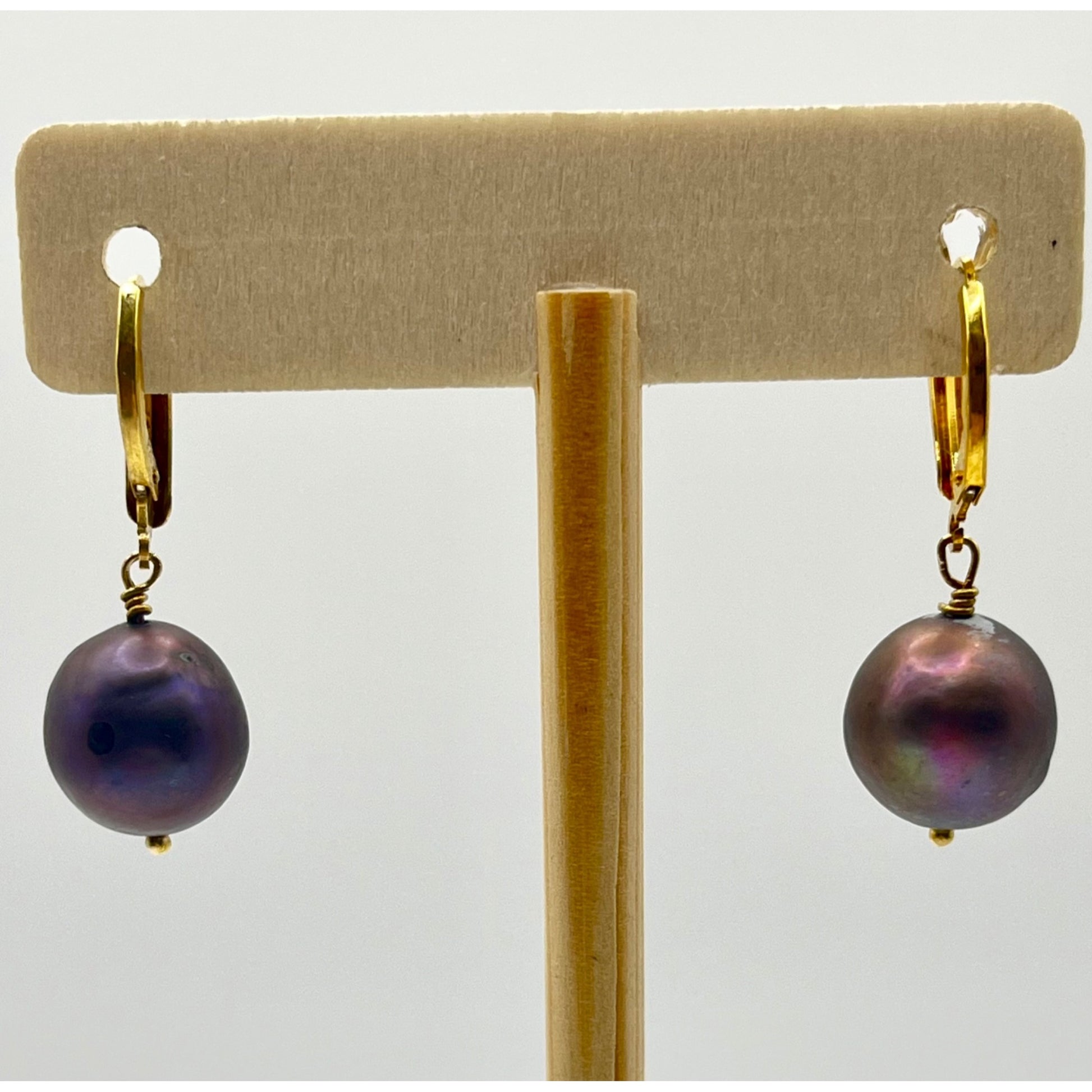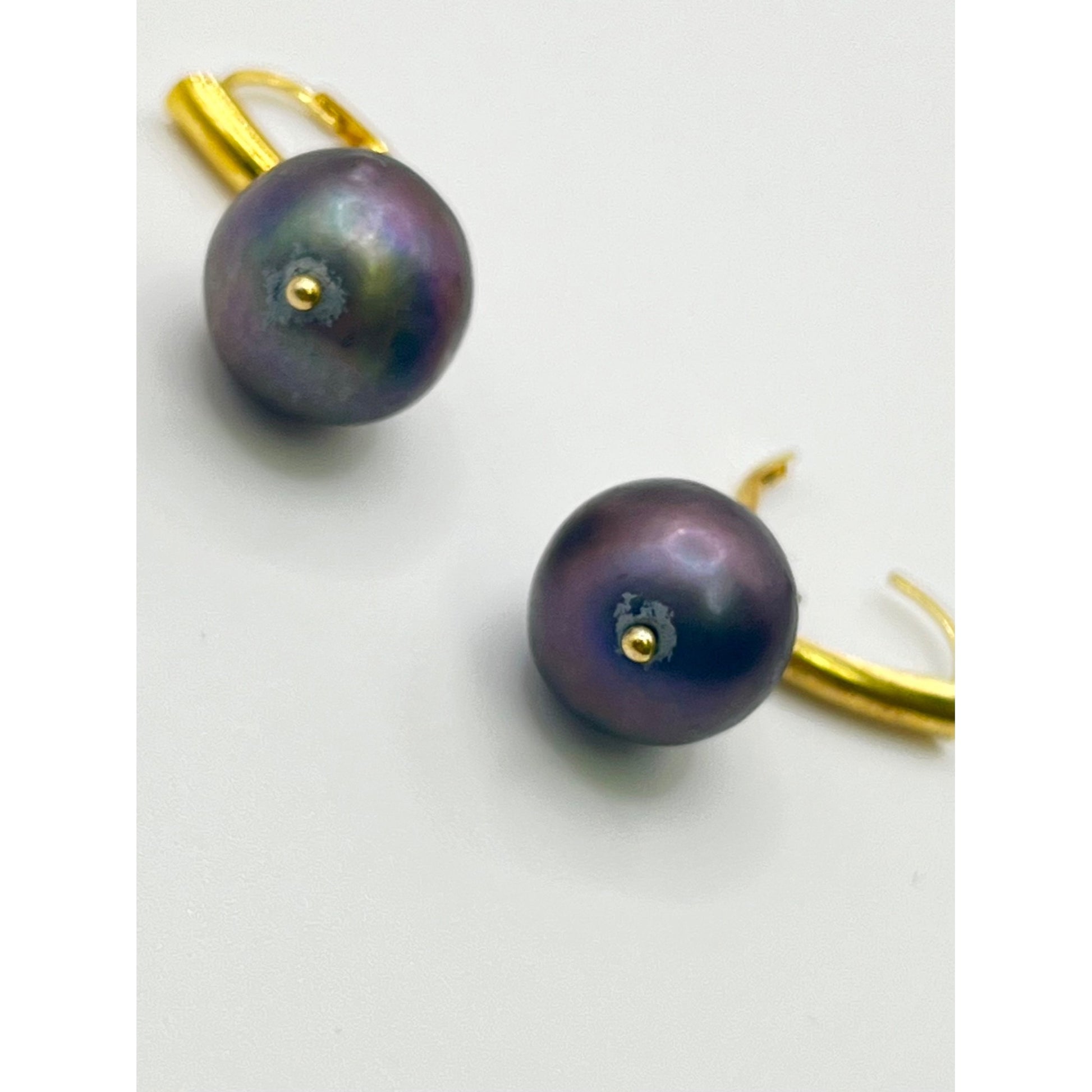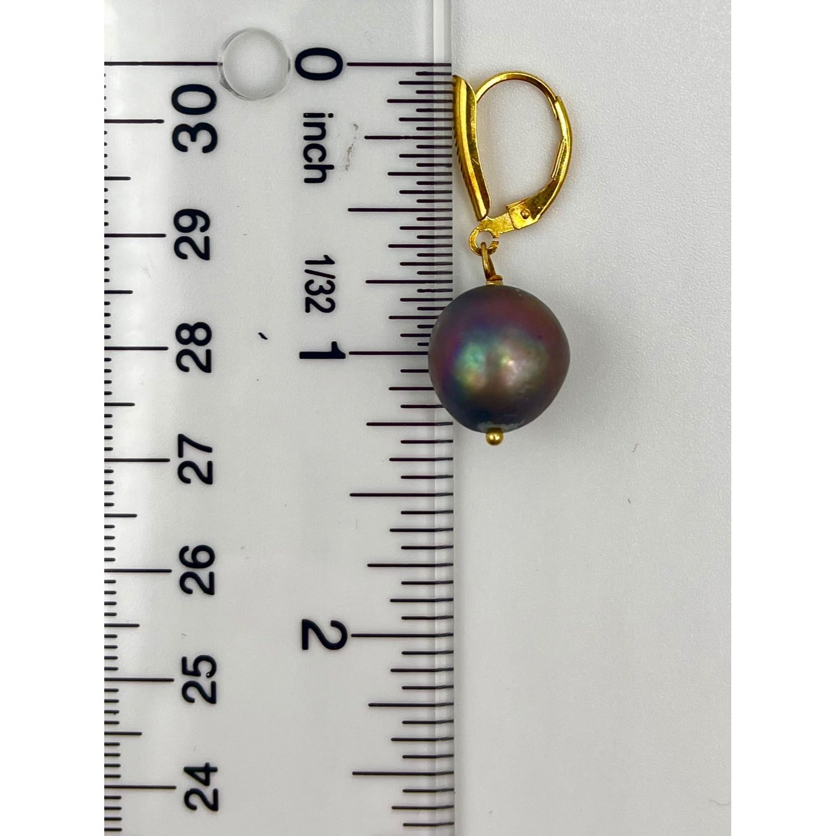 925 Sterling Silver Gold Layered Faux Peacock Pearl Dangle Drop Earrings