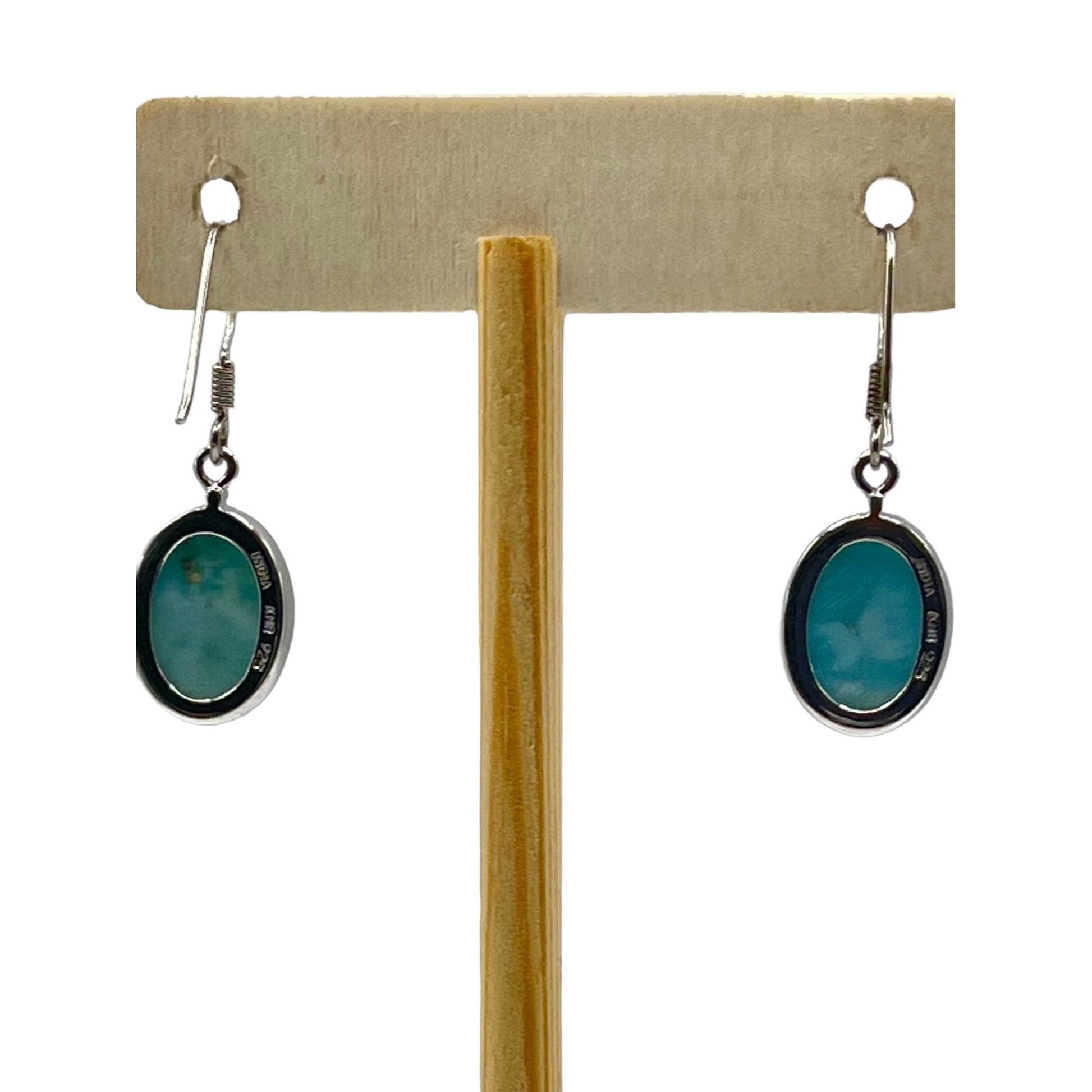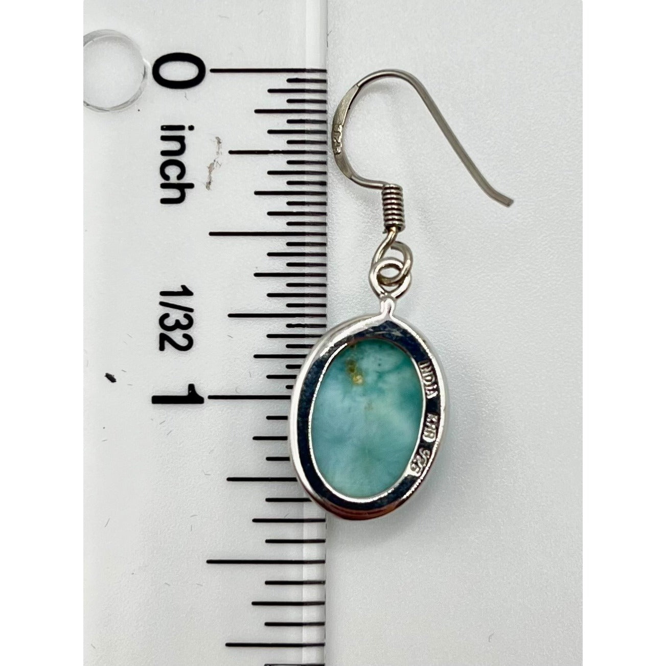 925 Sterling Silver KHR Larimar Oval Cabochon Dangle Drop Earrings Simple Blue