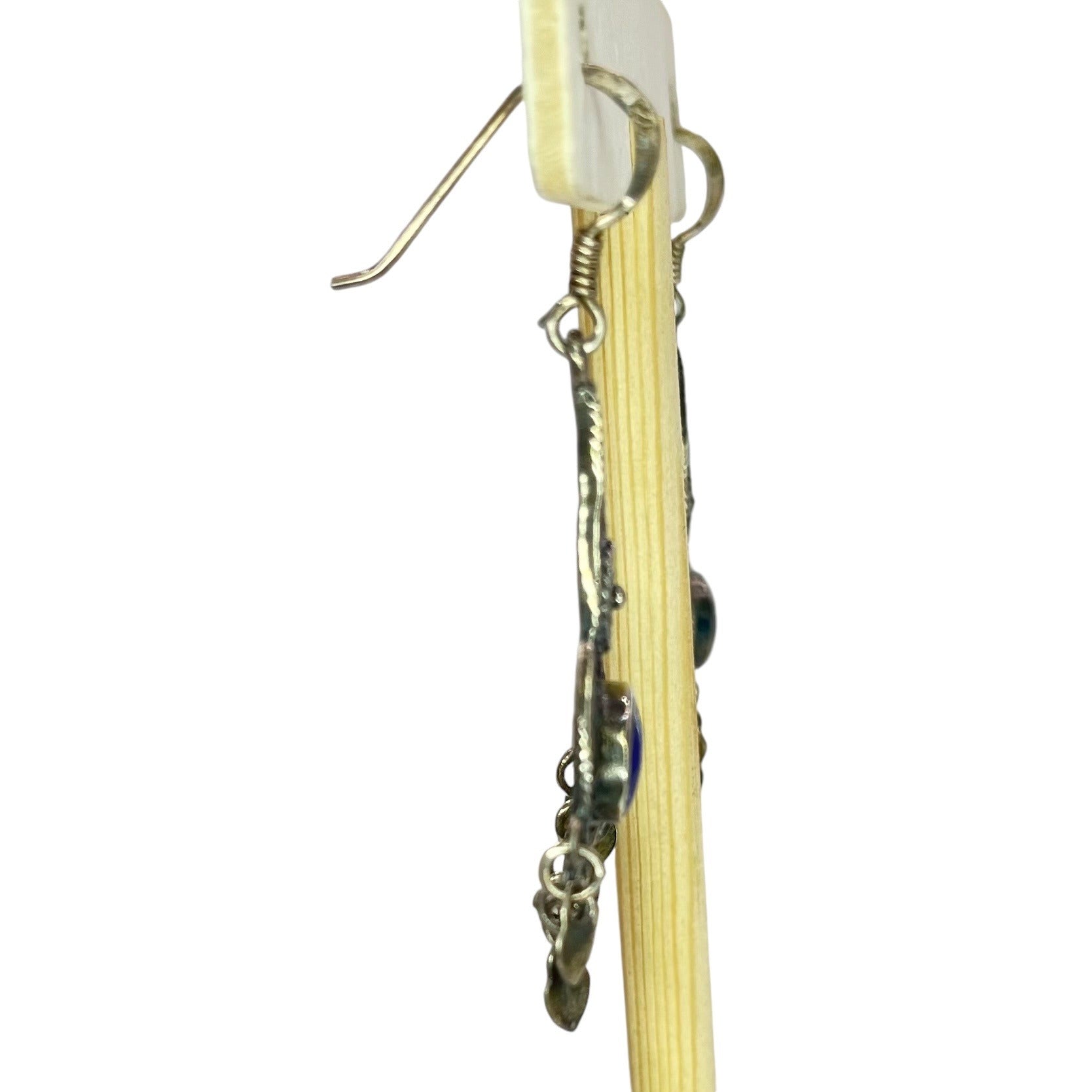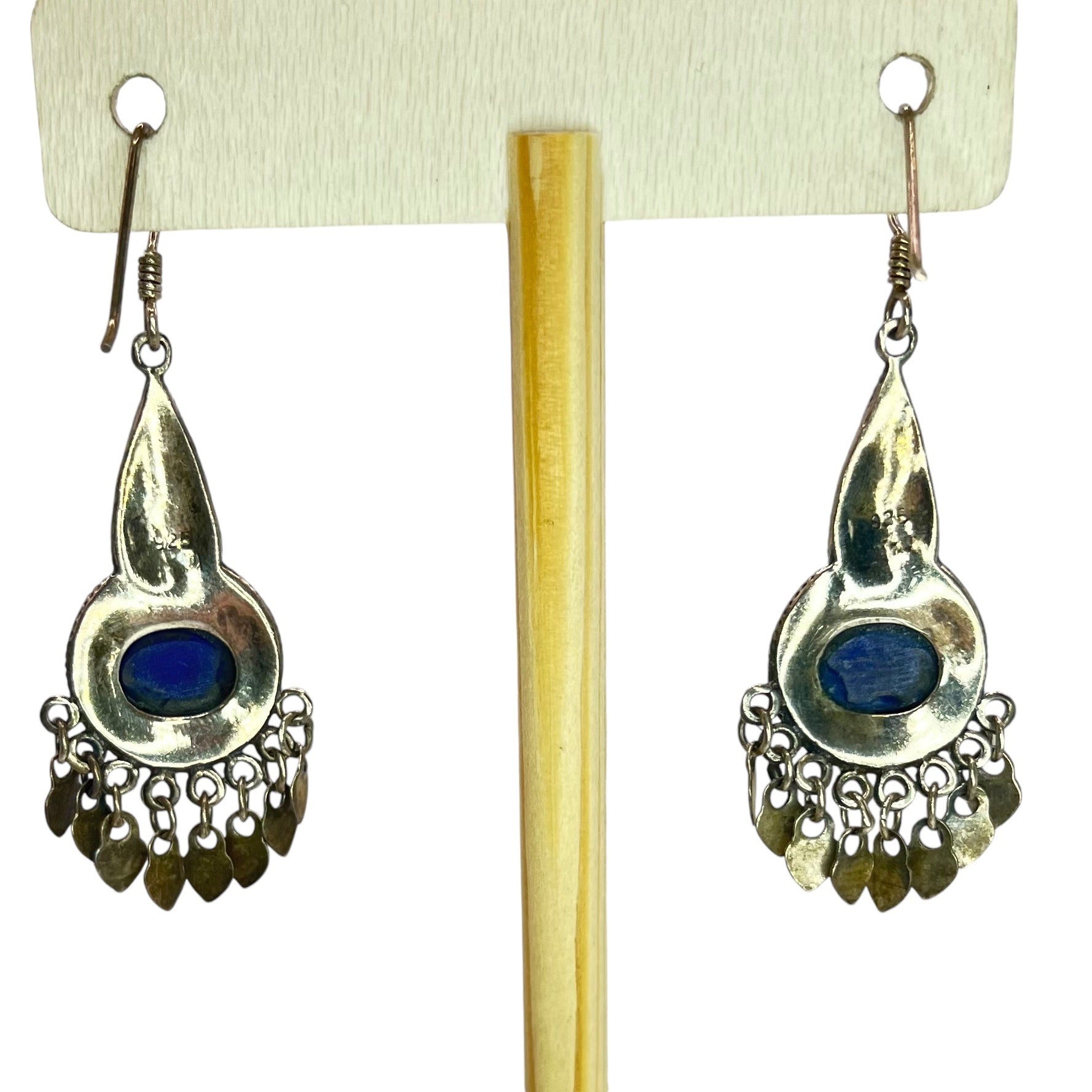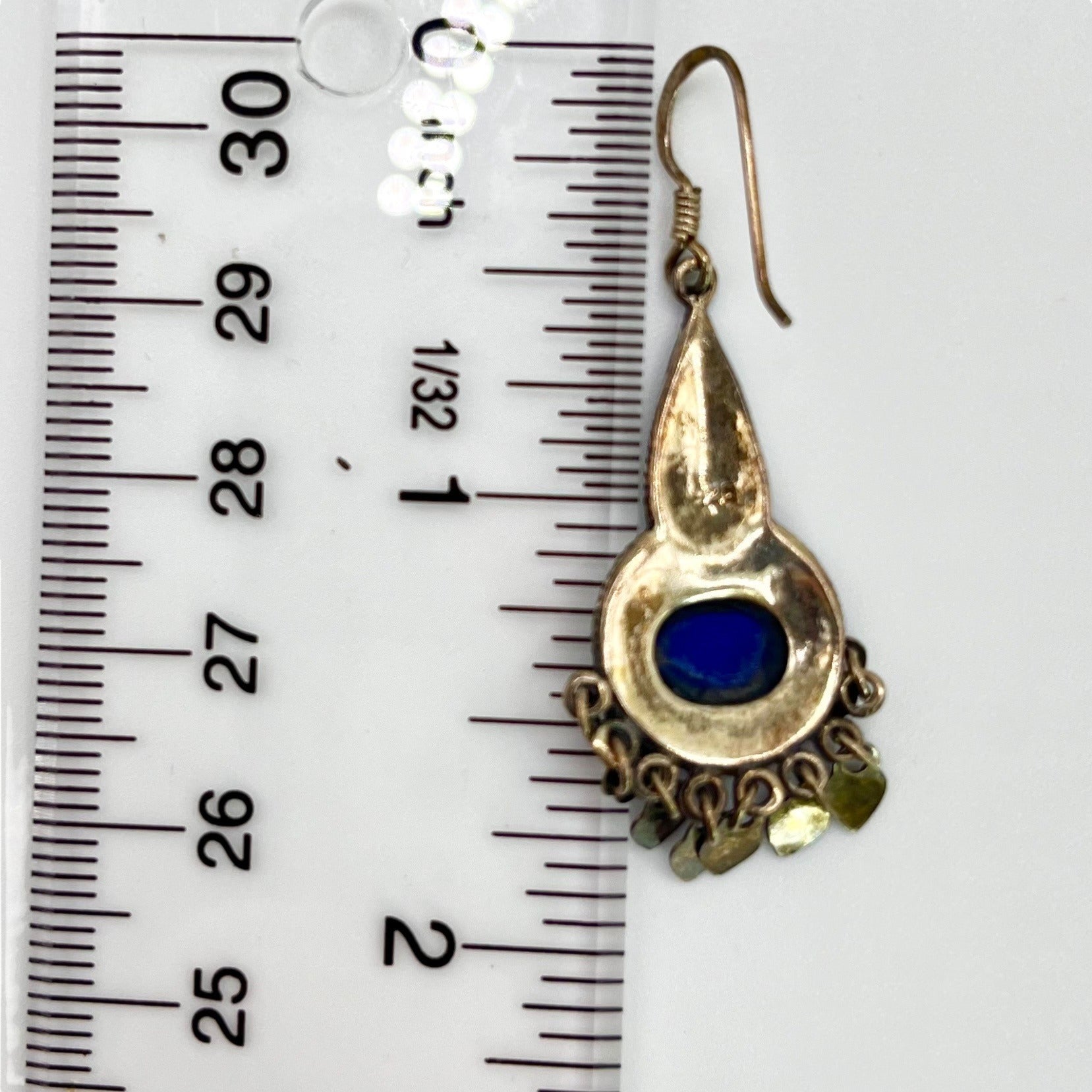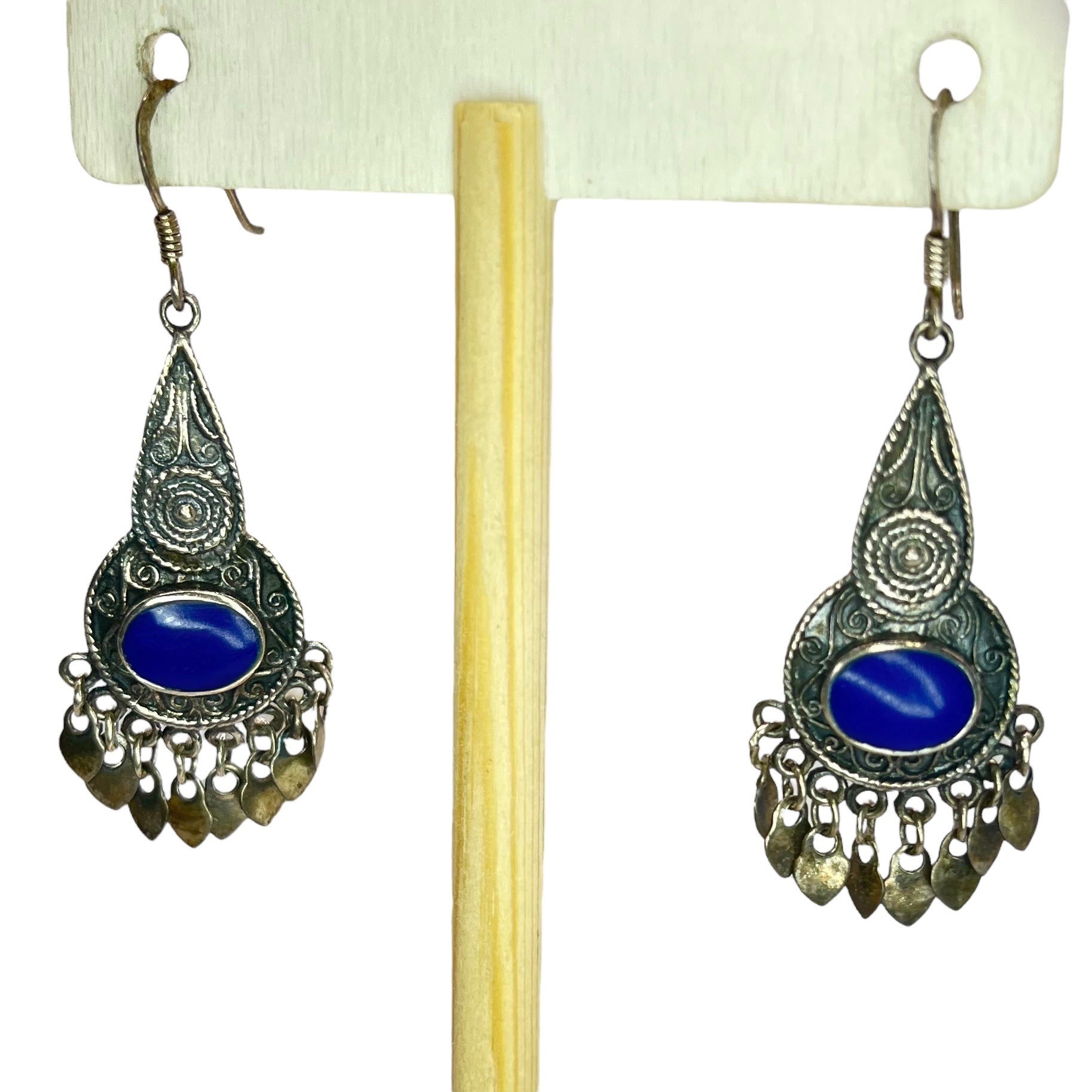 925 Sterling Silver Lapis Lazuli Dangle Drop Earrings Ornate Bali Blue Bohemian