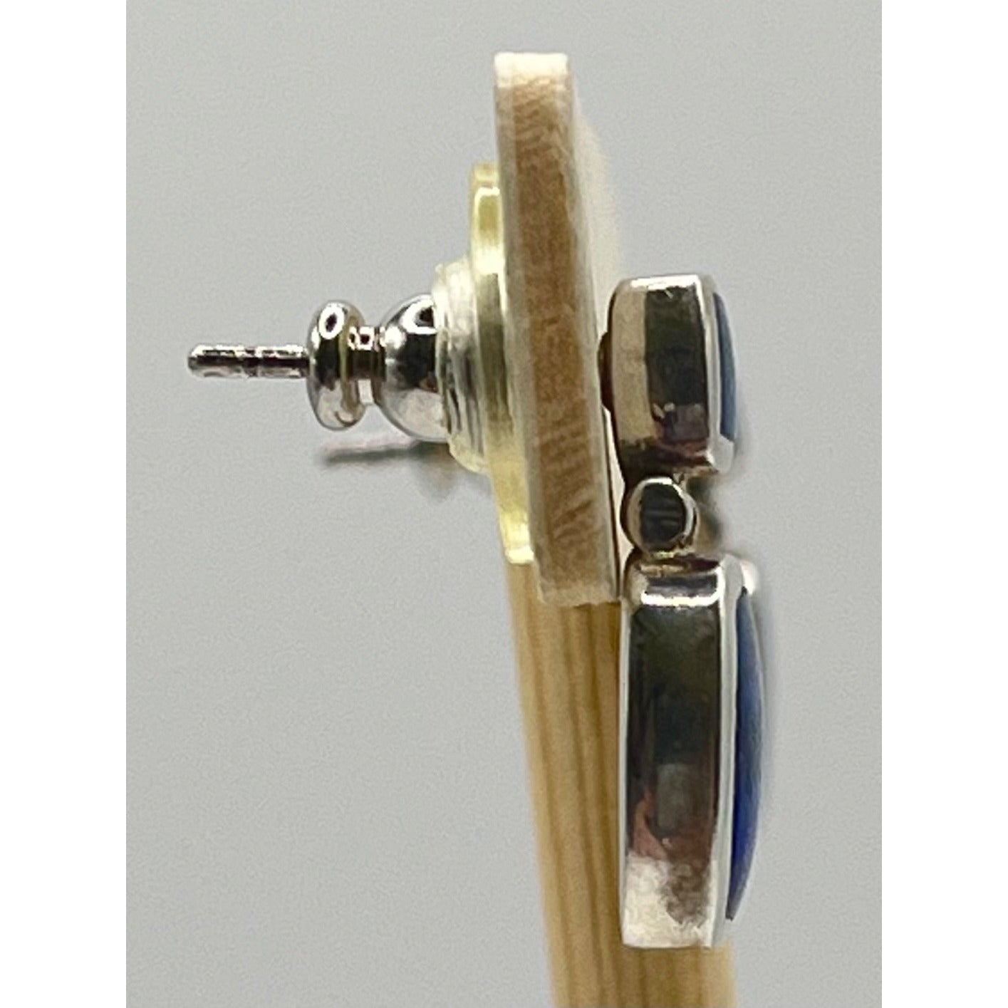 925 Sterling Silver Lapis Lazuli Drop Stud Earrings Blue Statement Southwestern