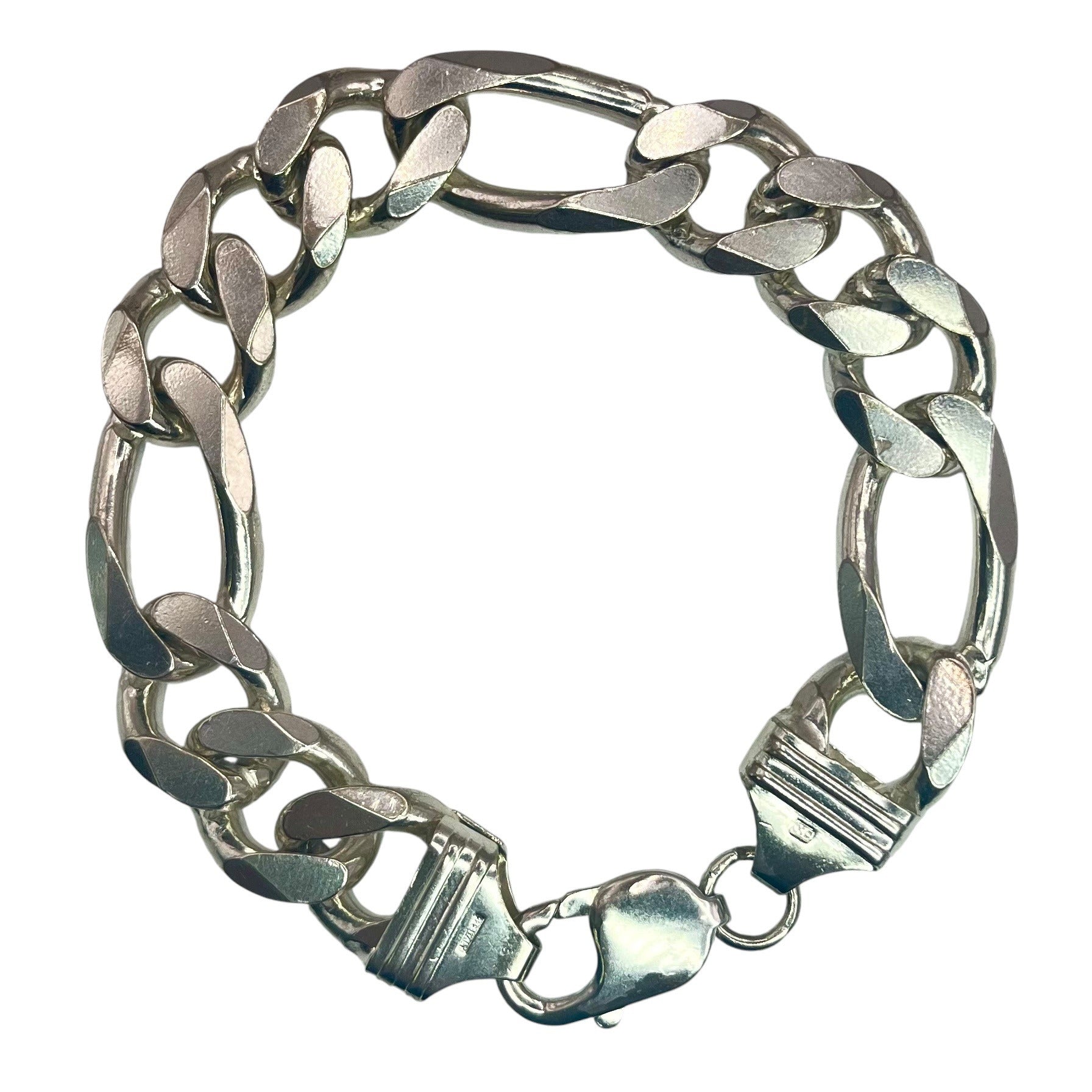 925 Sterling Silver Men's Figaro Chain Bracelet 8 Inch 13mm Classic Chunky