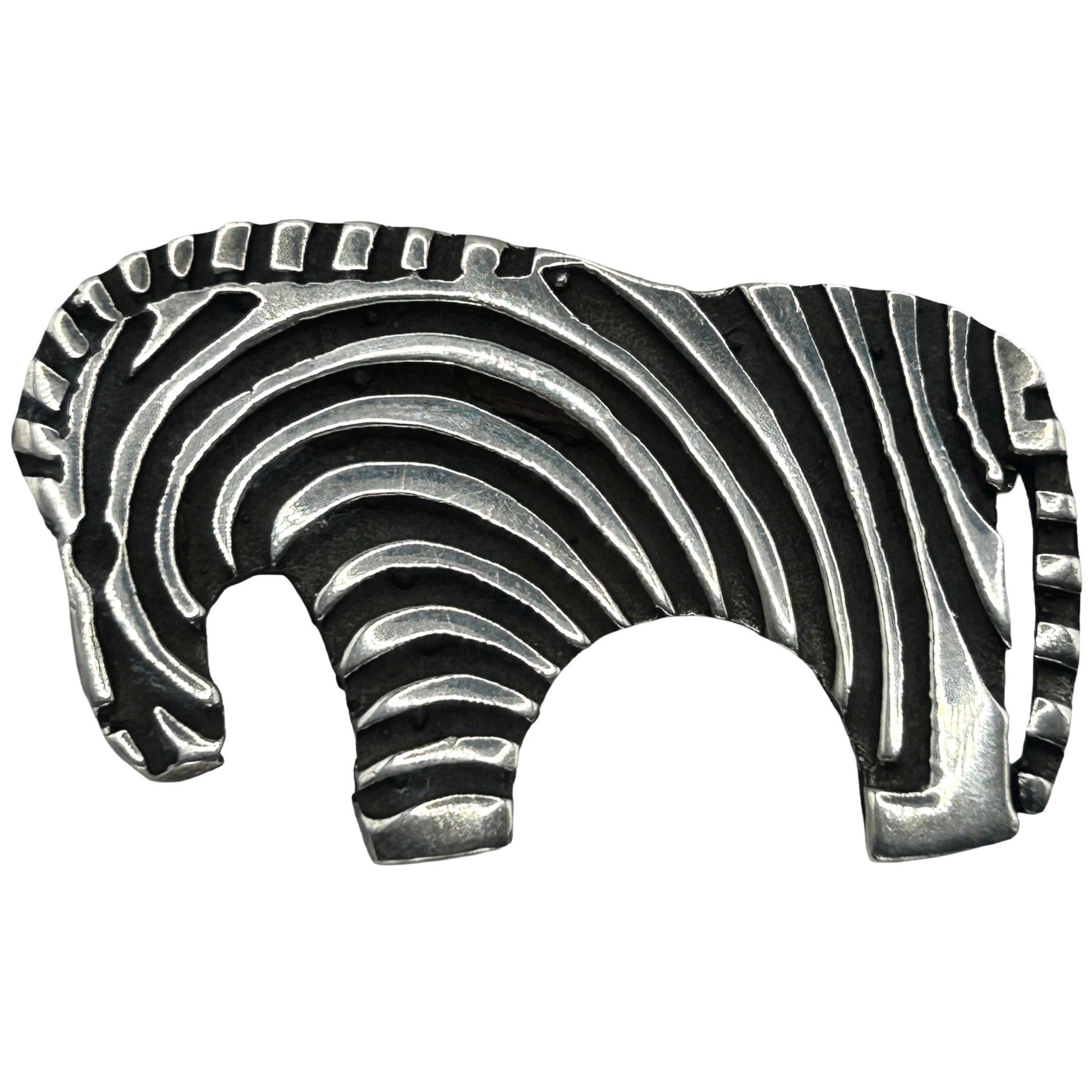 Vintage Artisan 925 Sterling Silver Zebra Brooch Pin