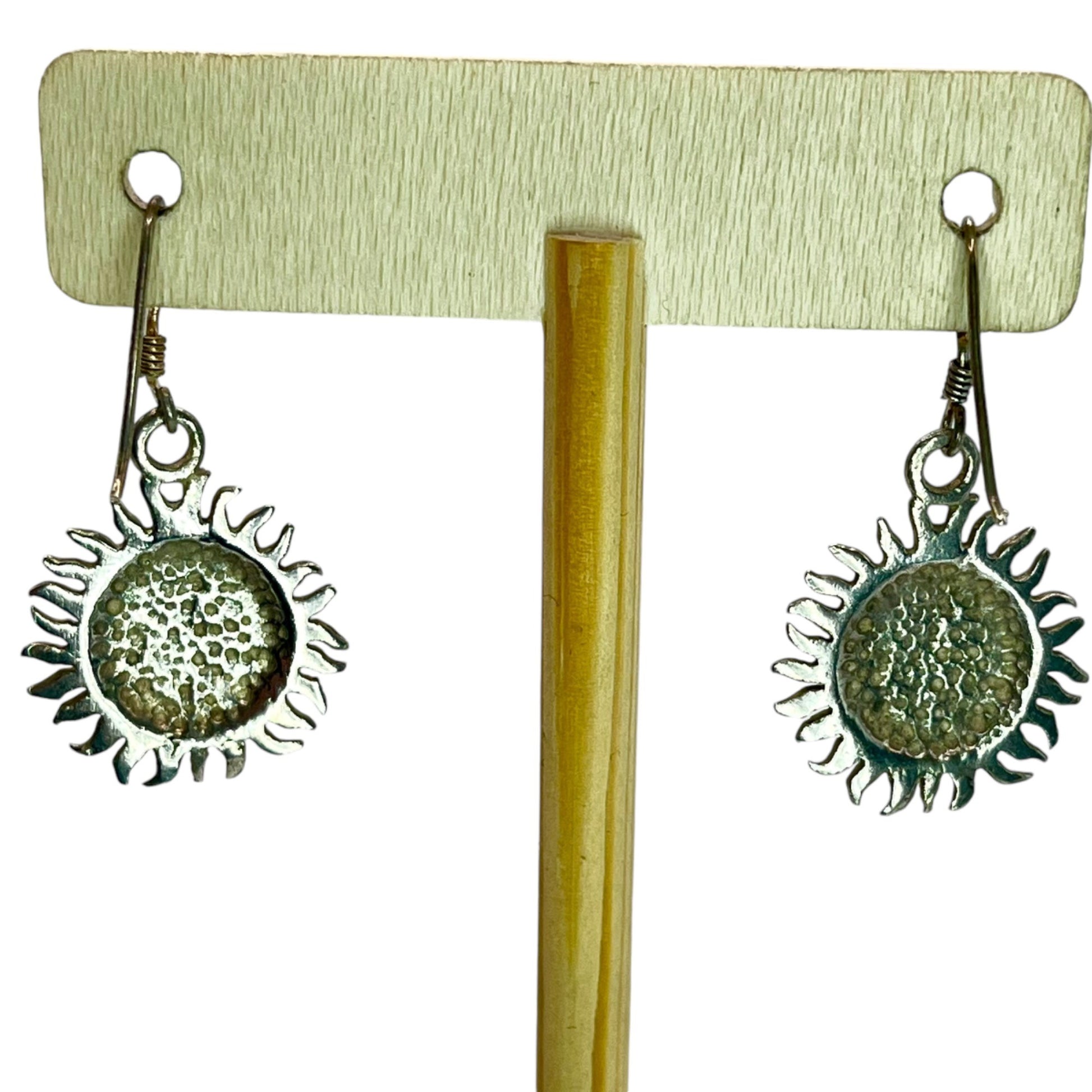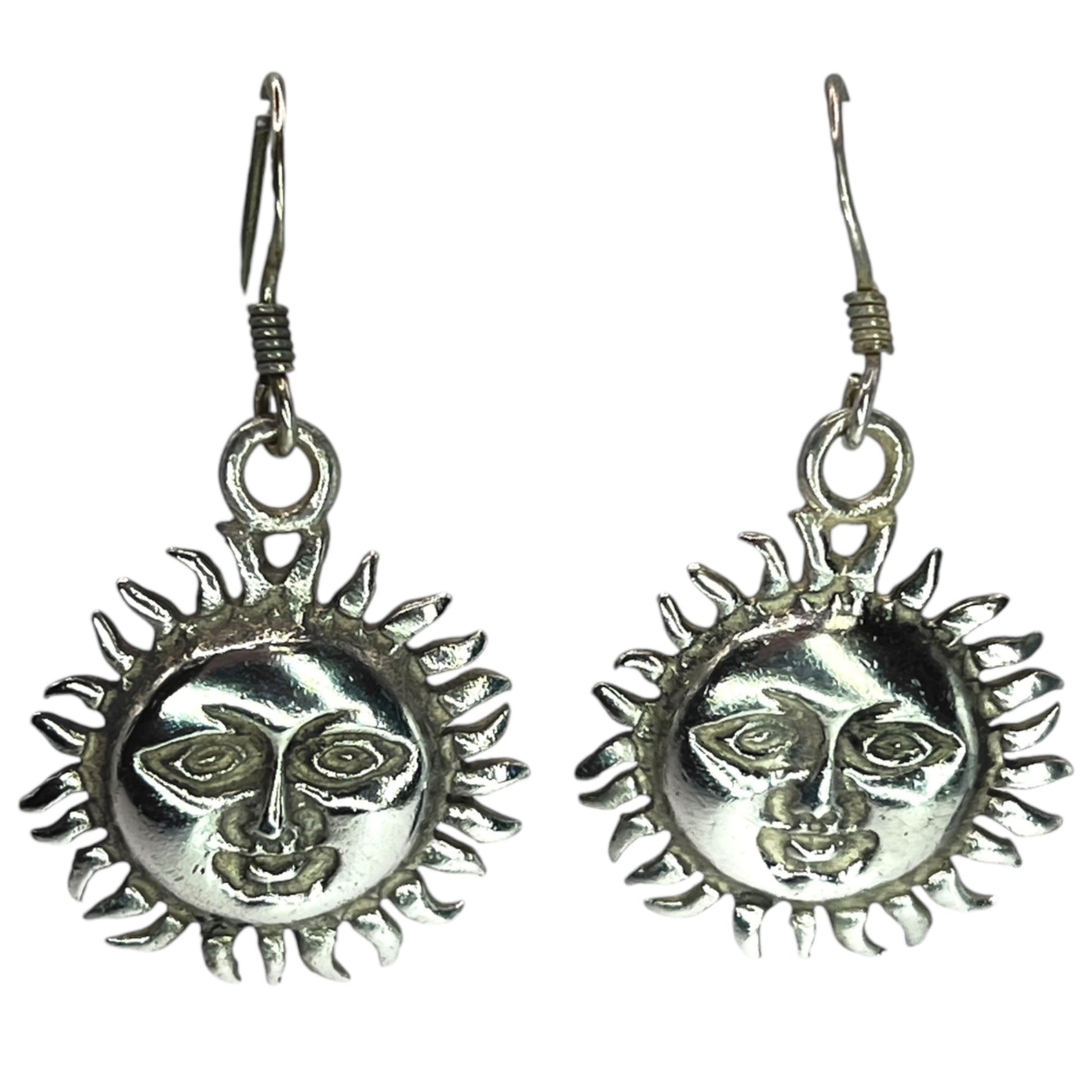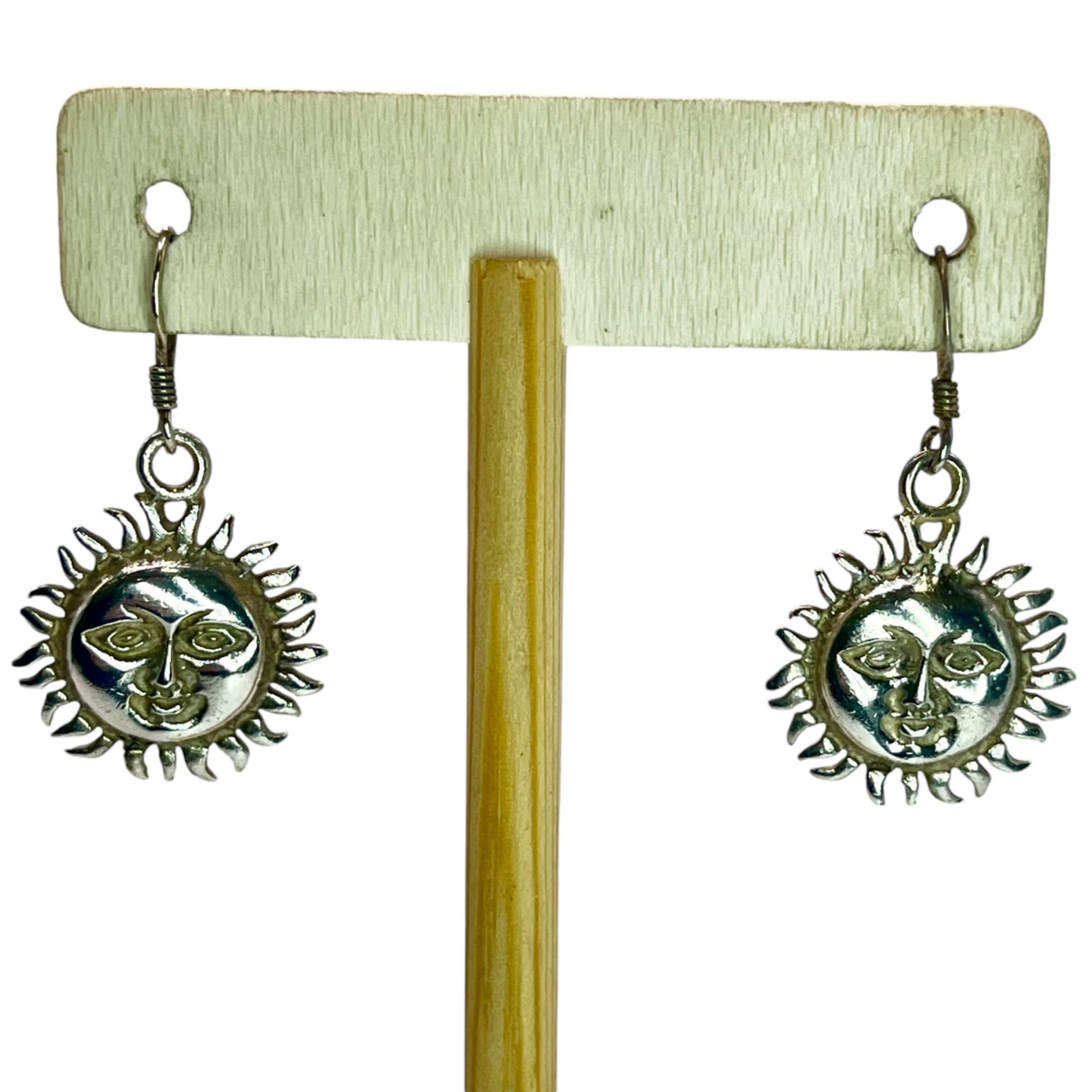 925 Sterling Silver Sun Face Dangle Drop Earrings Bohemian Boho Earthy Neutral
