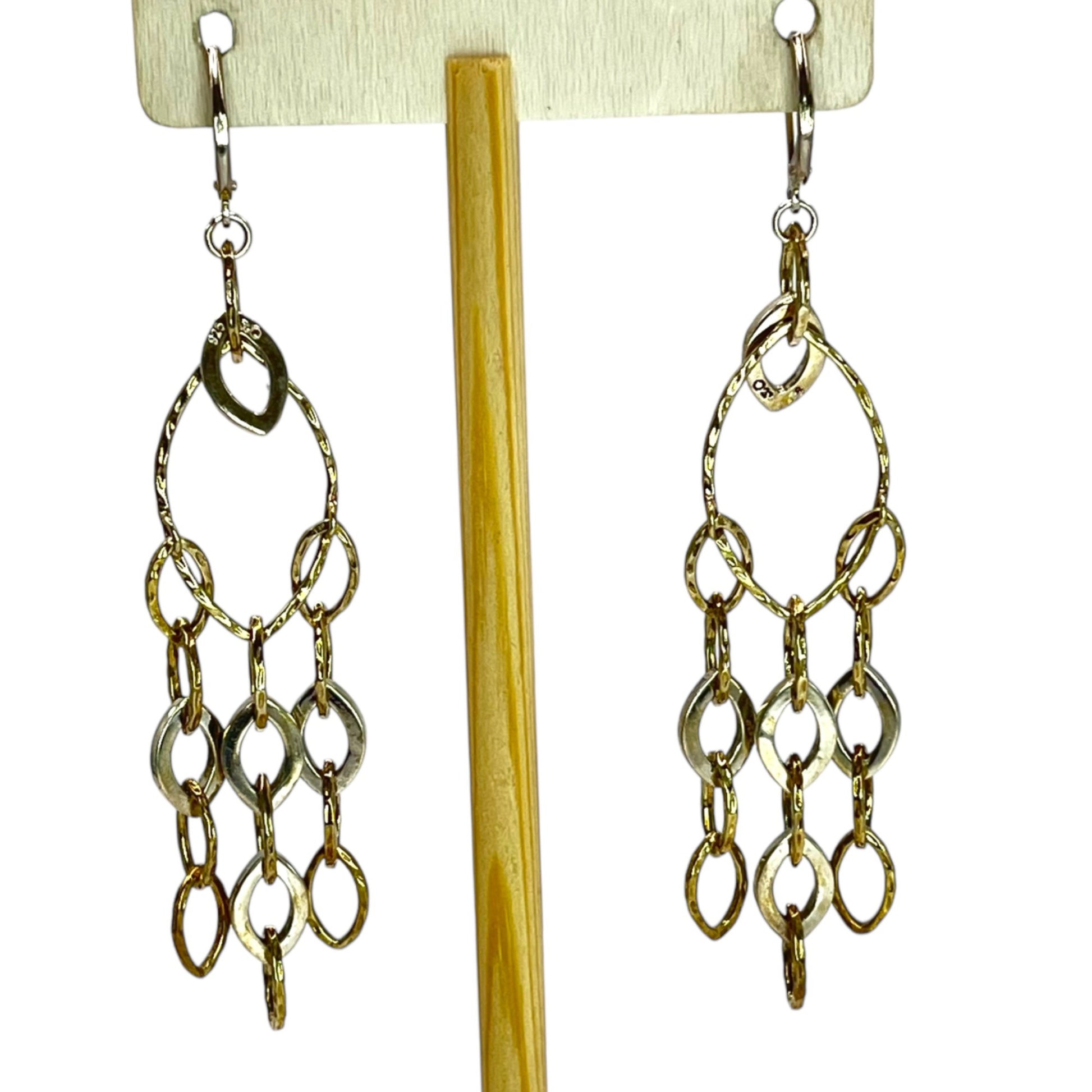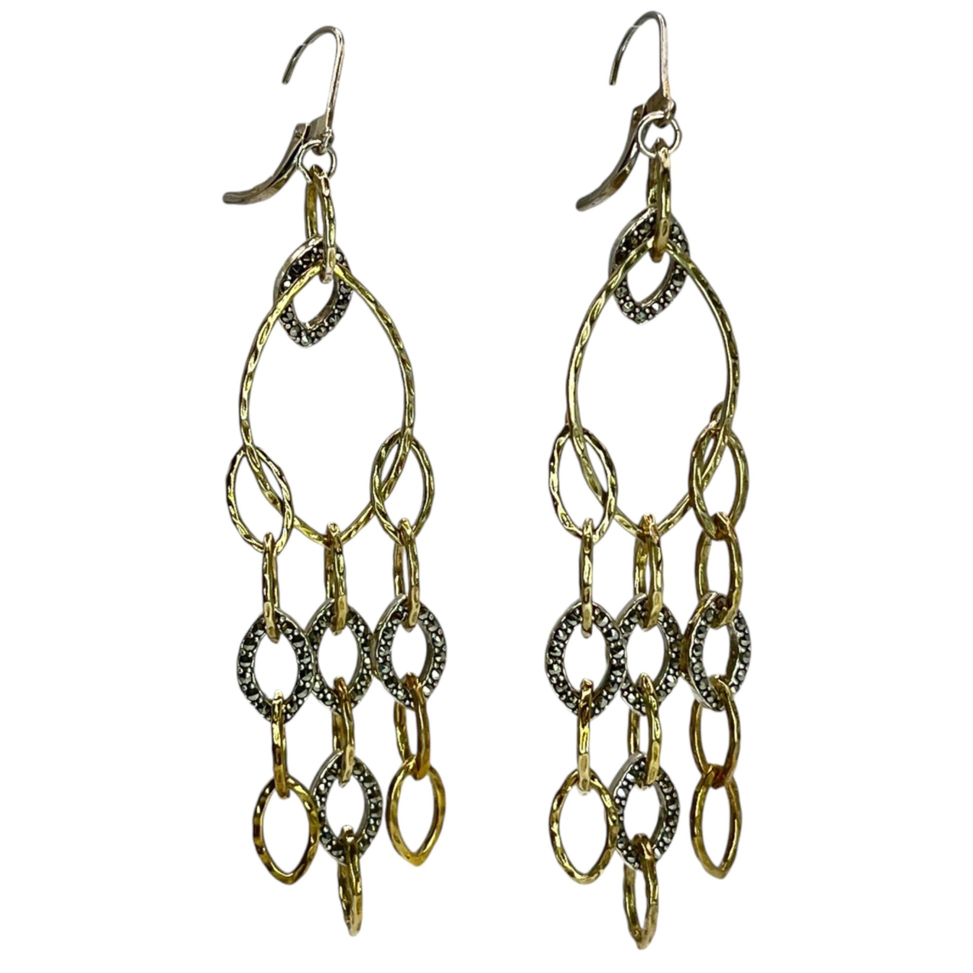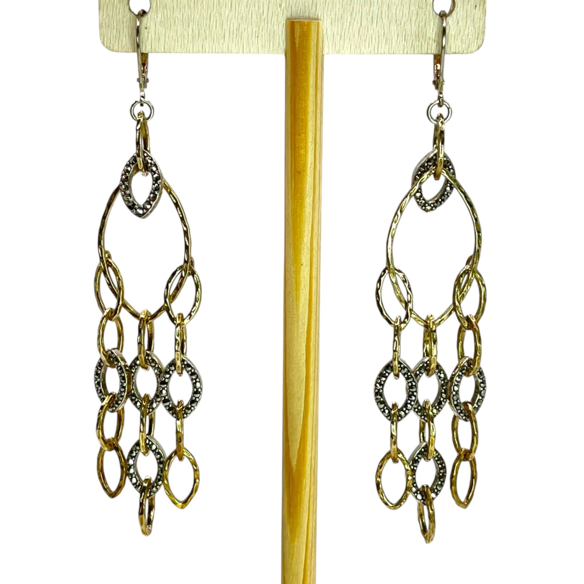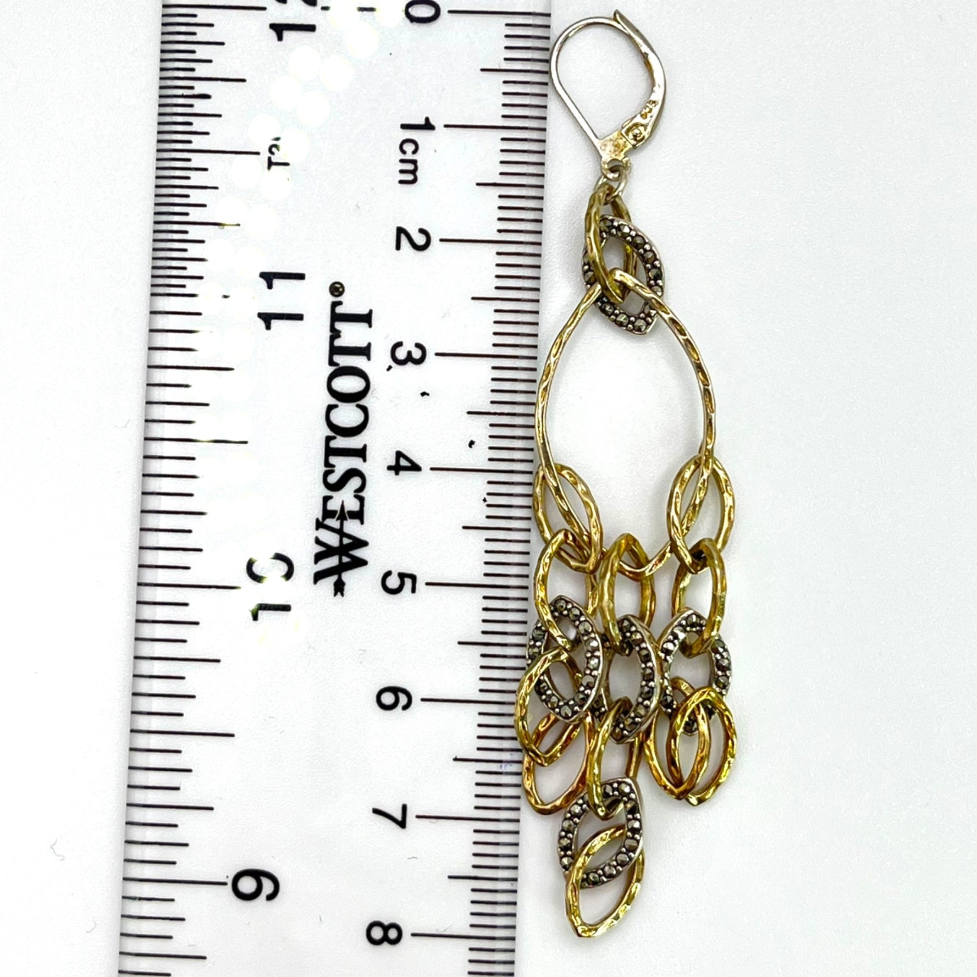925 Sterling Silver Two Tone Gold Layered Marcasite Dangle Chandelier Earrings
