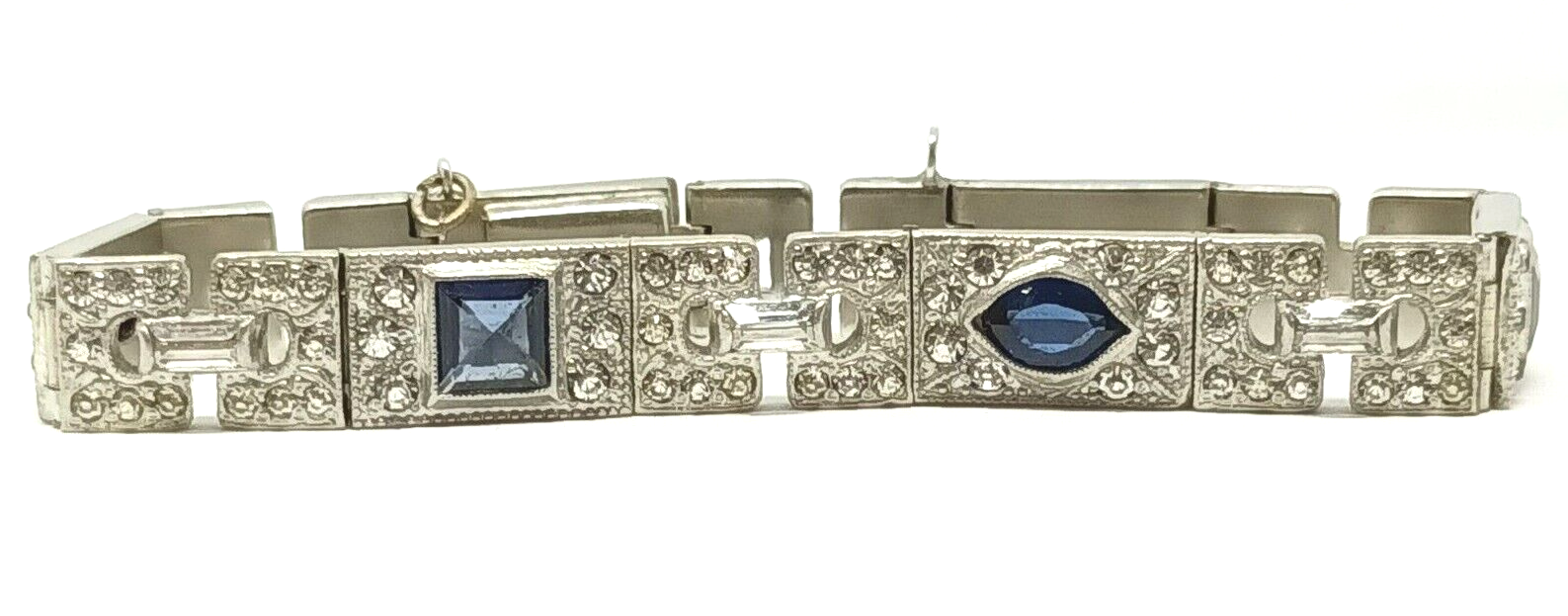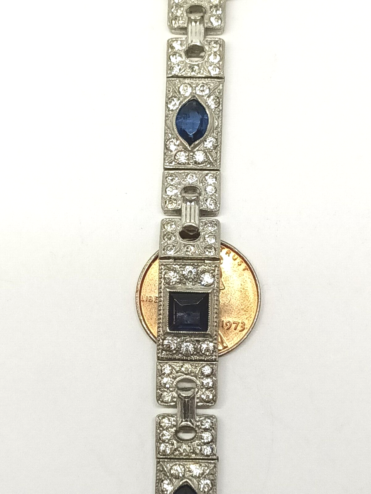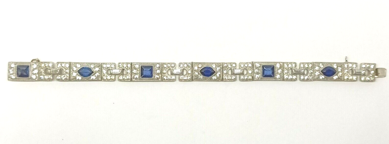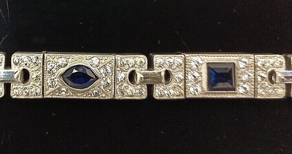 This Antique Art Deco rhinestone bracelet with dark cobalt blue & colorless sparkly crystals is a great accessory for your festive outfit.