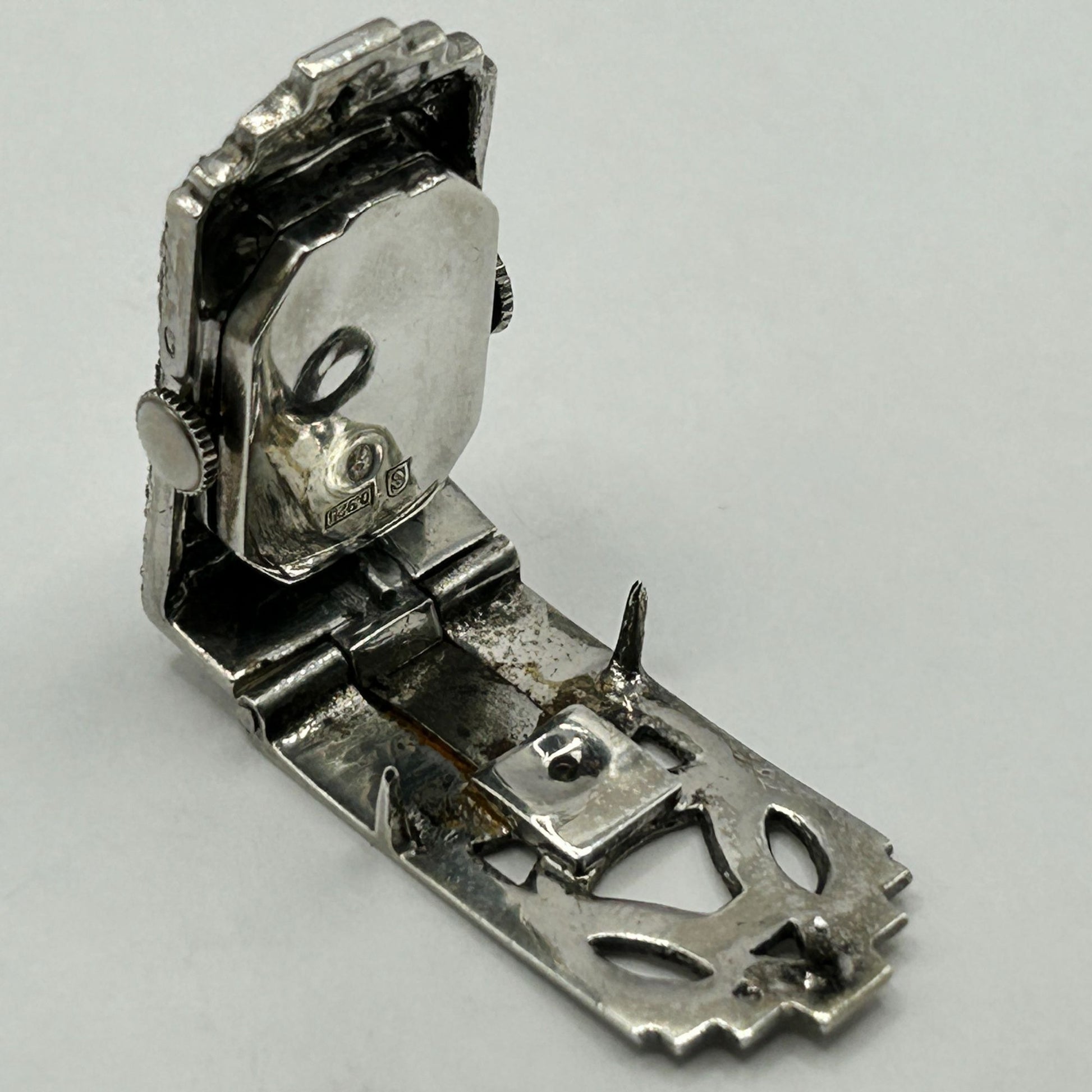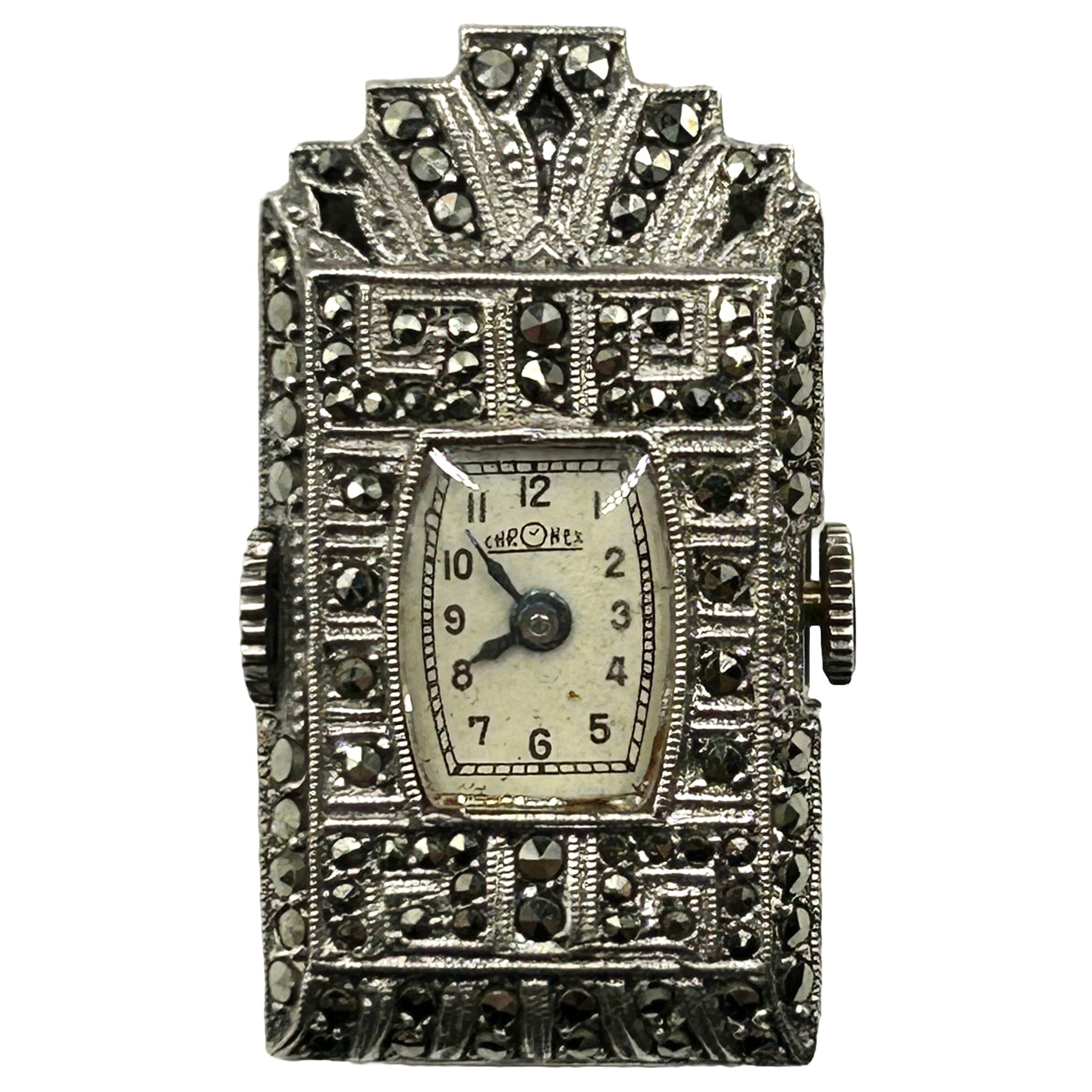 Antique Chronex Marcasite & 925 Sterling Silver Fur-Clip Watch - Windup Movement
